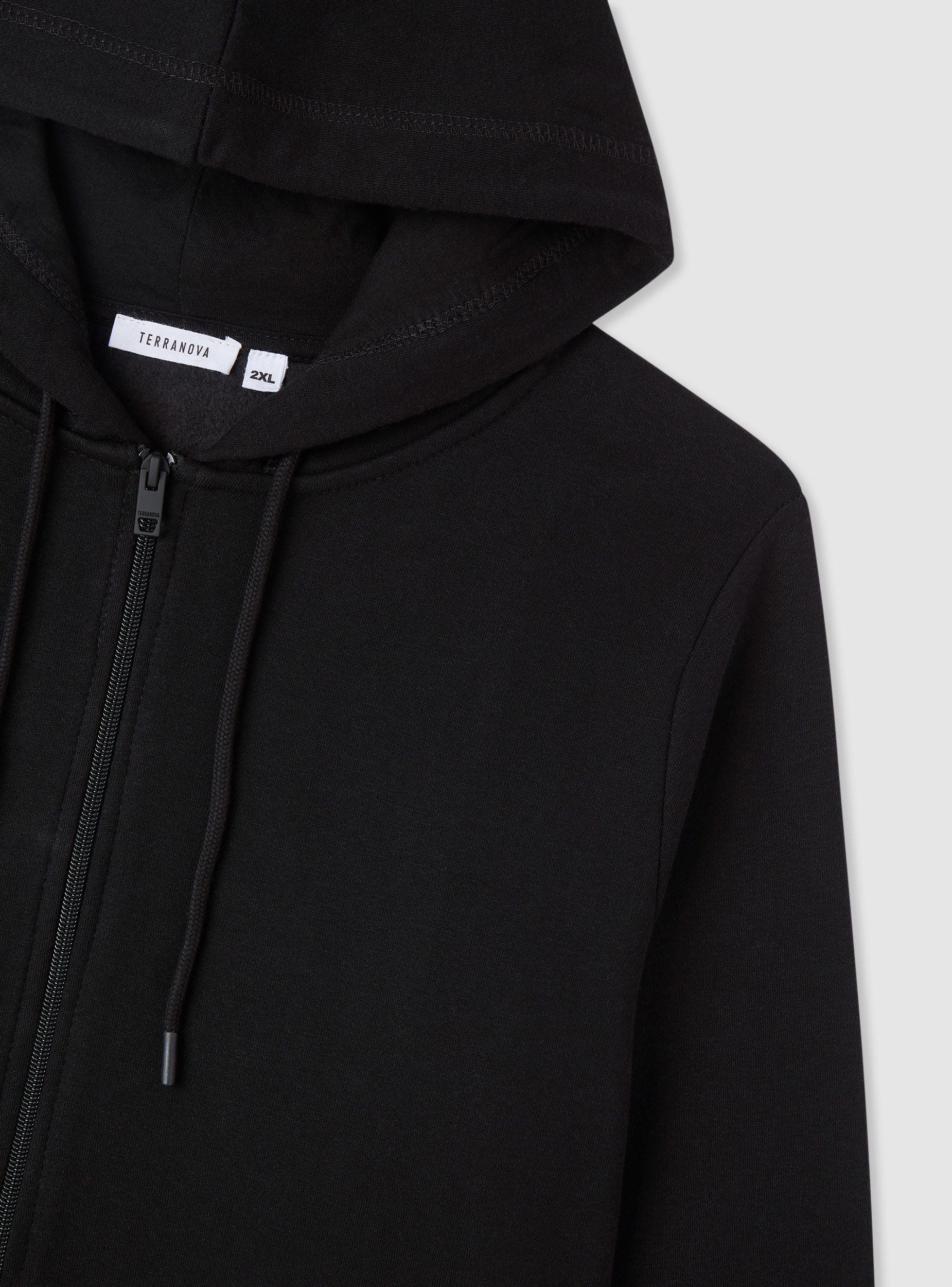 Felpa pesante da donna, capo basic indispensabile per la stagione fredda. Con zip frontale, cappuccio regolabile con coulisse e tasche applicate, unisce praticità e stile. I polsi e il fondo in costina offrono una vestibilità comoda. Perfetta da abbinare a jeans o joggers per un look casual quotidiano.