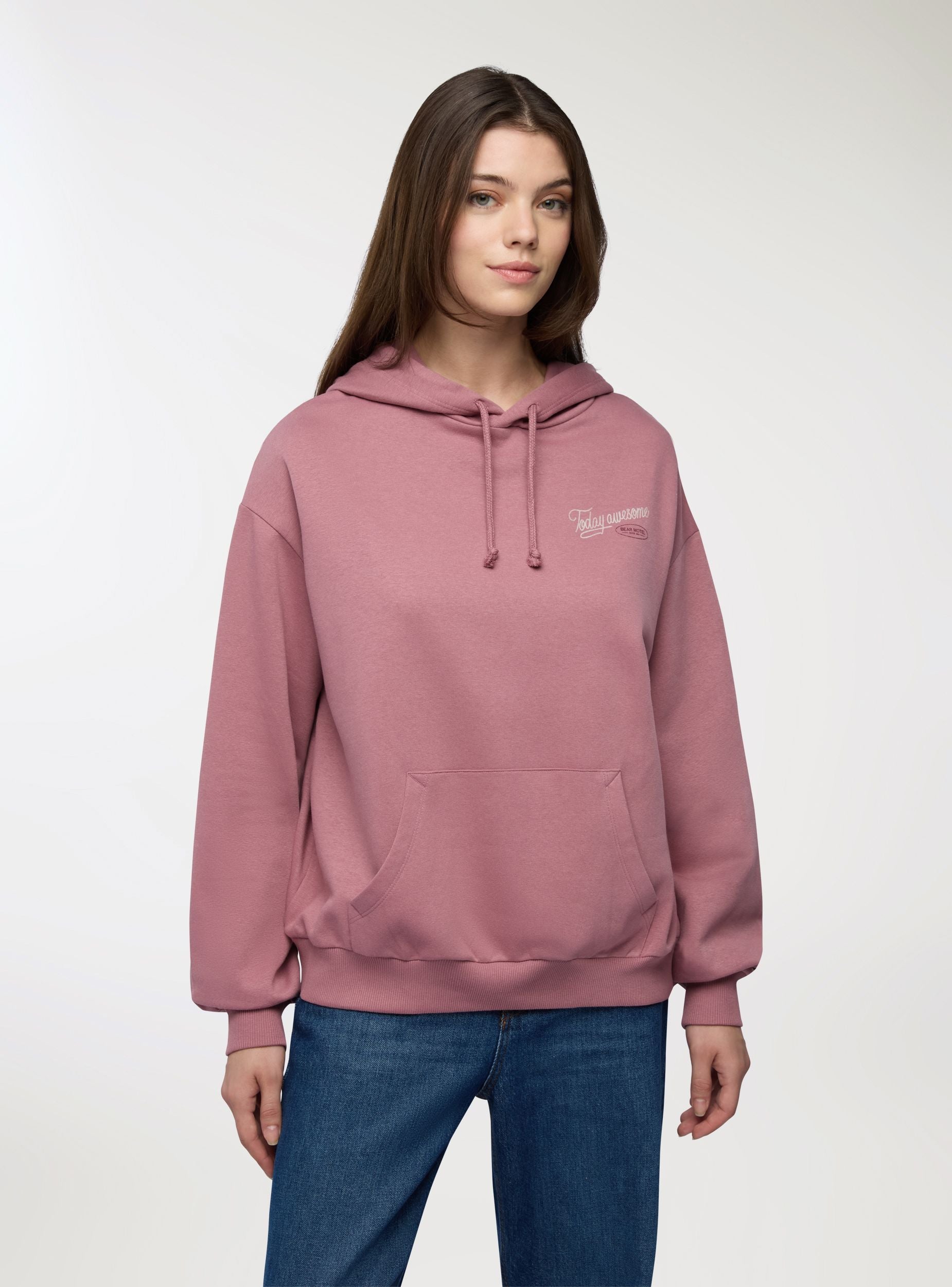 Felpa da donna con cappuccio e stampa frontale e sul retro. Modello con tasca a marsupio, polsini e fondo a coste, vestibilità regular che offre comfort nel quotidiano. Ideale per il tempo libero, da abbinare a jeans e sneakers o a pantaloni jogger per un look casual.
