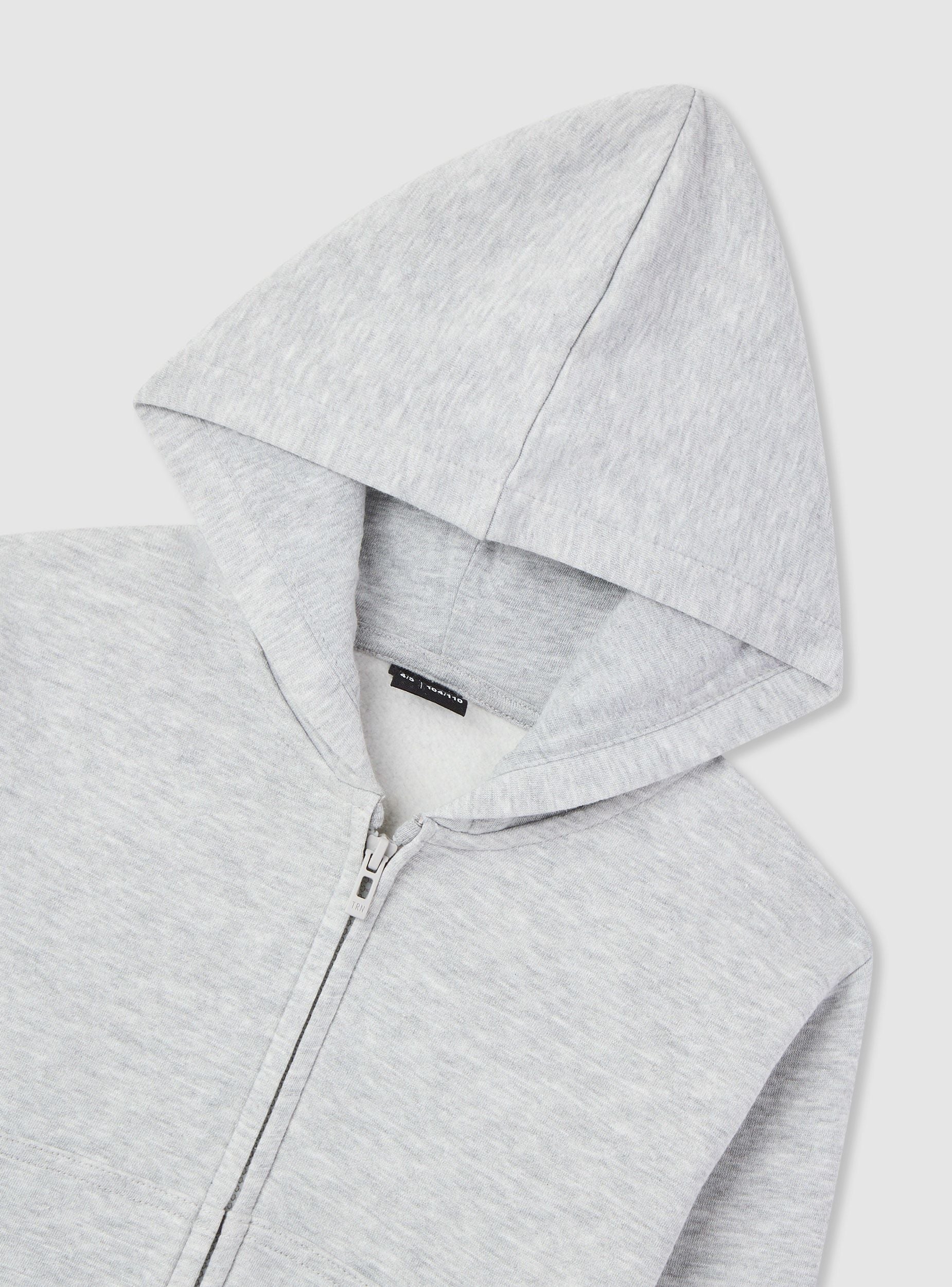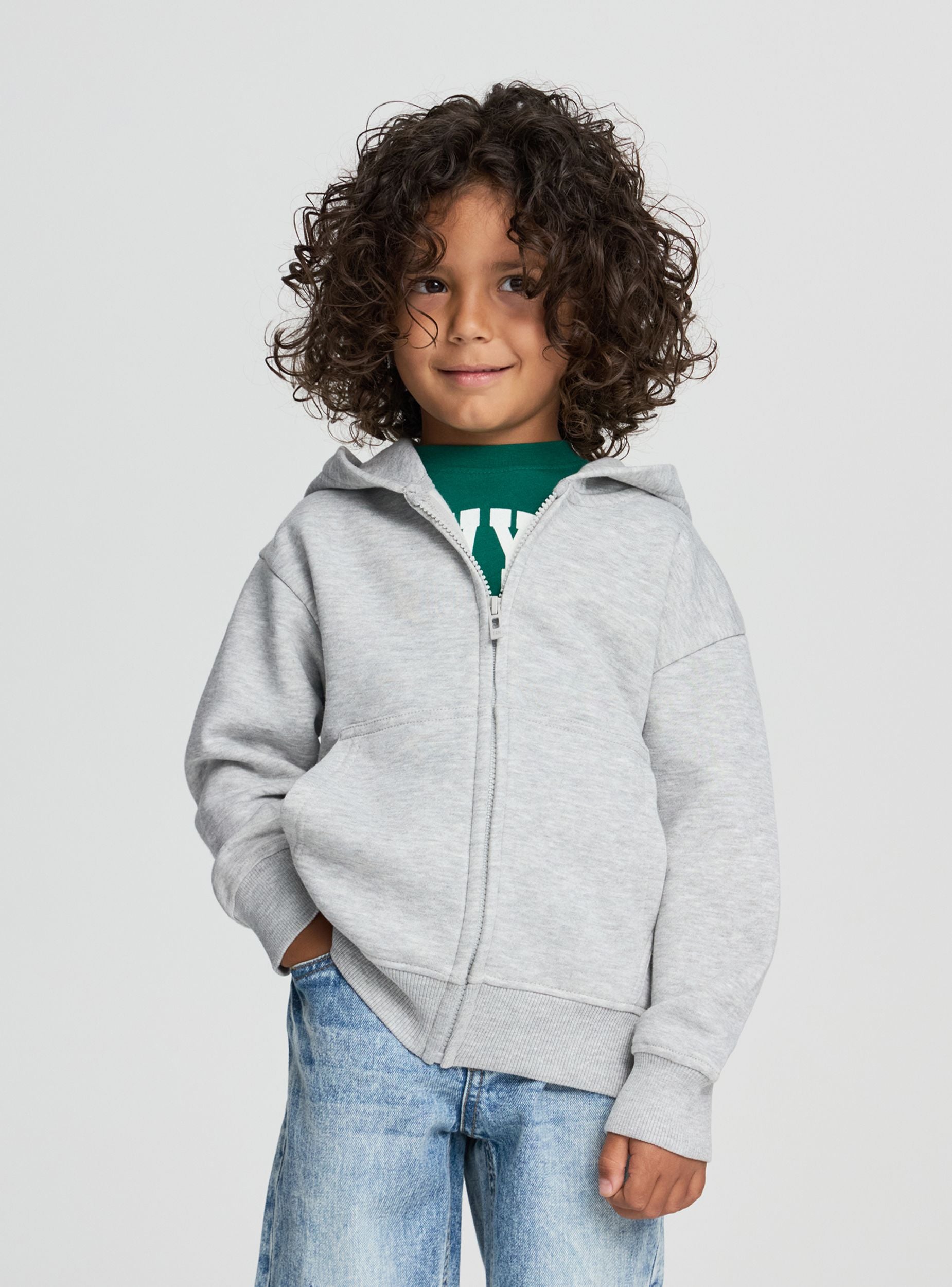 Felpa pesante da bambino con cappuccio e zip, ideale per un look casual e confortevole. Presenta una vestibilità regolare, maniche lunghe e tasche a marsupio per praticità. Perfetta per le giornate più fresche, si abbina facilmente a jeans o pantaloni sportivi per un outfit versatile e pratico. Il design tinta unita la rende adatta a diverse occasioni informali.