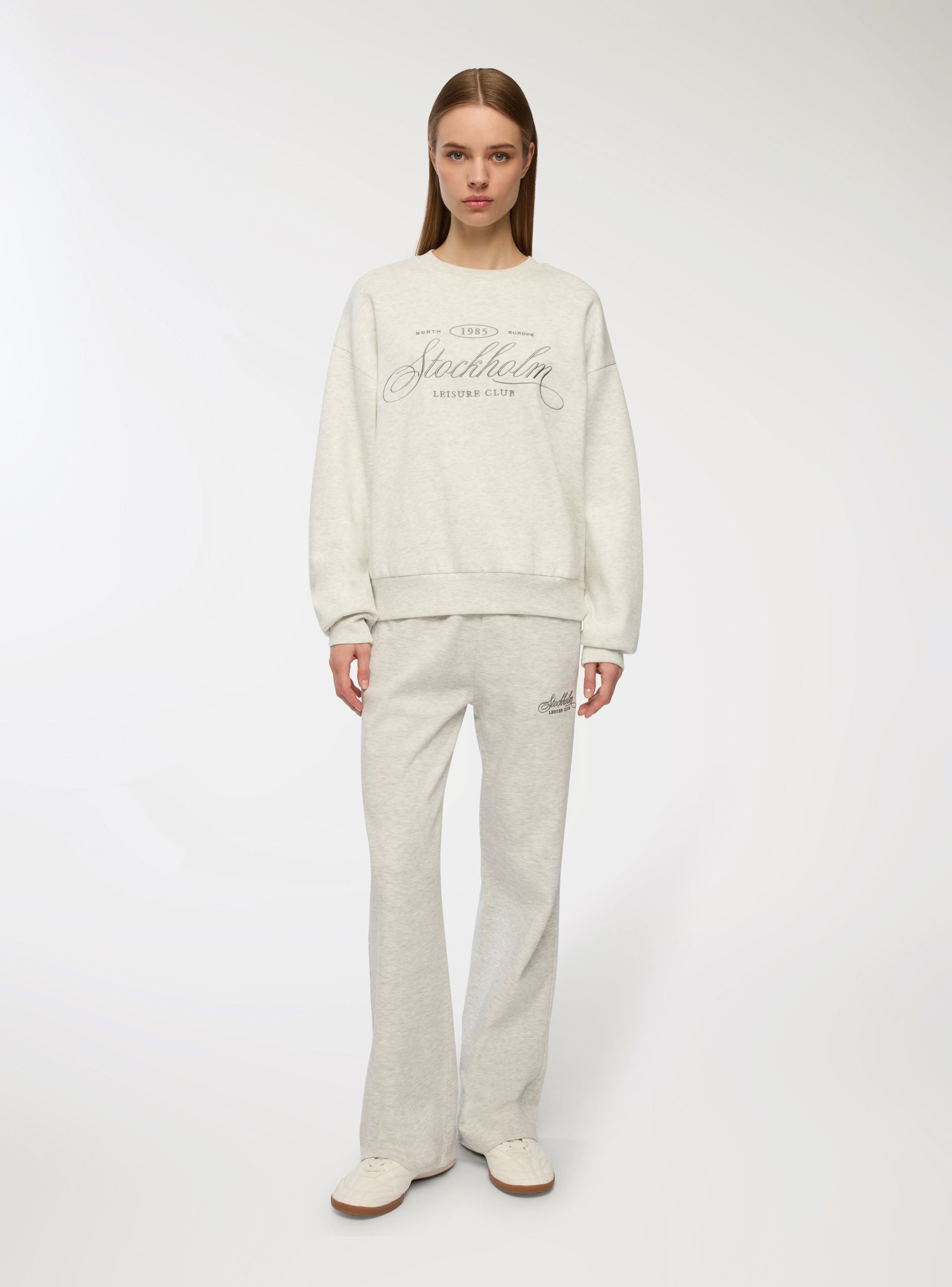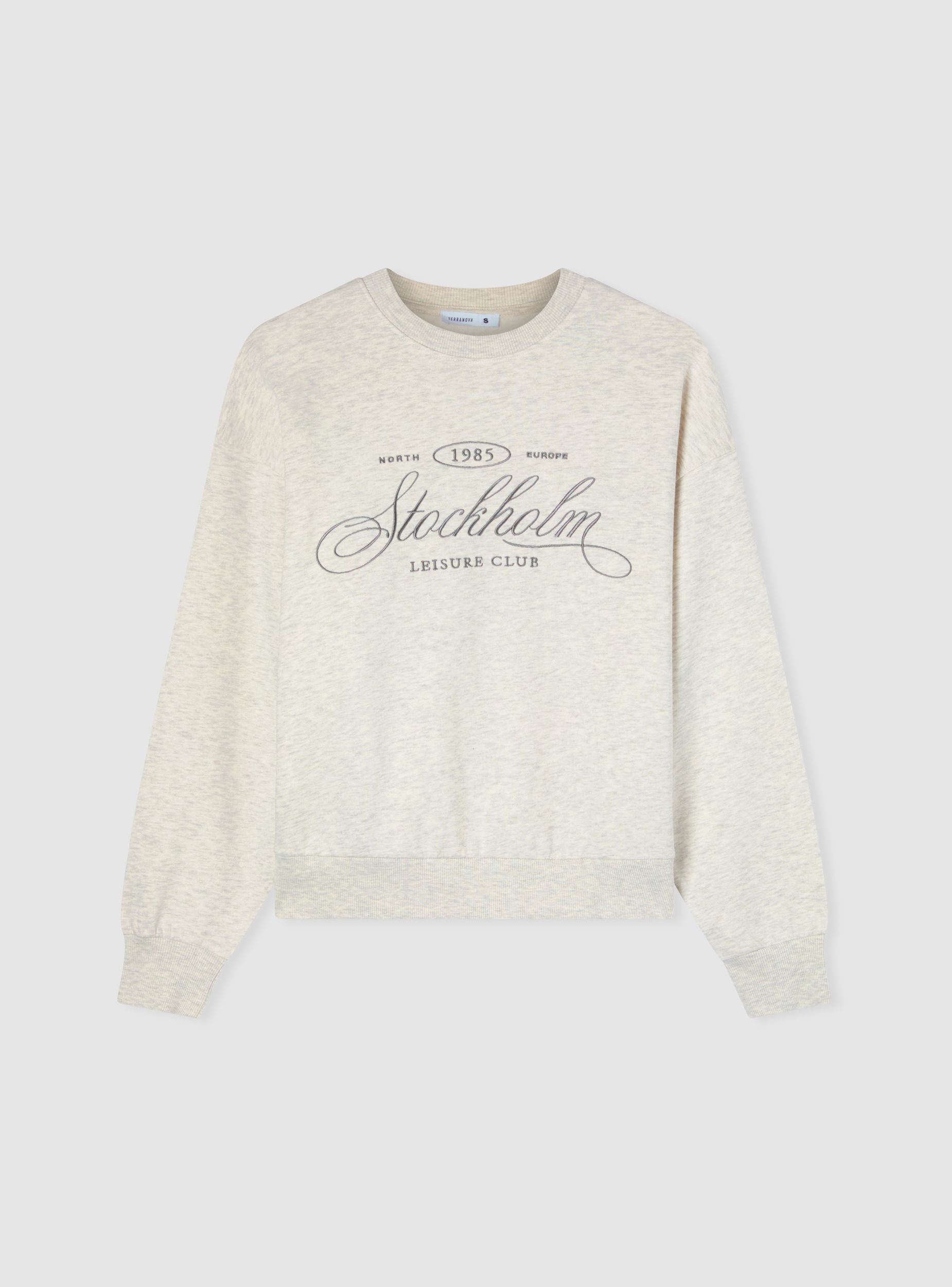 Felpa pesante da donna in stile college con scritta frontale “Stockholm” e altre scritte ricamate. Il fit ampio con spalle scese e fondo a costine garantisce comfort e libertà di movimento, ideale per uno stile casual e contemporaneo. Perfetta per l’inverno, si abbina facilmente a jeans, joggers o pantaloni cargo per creare outfit rilassati ma curati, adatti al tempo libero o alla città.