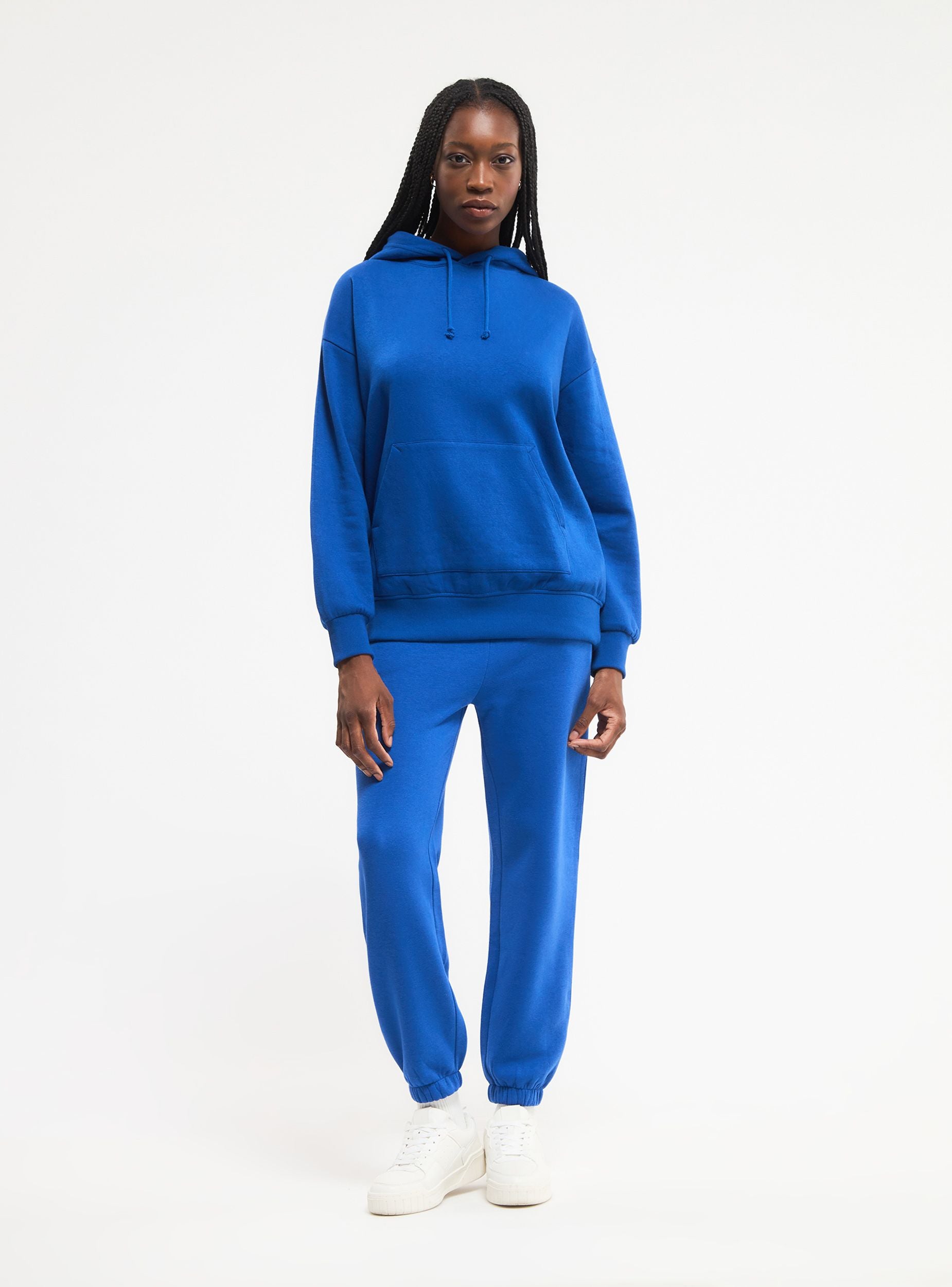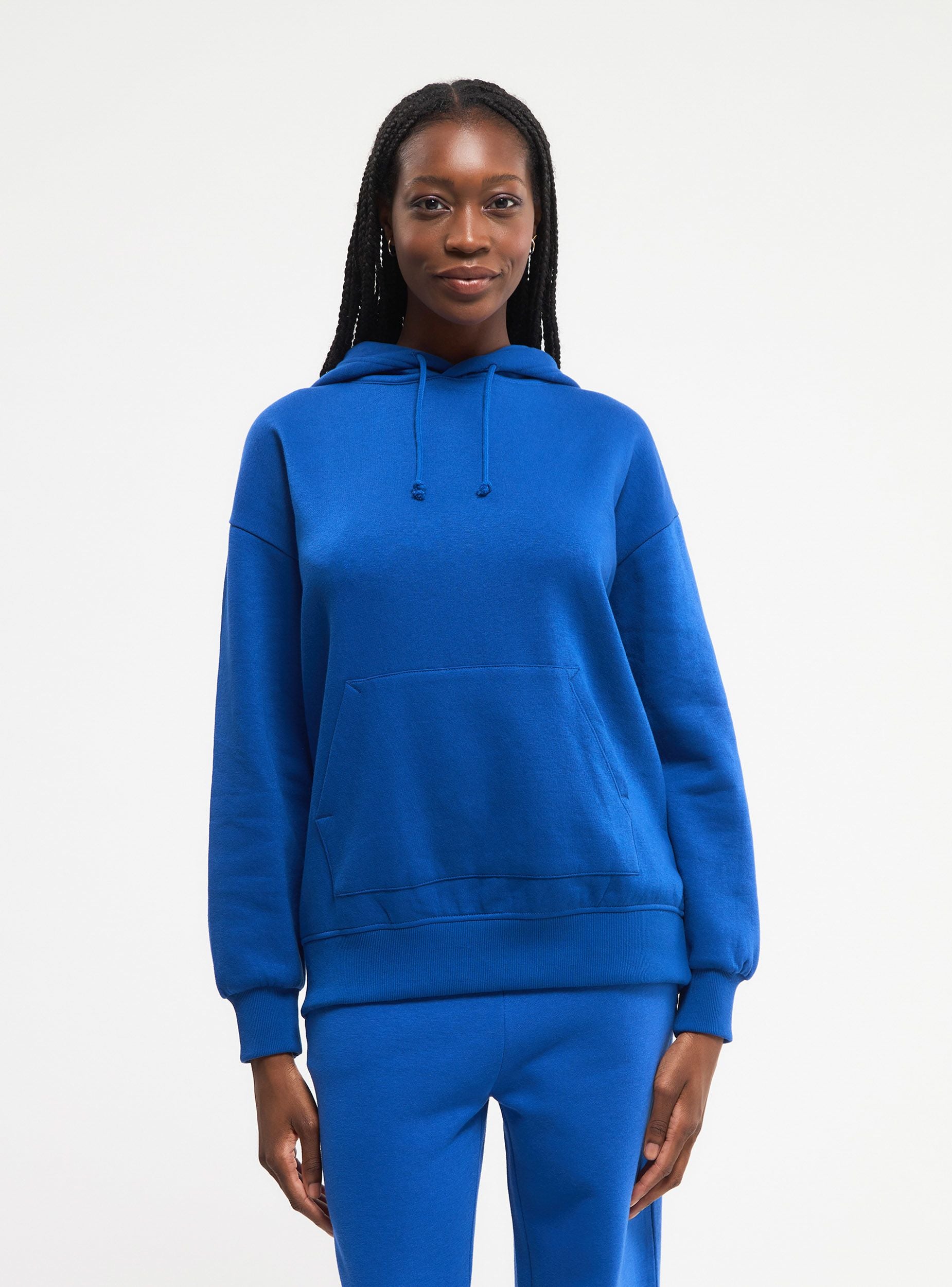 Felpa da donna con cappuccio, dotata di tasca a marsupio e coulisse regolabile. Realizzata in tessuto pesante a tinta unita. Vestibilità comoda, ideale per un look casual e confortevole. Le maniche lunghe e l'orlo a costine aggiungono un tocco di stile. Perfetta da abbinare a diversi capi per un outfit rilassato.