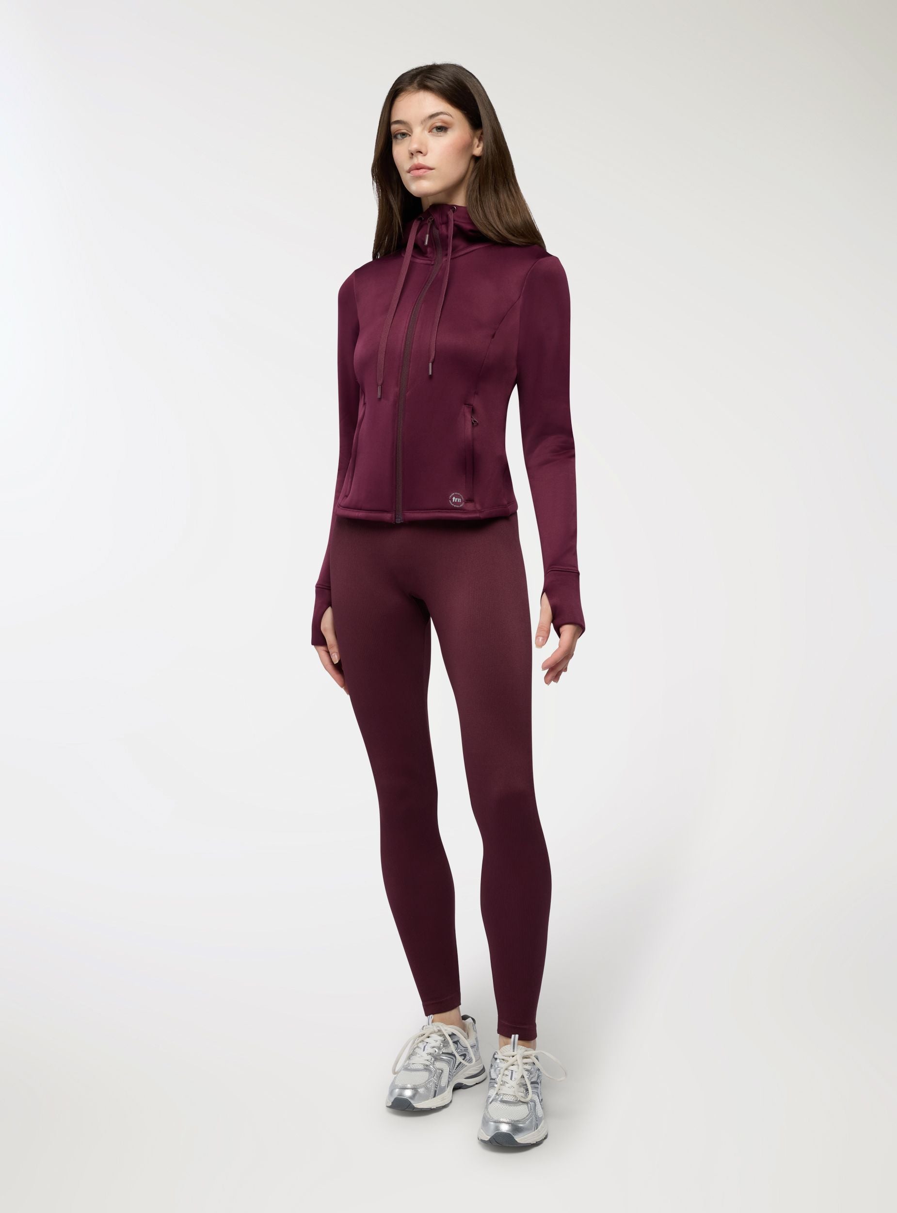 Felpa thermal da donna con zip frontale, cappuccio con collo alto regolabile da coulisse e tasche laterali, pensata per offrire il massimo comfort durante l’inverno. Garantisce un effetto caldo e avvolgente, ideale per le giornate fredde. I polsini sono dotati di buco per il pollice perfetti per offrire maggiore protezione dal freddo. Linea Active.