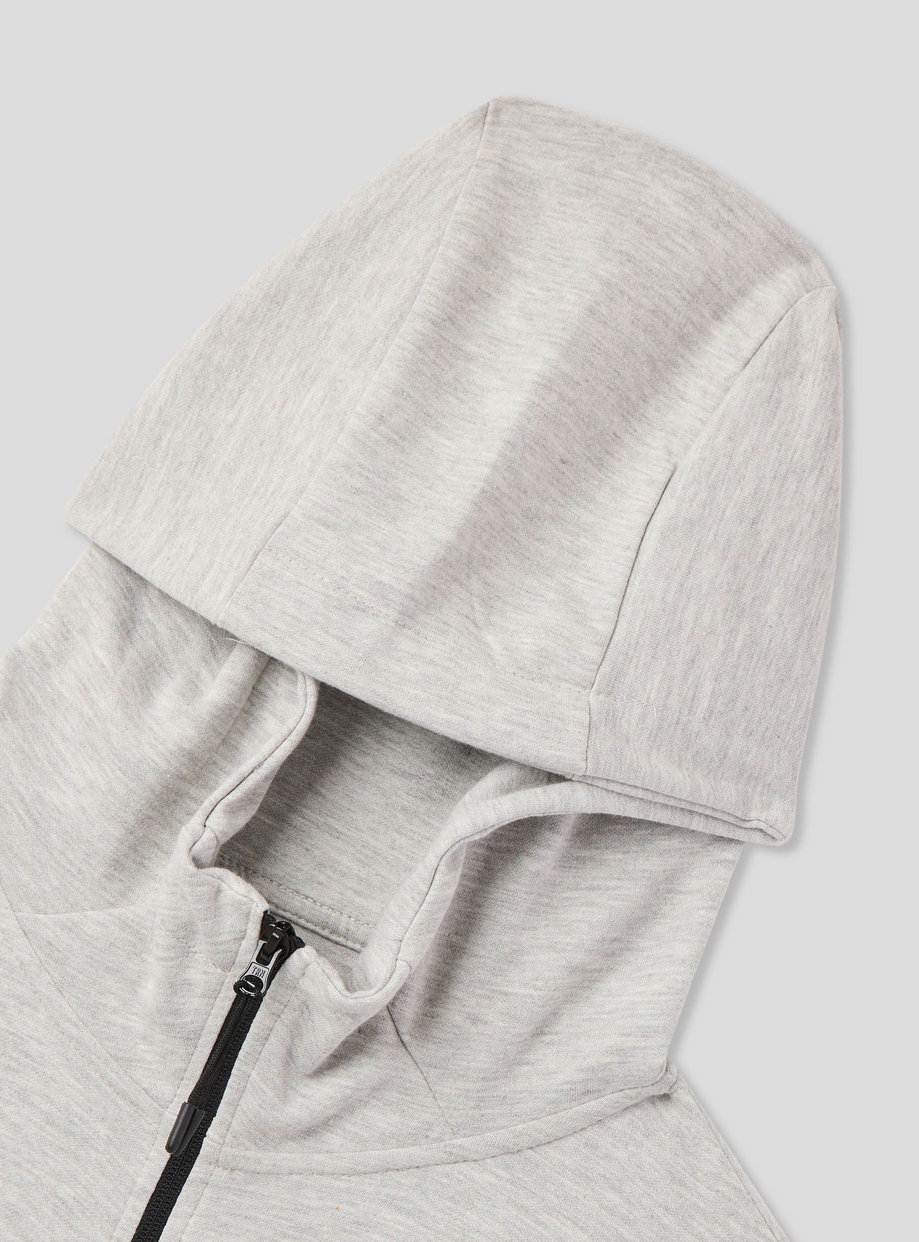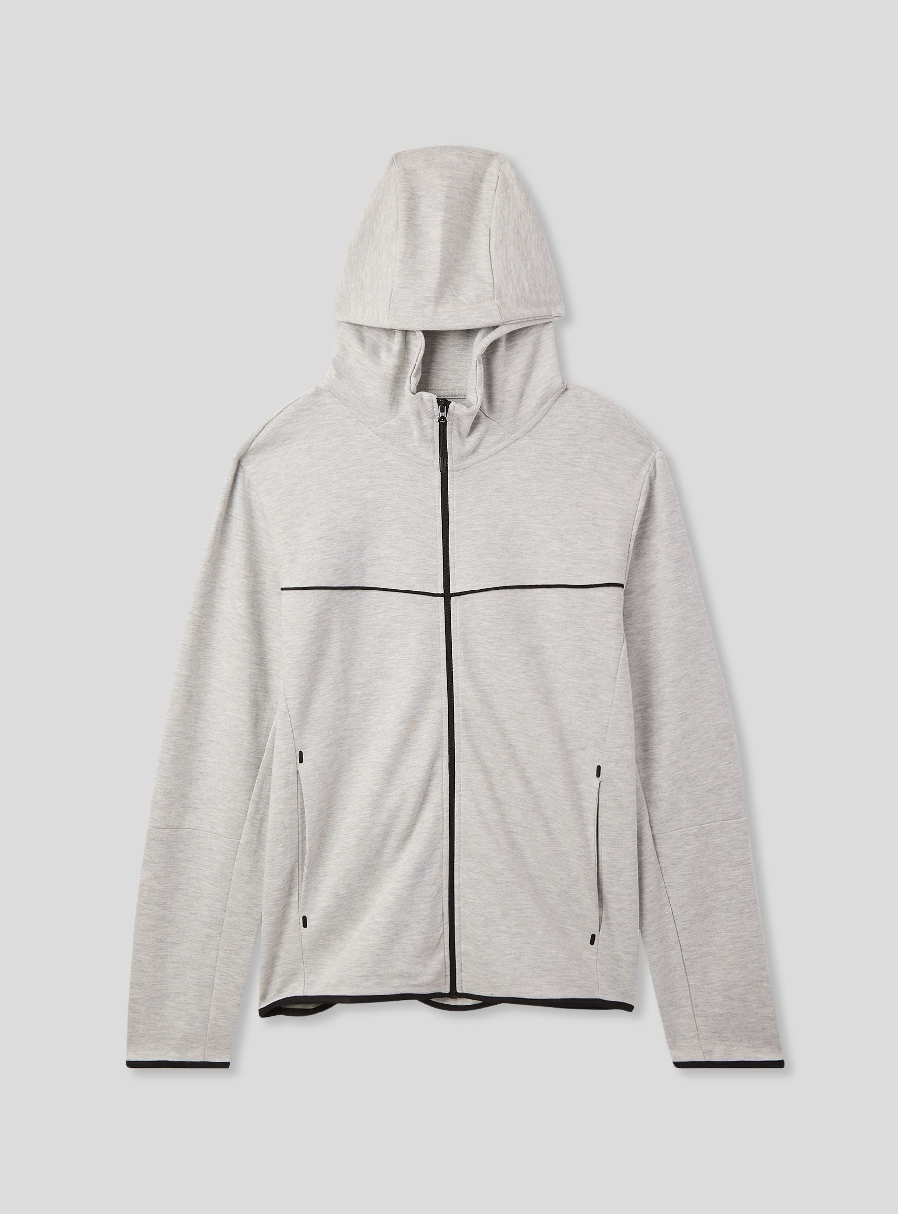 Felpa tecnica con cappuccio e zip in misto cotone pesante