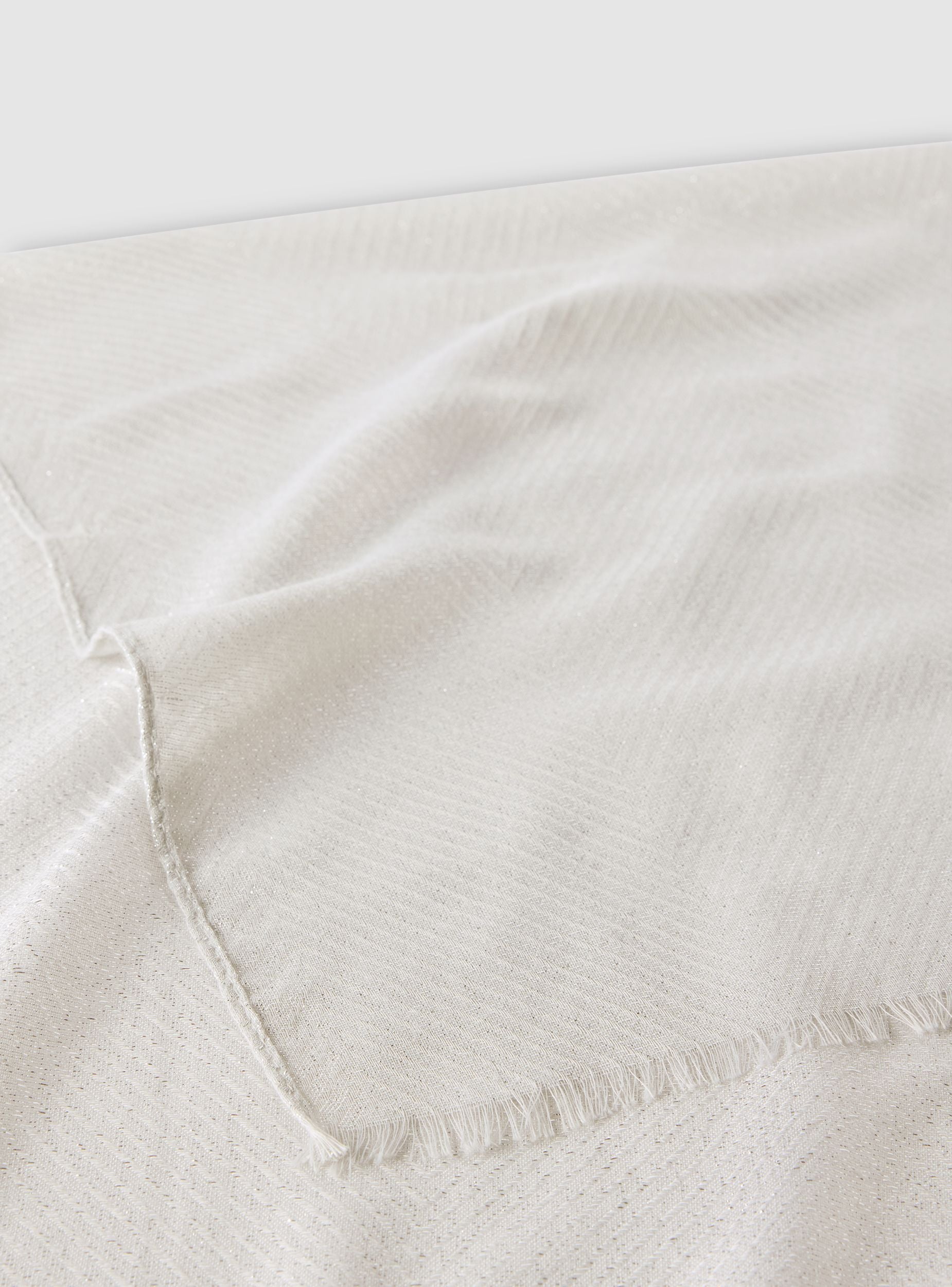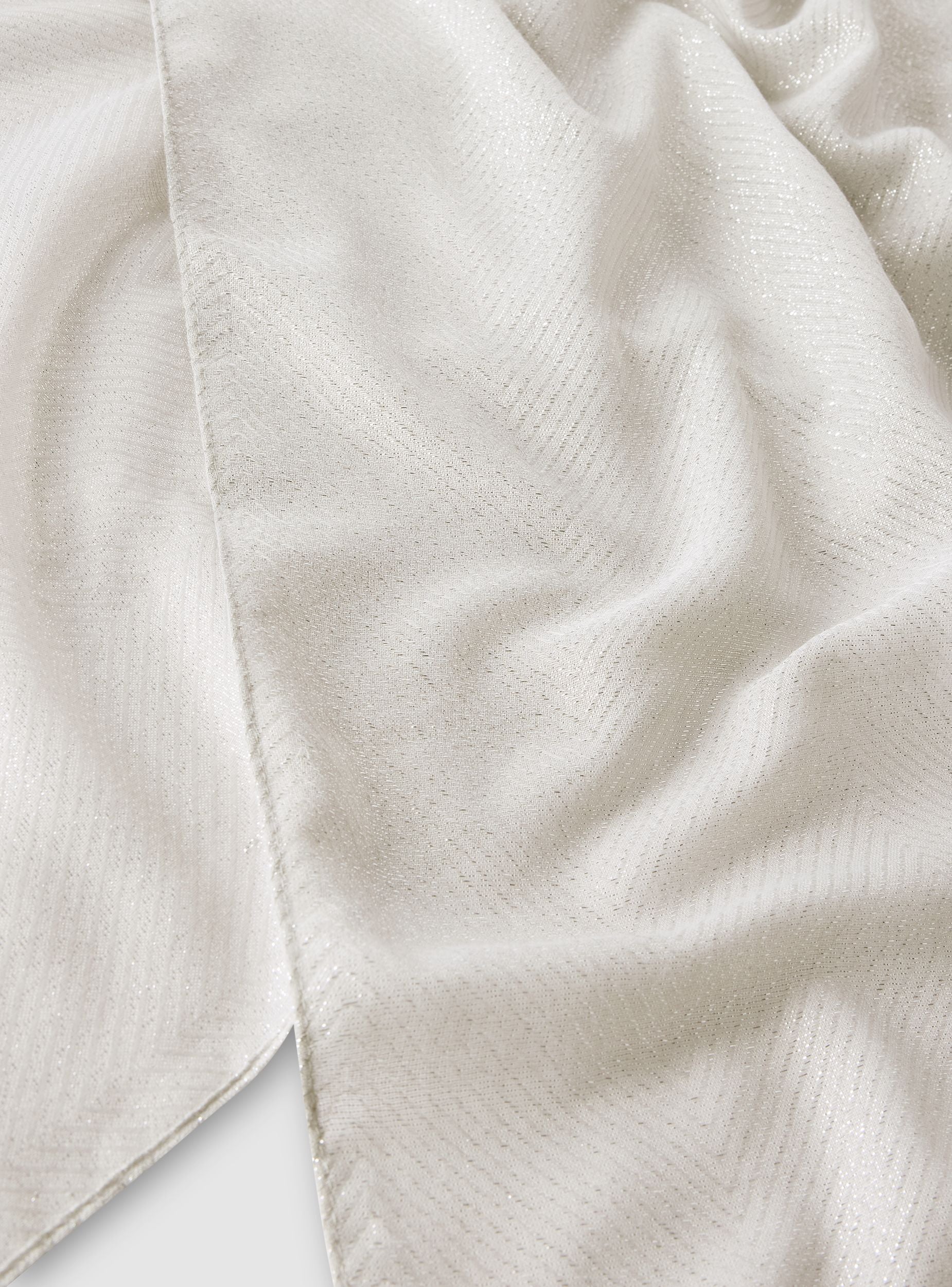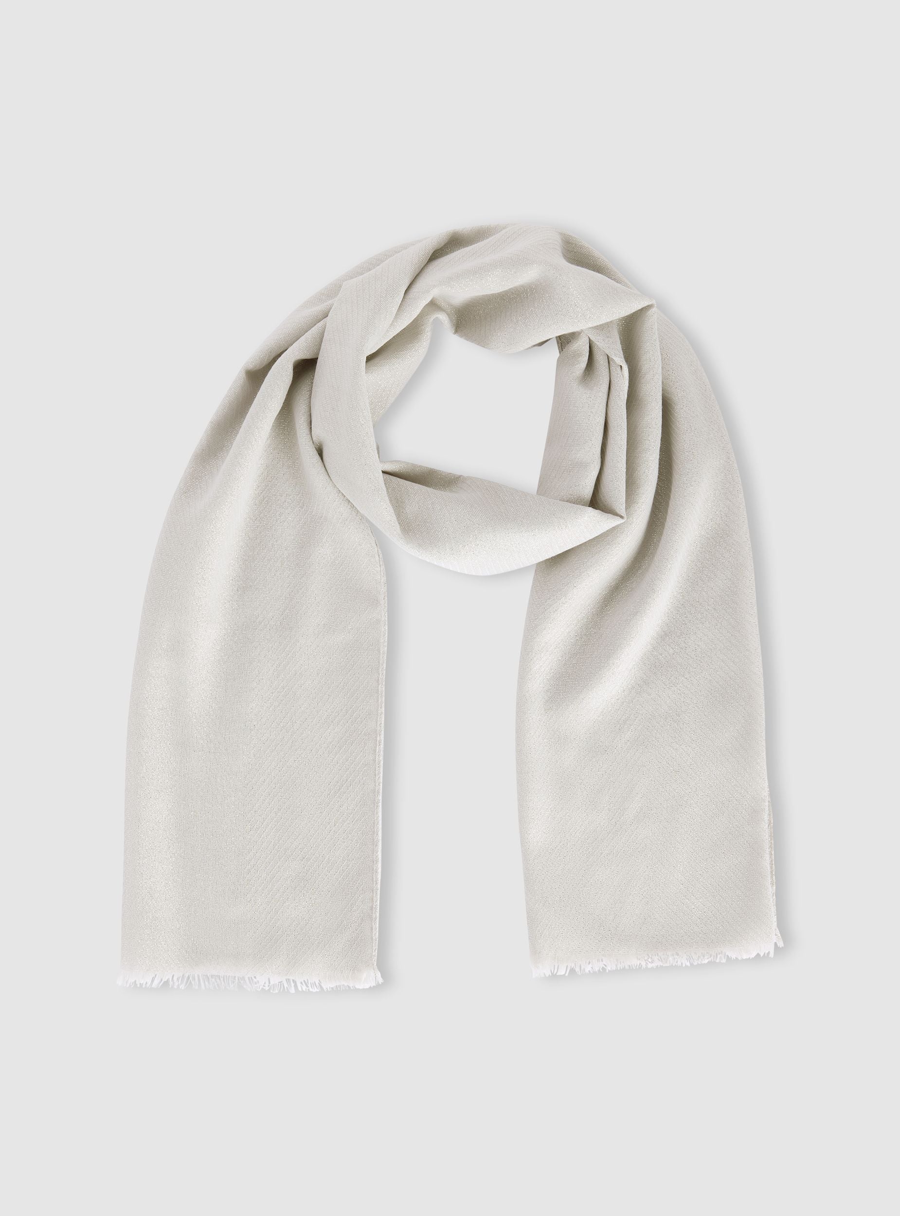 Foulard da donna ideale per aggiungere un tocco elegante e luminoso a qualsiasi outfit. Il design semplice e raffinato, arricchito da una lavorazione effetto luccicante e piccole frange sui bordi, lo rende perfetto sia per occasioni formali che per valorizzare look quotidiani. Versatile si abbina facilmente a cappotti, giacche o abiti, donando un accento sofisticato e femminile.