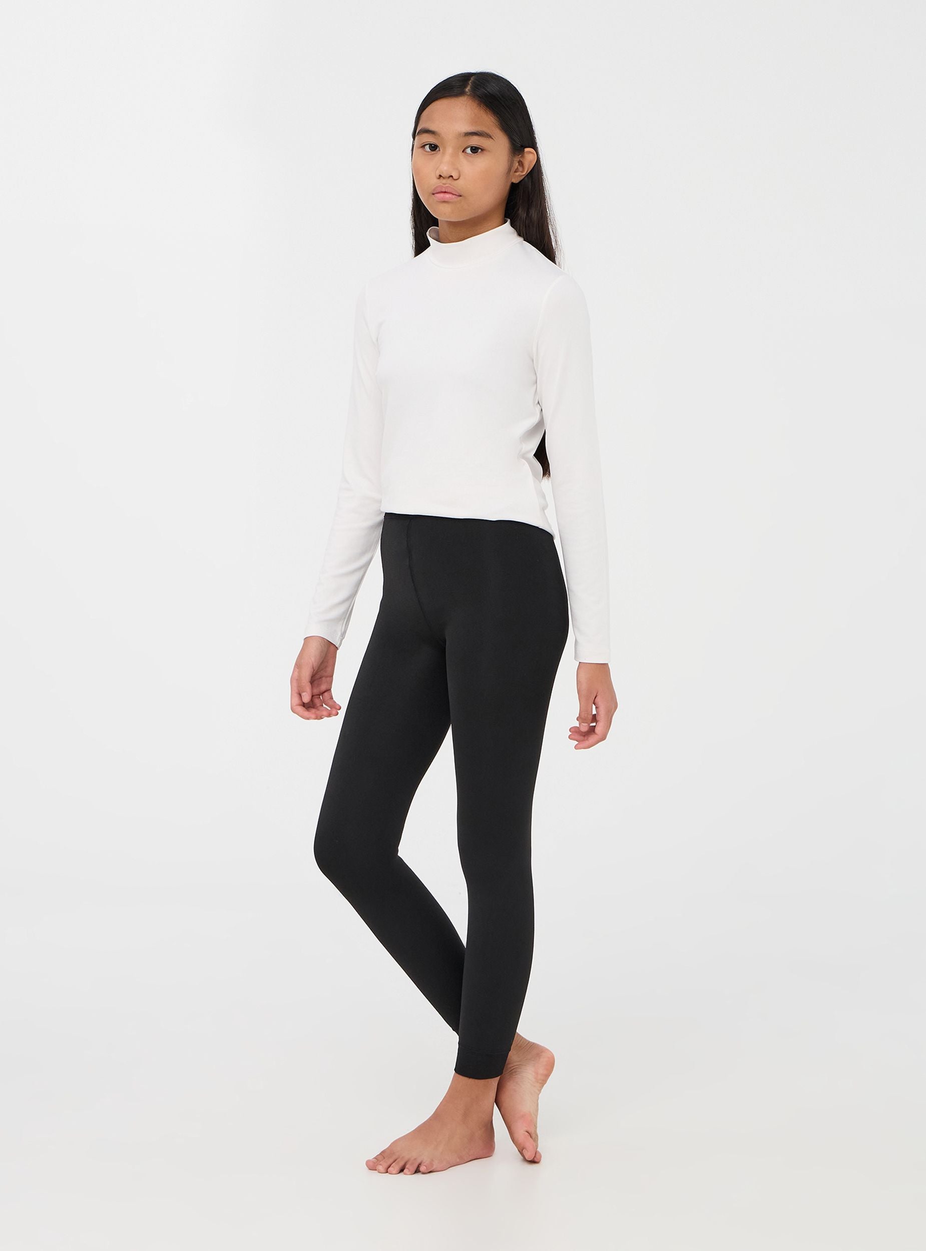 Leggings da bambina lunghi e aderenti, progettati per la stagione invernale. Il design è semplice e lineare. L'interno dei leggings è rivestito con una morbida pelliccia sintetica, che offre calore e comfort durante i mesi più freddi. Questi leggings sono ideali per mantenere le bambine calde e a loro agio, pur consentendo libertà di movimento.
