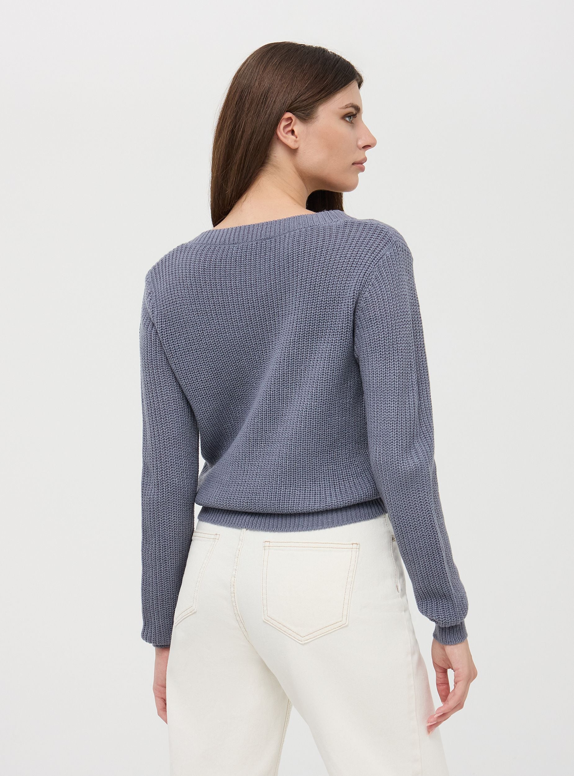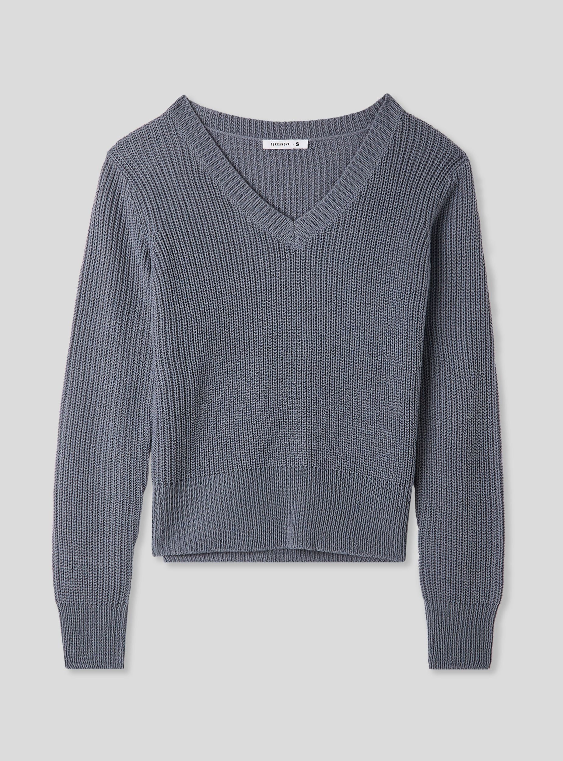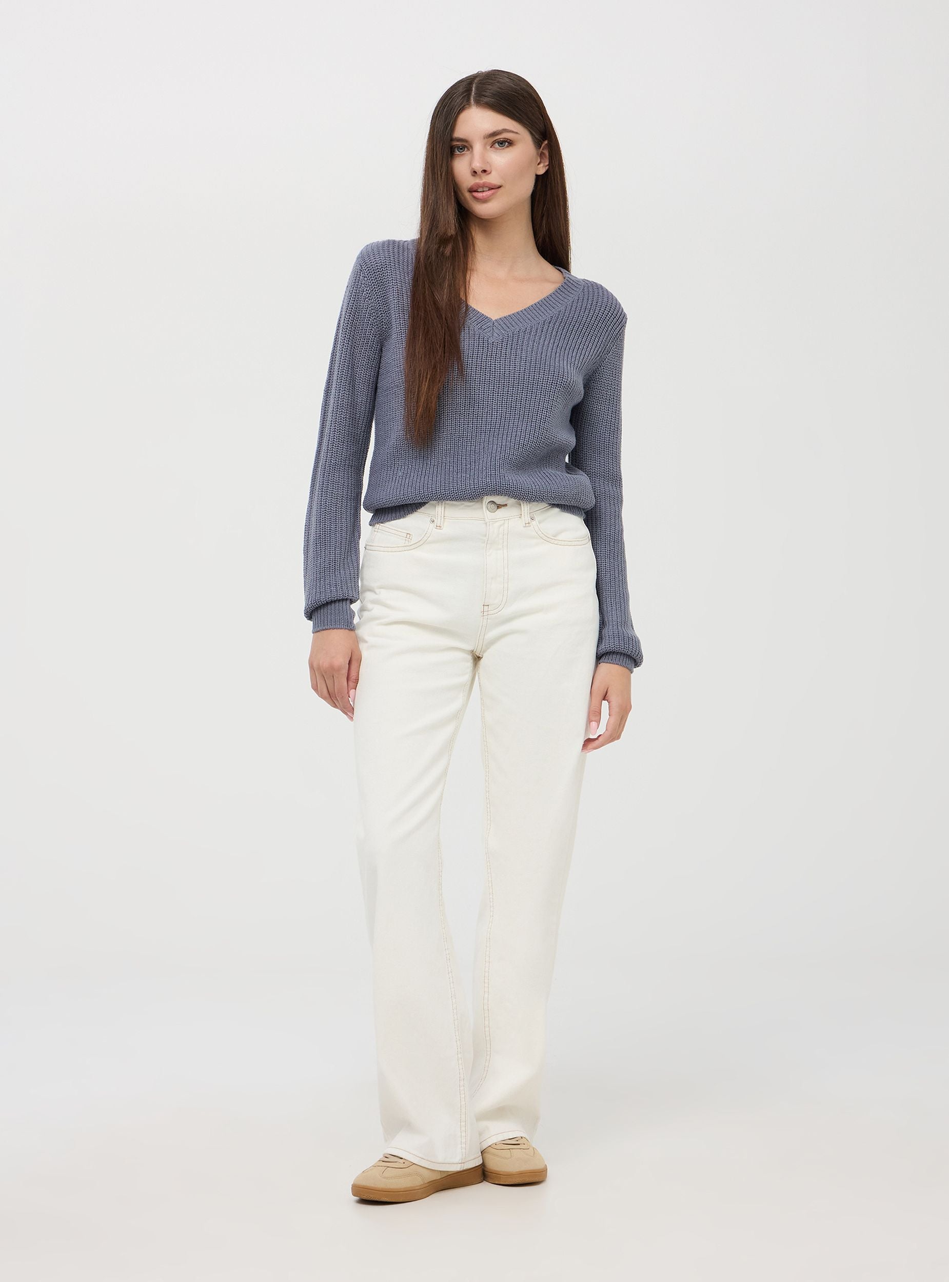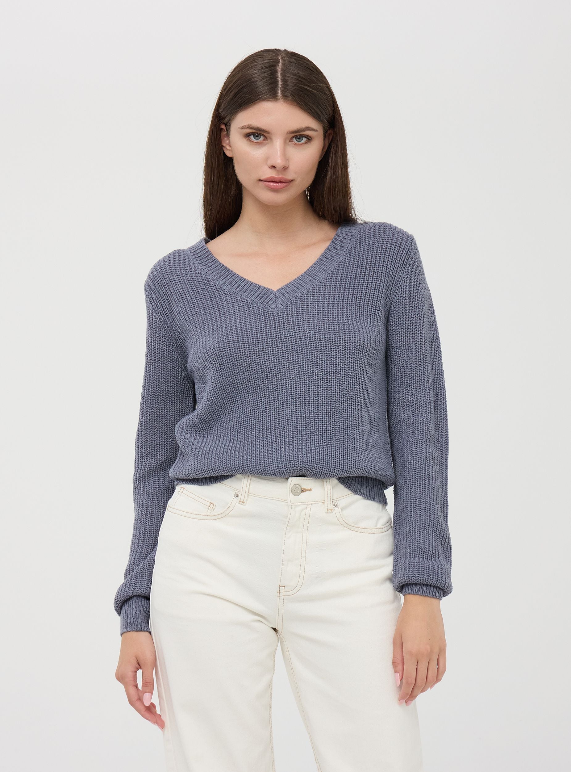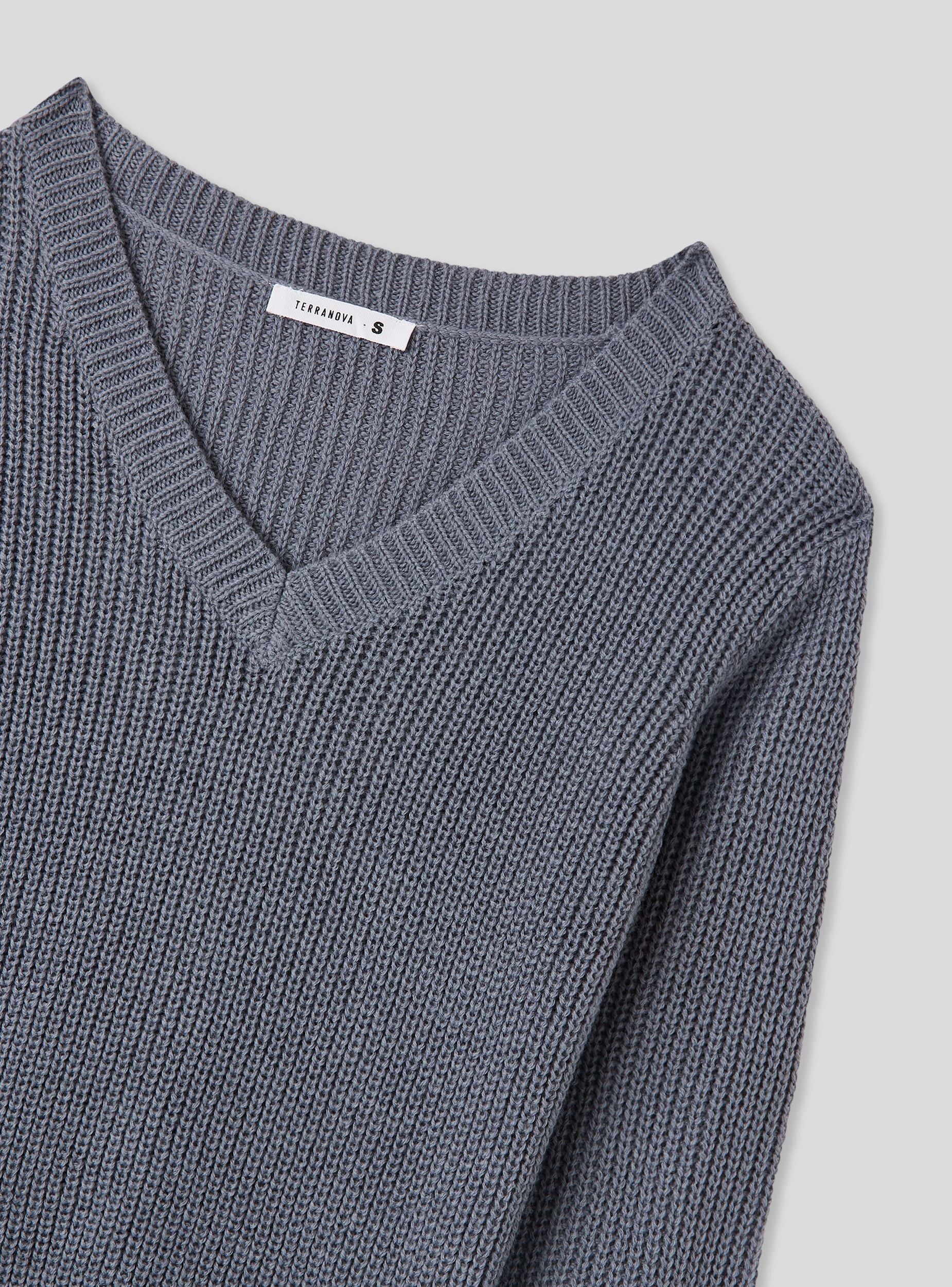Maglia da donna a maniche lunghe in tessuto tinta unita a coste inglese, realizzata in morbido e caldo materiale perfetto per l'inverno. Il design presenta uno scollo a V che aggiunge un tocco di femminilità e stile. Vestibilità regular e confortevole, garantisce calore e comfort durante le giornate fredde. Perfetta per le occasioni casual o per un look da ufficio rilassato, questa maglia può essere abbinata a jeans, pantaloni eleganti o gonne. Indossala con una camicia sotto per un outfit più formale, oppure da sola per un look più semplice e quotidiano.