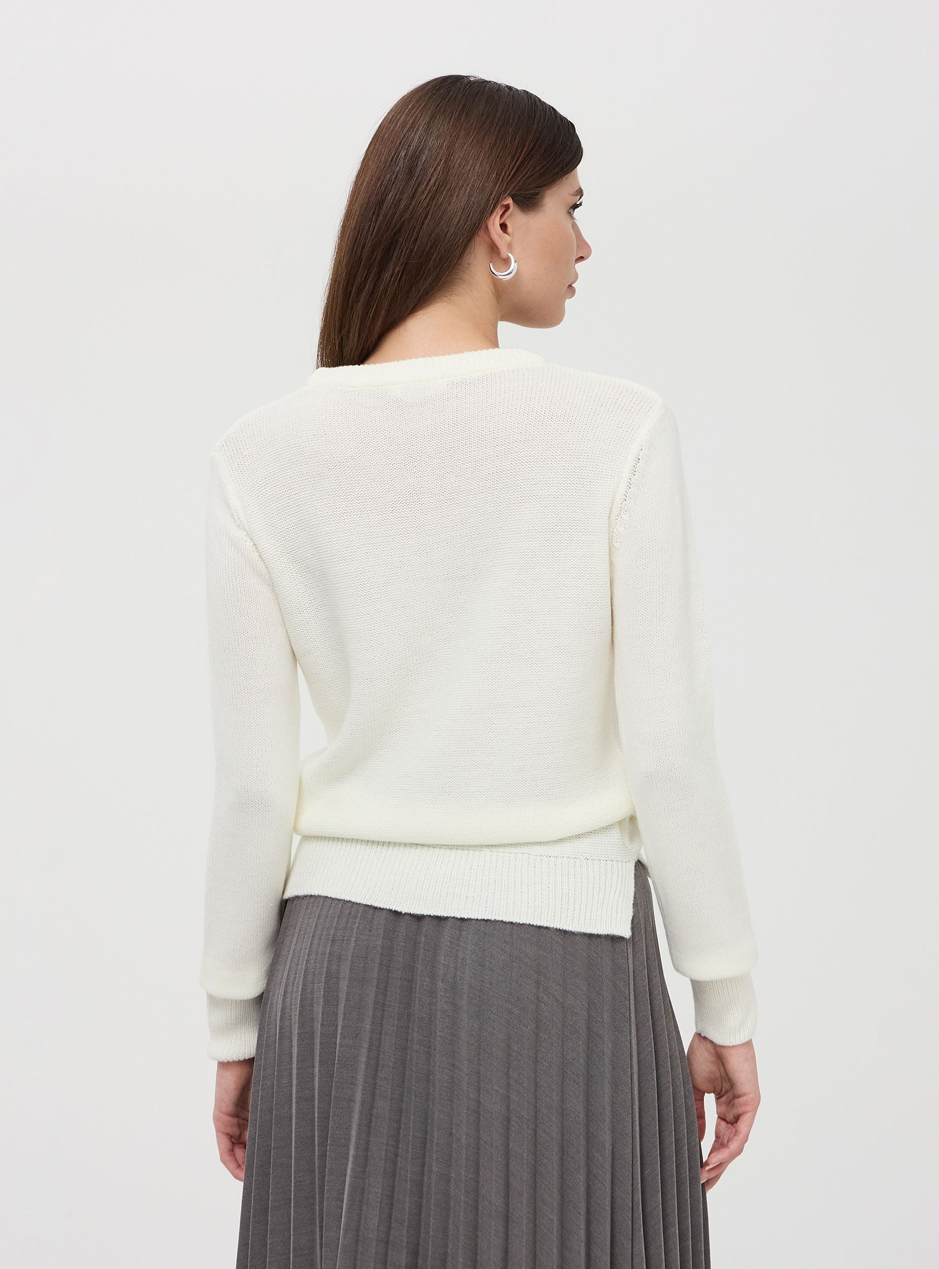 Maglia da donna a maniche lunghe realizzata in morbido filato a tinta unita con finiture a costine e piccolo spacchetto laterale, perfetta per garantire comfort e calore durante la stagione fredda. Il design presenta uno scollo rotondo e una vestibilità regular e confortevole. Capo basic facile da abbinare, perfetto per le occasioni casual e quotidiane. Questa maglia è ideale da indossare con jeans, pantaloni o gonne per un look semplice ma professionale da ufficio, oppure durante il tempo libero per un tocco di stile e comfort.