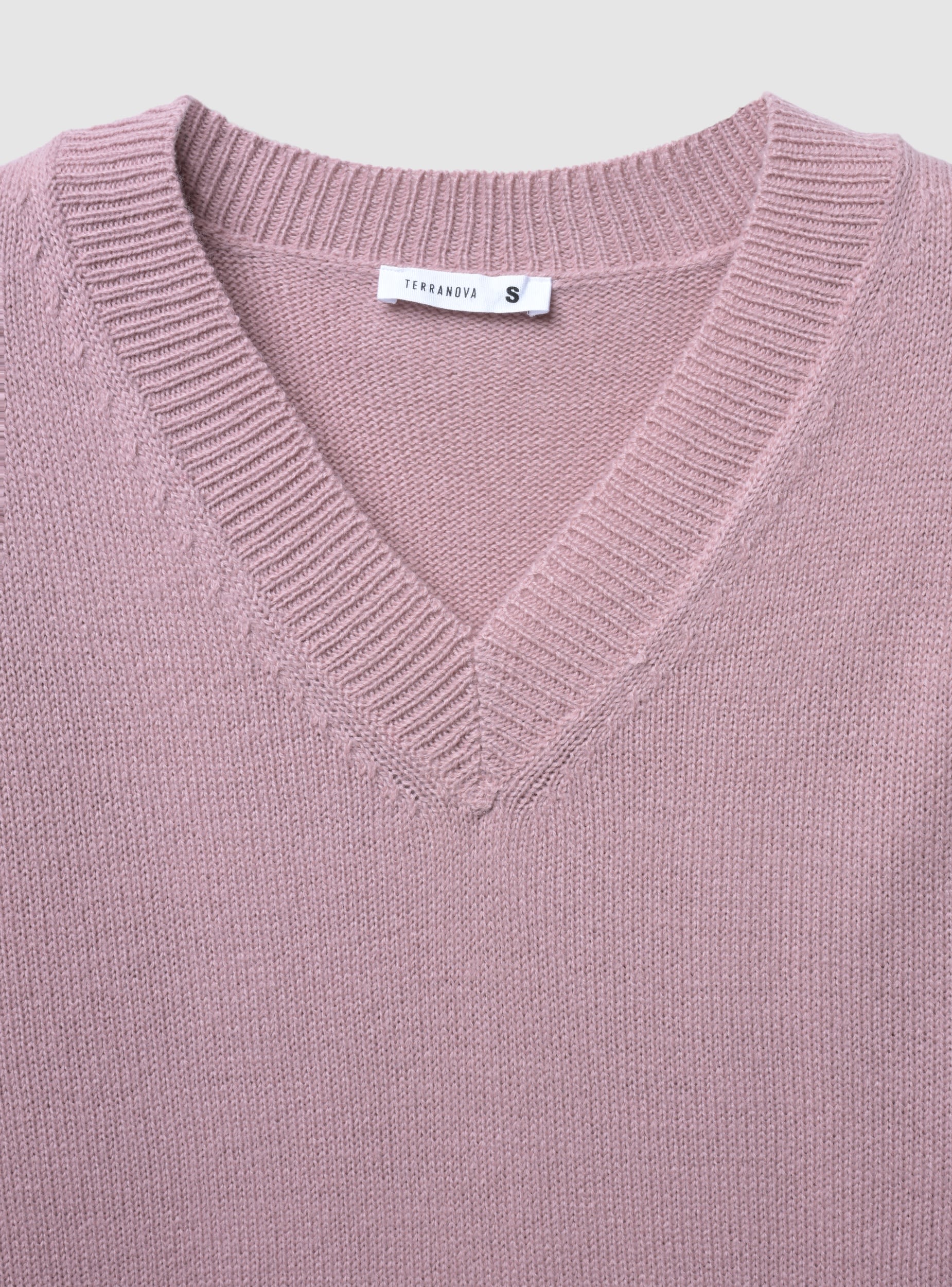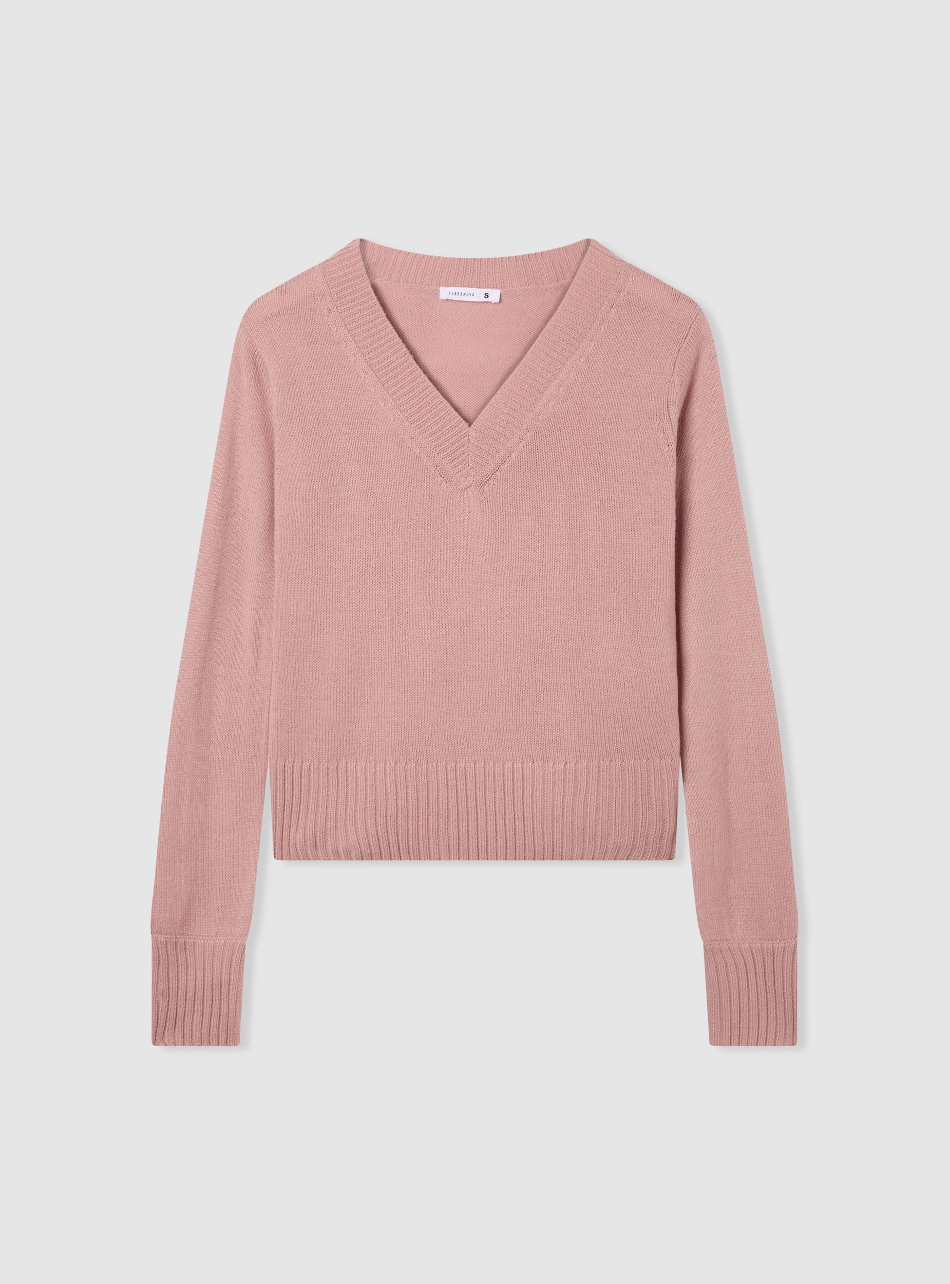 Maglia da donna con scollo a V e maniche lunghe, ideale per un look casual e versatile. Presenta polsini e bordo inferiore a coste che aggiungono un tocco di stile al design semplice. Perfetta per essere abbinata a jeans o gonne per un outfit quotidiano. La vestibilità comoda la rende adatta a diverse occasioni, dal lavoro al tempo libero.