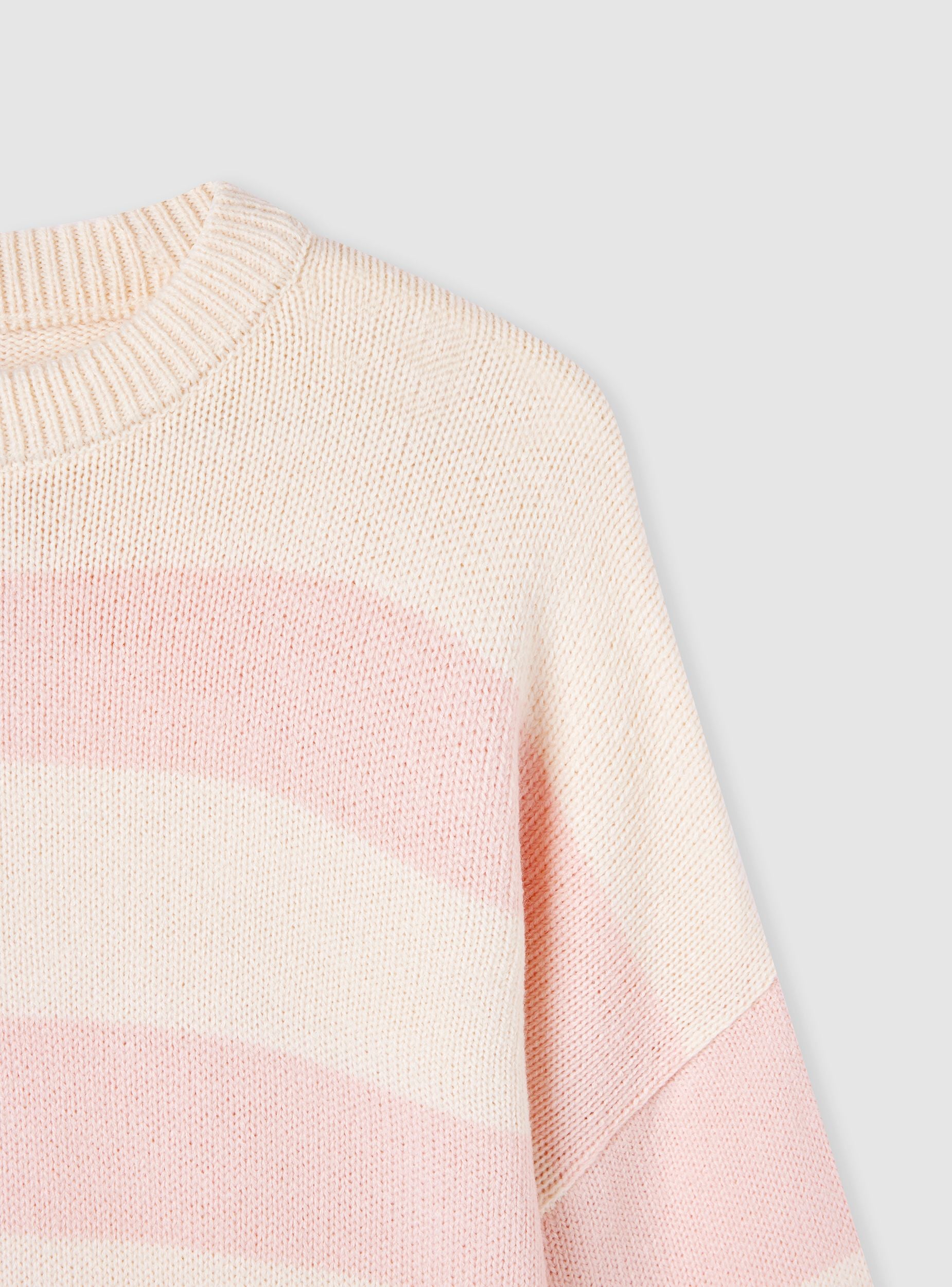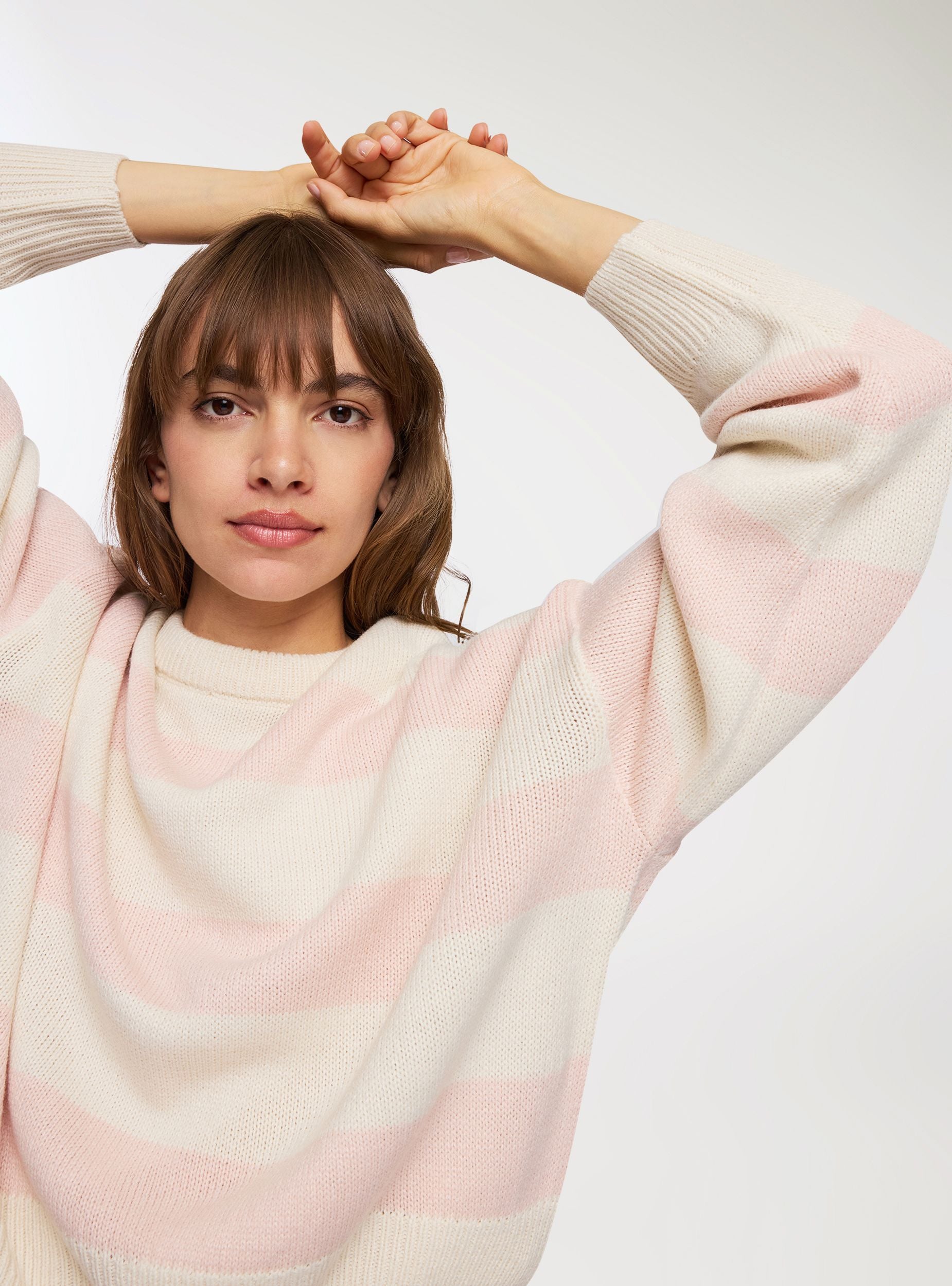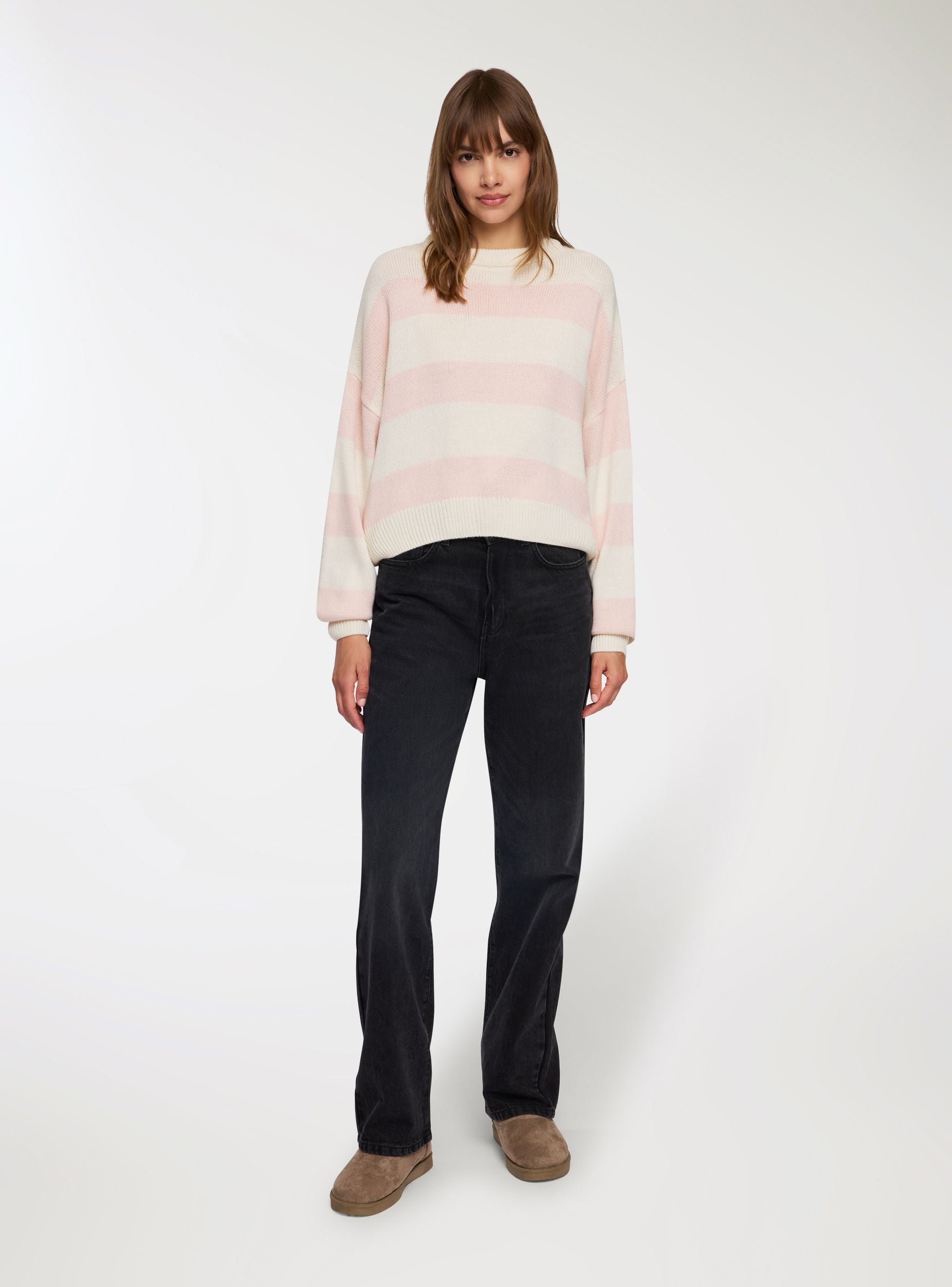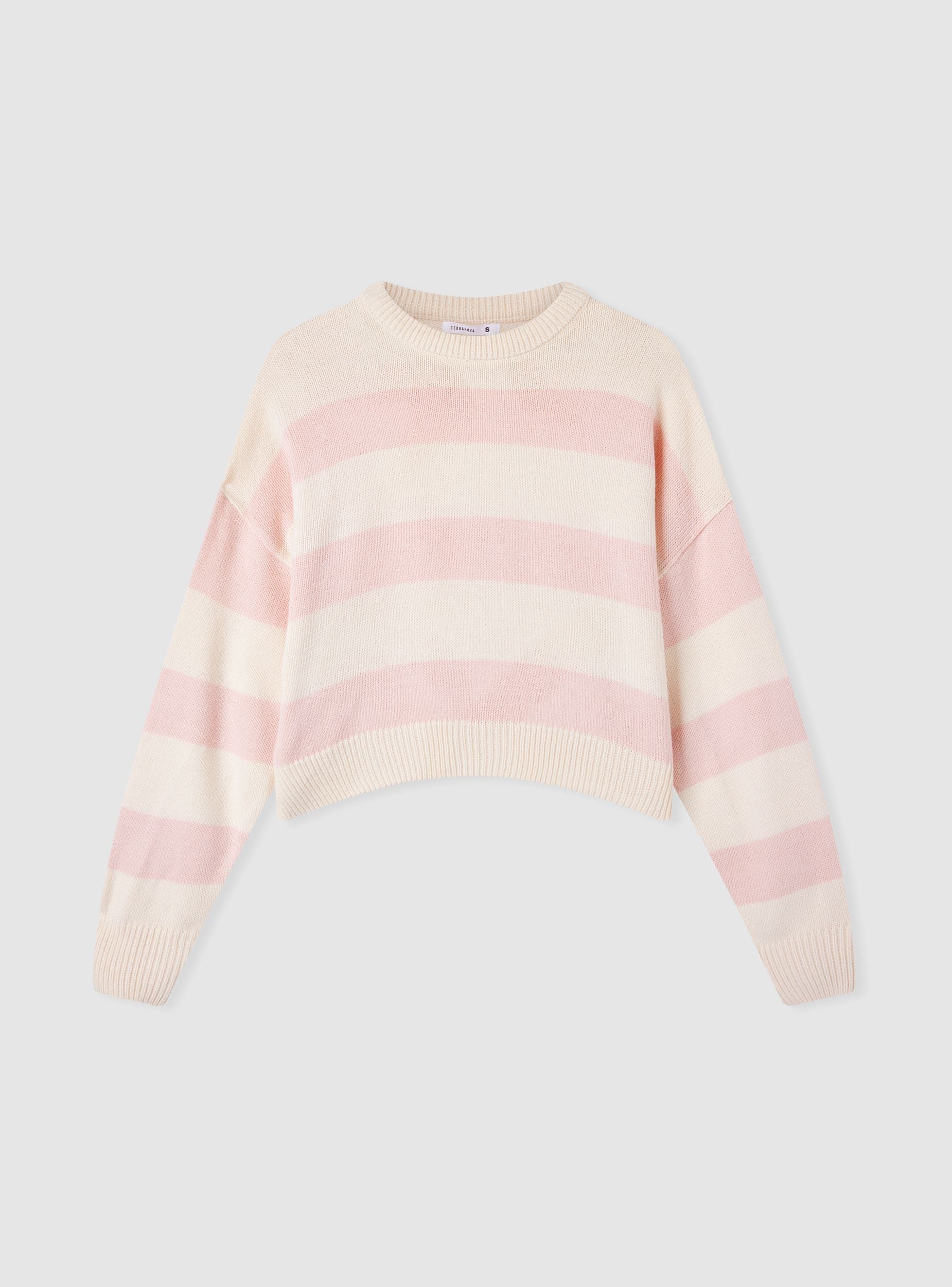 Maglia da donna con design a righe, ideale per un look casual e moderno. Perfetta per essere abbinata a jeans o pantaloni a tinta unita, questa maglia crop offre un tocco di stile unico. La vestibilità ampia garantisce comfort e libertà di movimento, rendendola adatta per giornate rilassate o uscite informali. Un capo versatile che si distingue per il suo design accattivante.