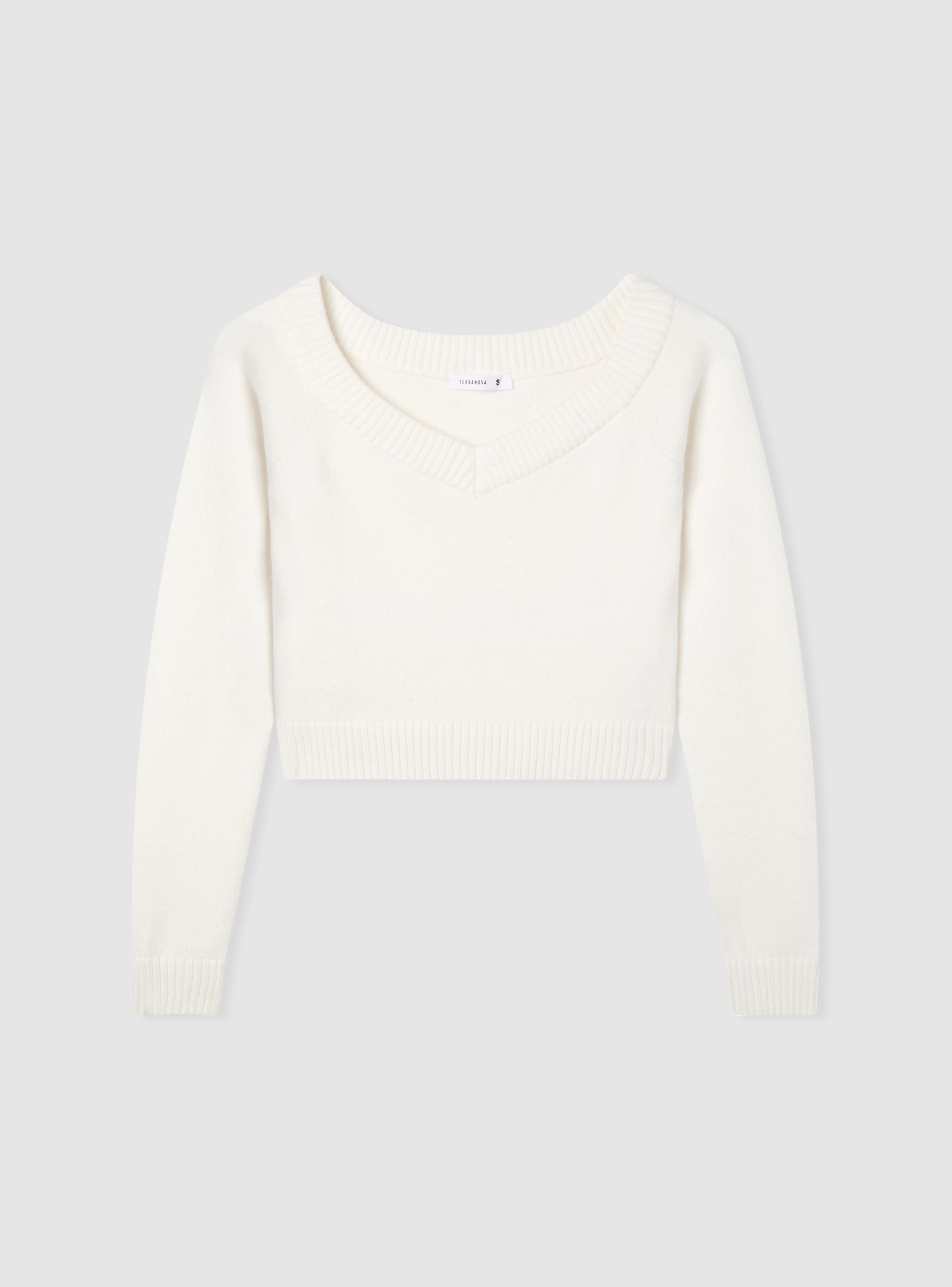 Maglia da donna con scollo a V ampio che lascia le spalle scoperte e vestibilità crop. Ideale per un look casual e moderno, si abbina perfettamente a jeans o gonne a vita alta. Le maniche lunghe e il design semplice la rendono versatile per diverse occasioni, dal tempo libero a un'uscita informale. Perfetta per chi cerca uno stile comodo e alla moda.
