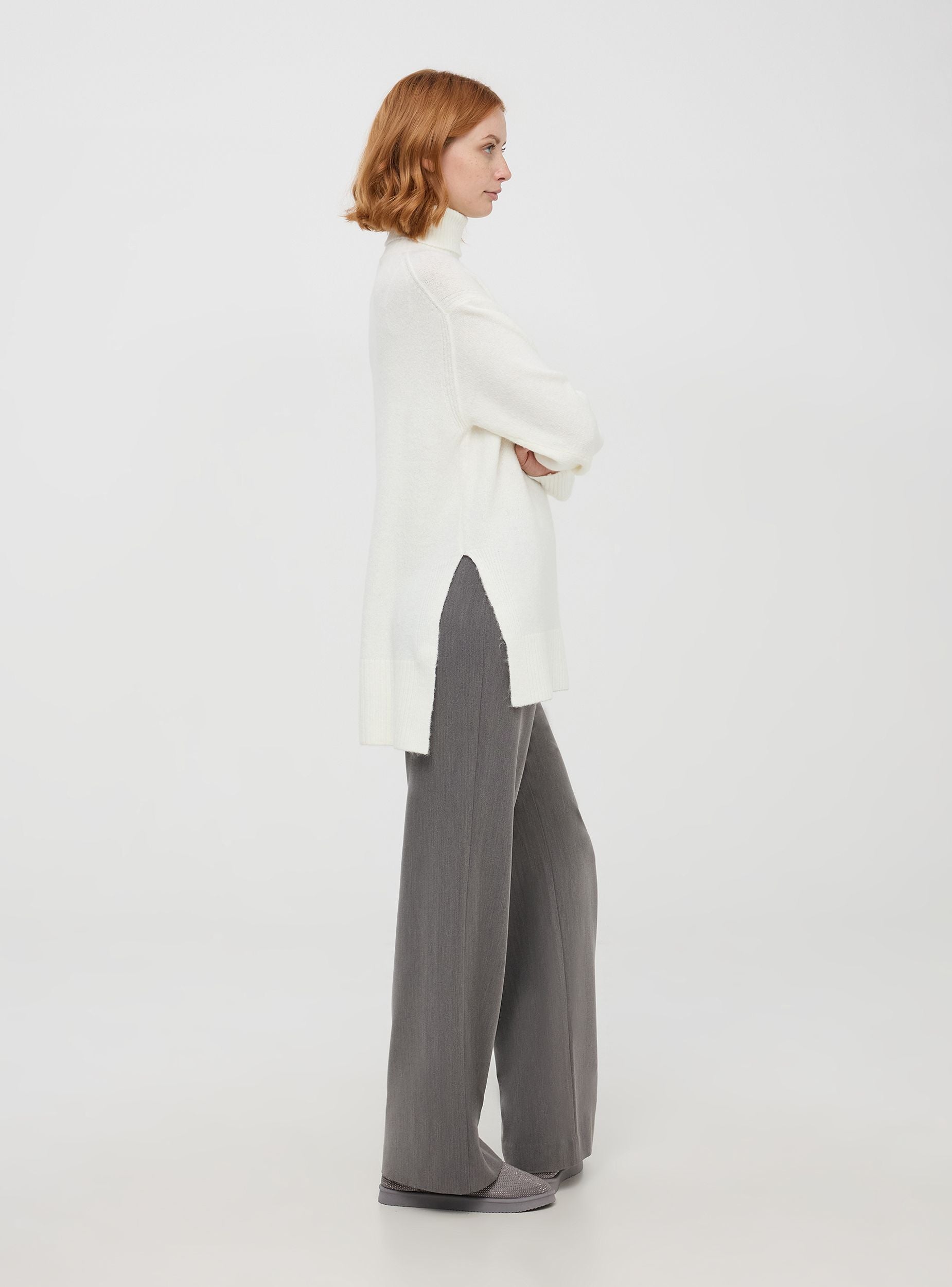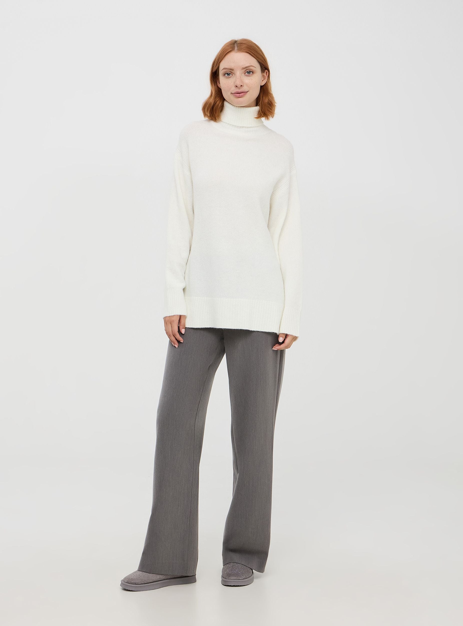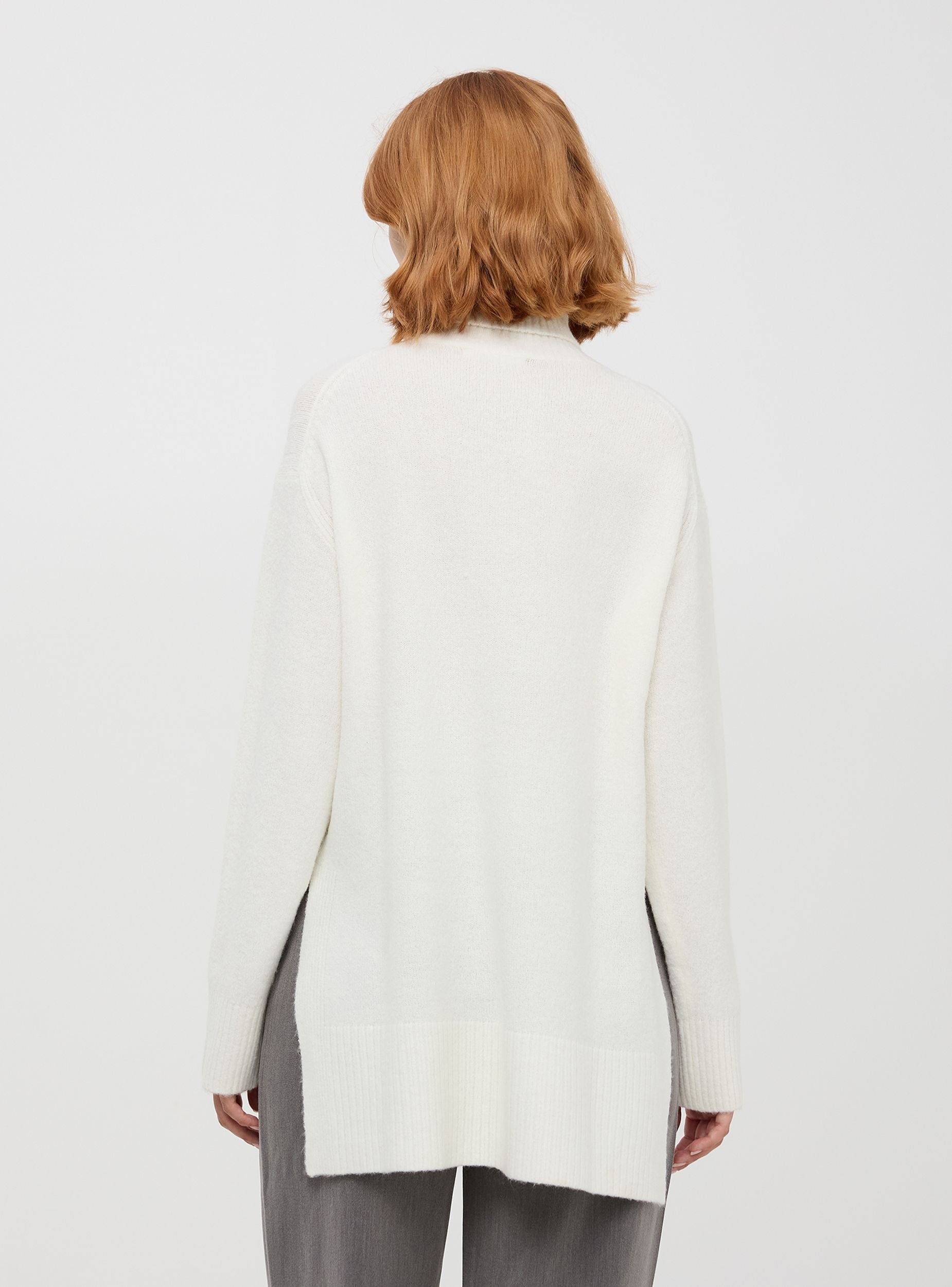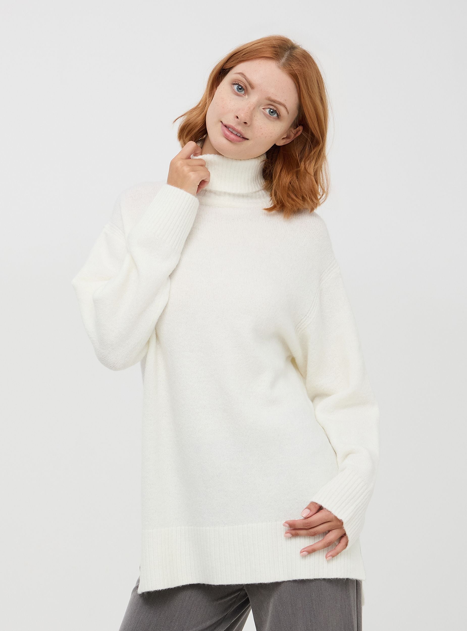 Maglia da donna con collo alto, modello dolcevita, con spacchi laterali. Tessuto a tinta unita. Vestibilità maxi.
