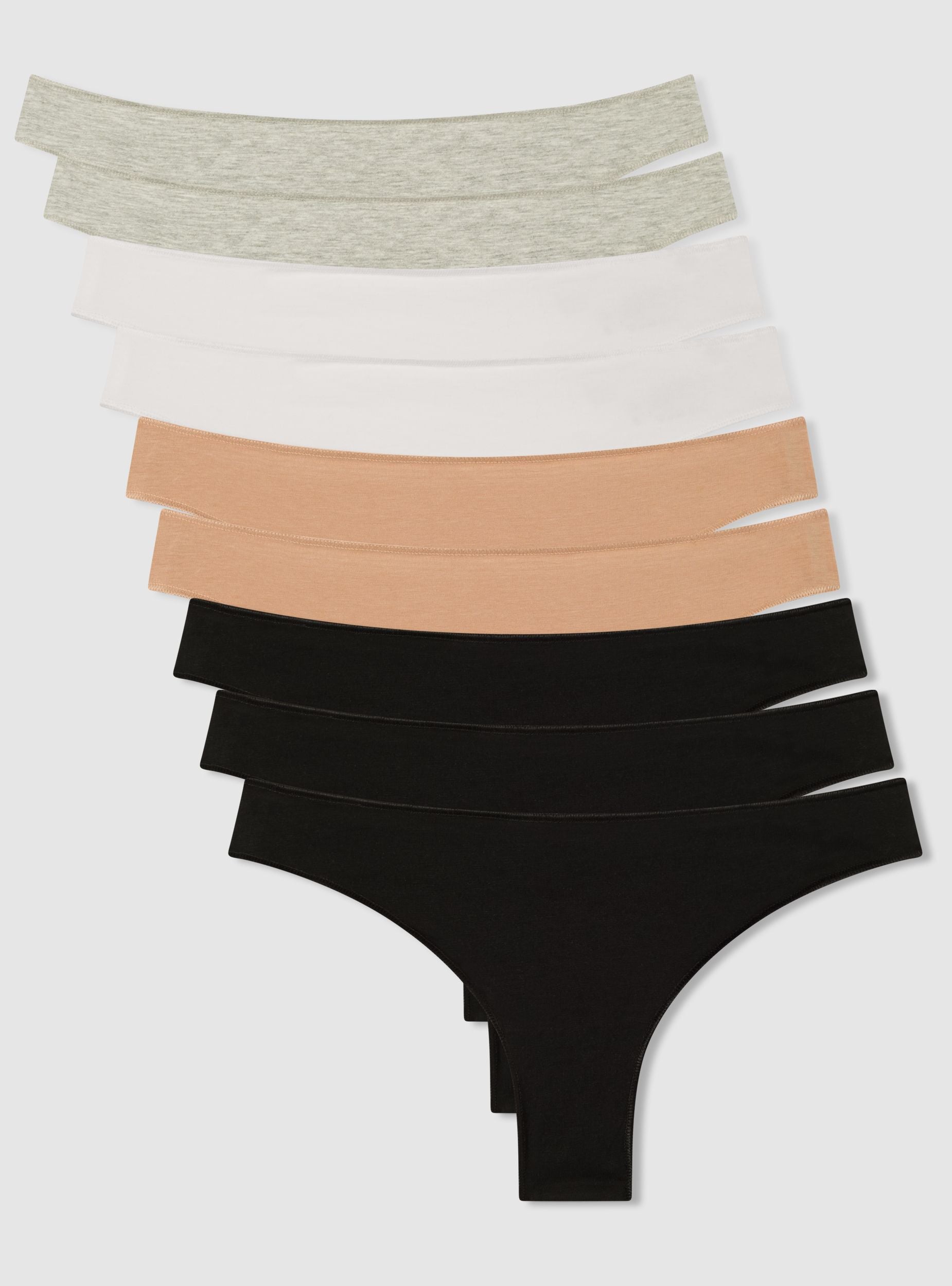 Confezione composta da 10 slip da donna con vestibilità brasiliana. Perfette per essere indossate sotto qualsiasi tipo di abbigliamento, grazie al design tinta unita che garantisce discrezione e stile. La vestibilità brasiliana offre un tocco di femminilità e comfort, rendendolo adatto per l'uso quotidiano.