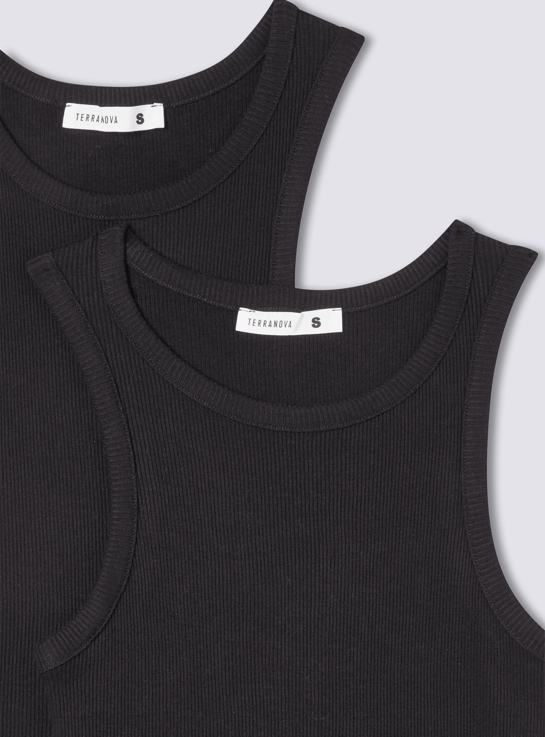 Confezione composta da 2 top da donna modello vogatore, perfetti per un look sportivo o casual. La vestibilità comoda e il design senza maniche offrono libertà di movimento, ideale per il tempo libero o l'attività fisica. La tinta unita li rende versatili e facili da abbinare a jeans, leggings o pantaloncini per un outfit semplice e alla moda.Dettagli