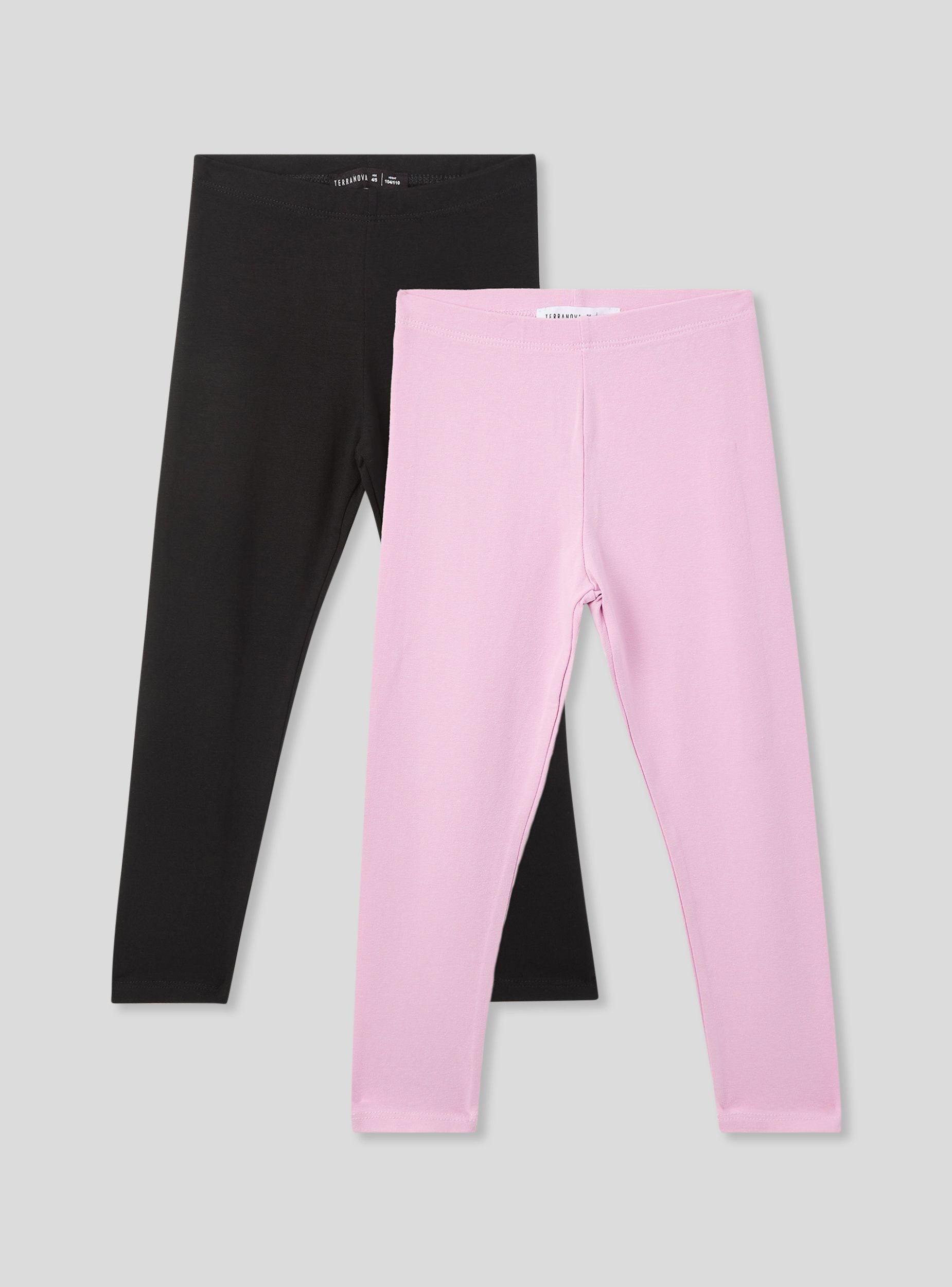 Confezione composta da 2 leggings da bambina a tinta unita, entrambi elasticizzati e dotati di elastico morbido in vita per una vestibilità confortevole. Questi leggings offrono massima libertà di movimento, rendendoli perfetti per il gioco e le attività quotidiane. Ideali per essere abbinati a t-shirt o felpe, sono la scelta ideale per un look casual e pratico, adatto a ogni occasione.