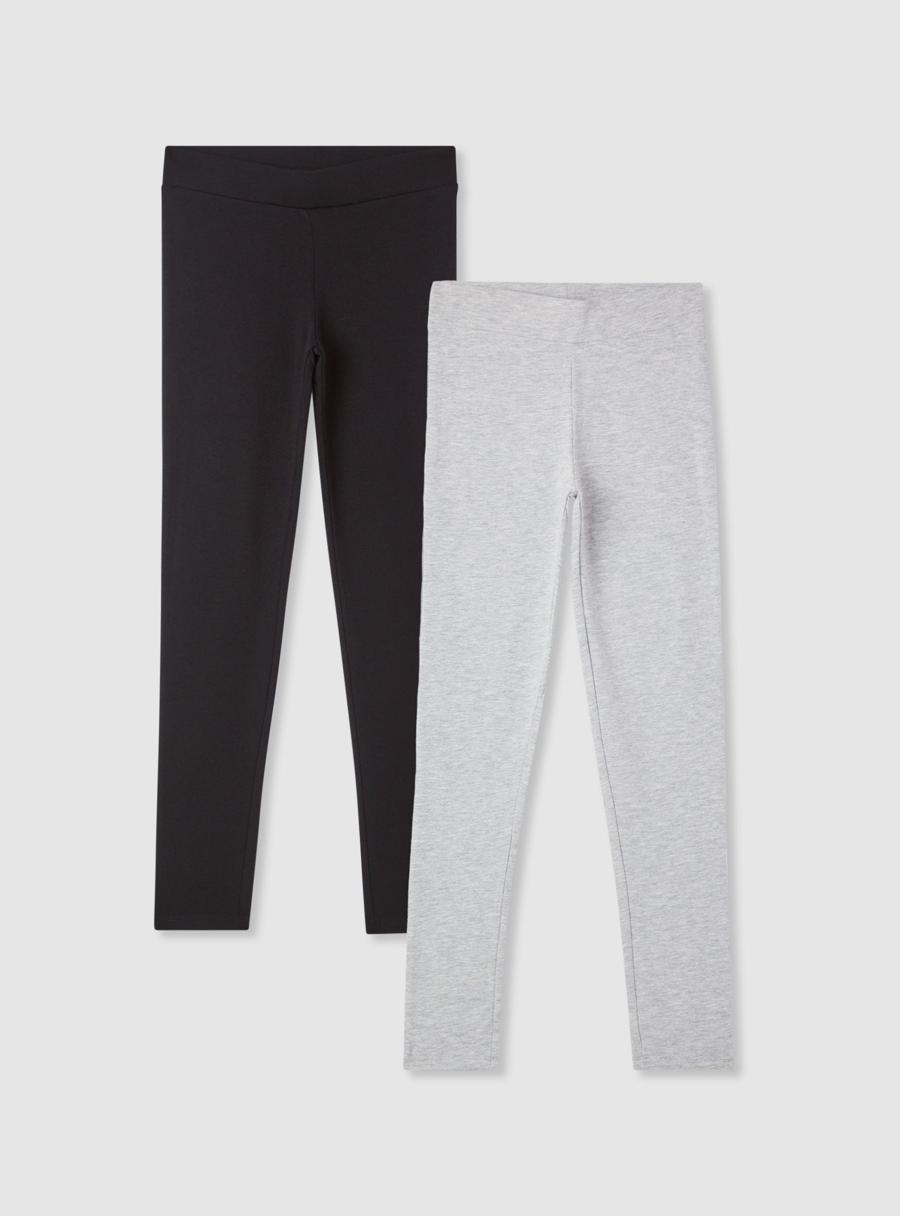 Confezione composta da 2 leggings da bambina a tinta unita, ideali per scuola, attività e tempo libero. Modello lungo con vita elasticizzata che offre comfort e libertà di movimento. Linea aderente e senza tasche, perfetti sotto felpe, magliette o cardigan e con sneakers o ballerine. Cuciture pulite e finitura essenziale per un look pratico e versatile da indossare ogni giorno.