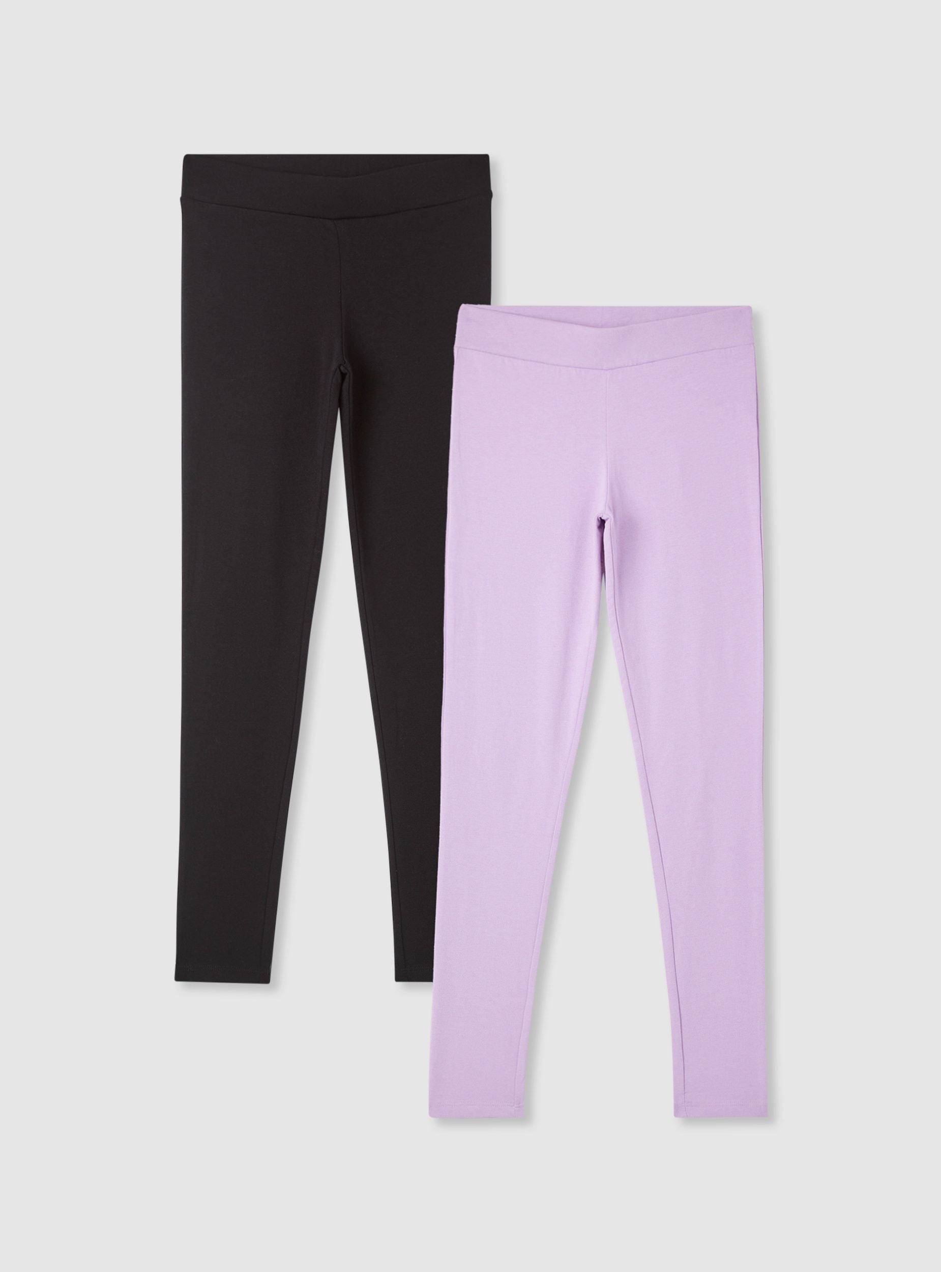 Confezione composta da 2 leggings da bambina a tinta unita, ideali per scuola, attività e tempo libero. Modello lungo con vita elasticizzata che offre comfort e libertà di movimento. Linea aderente e senza tasche, perfetti sotto felpe, magliette o cardigan e con sneakers o ballerine. Cuciture pulite e finitura essenziale per un look pratico e versatile da indossare ogni giorno.