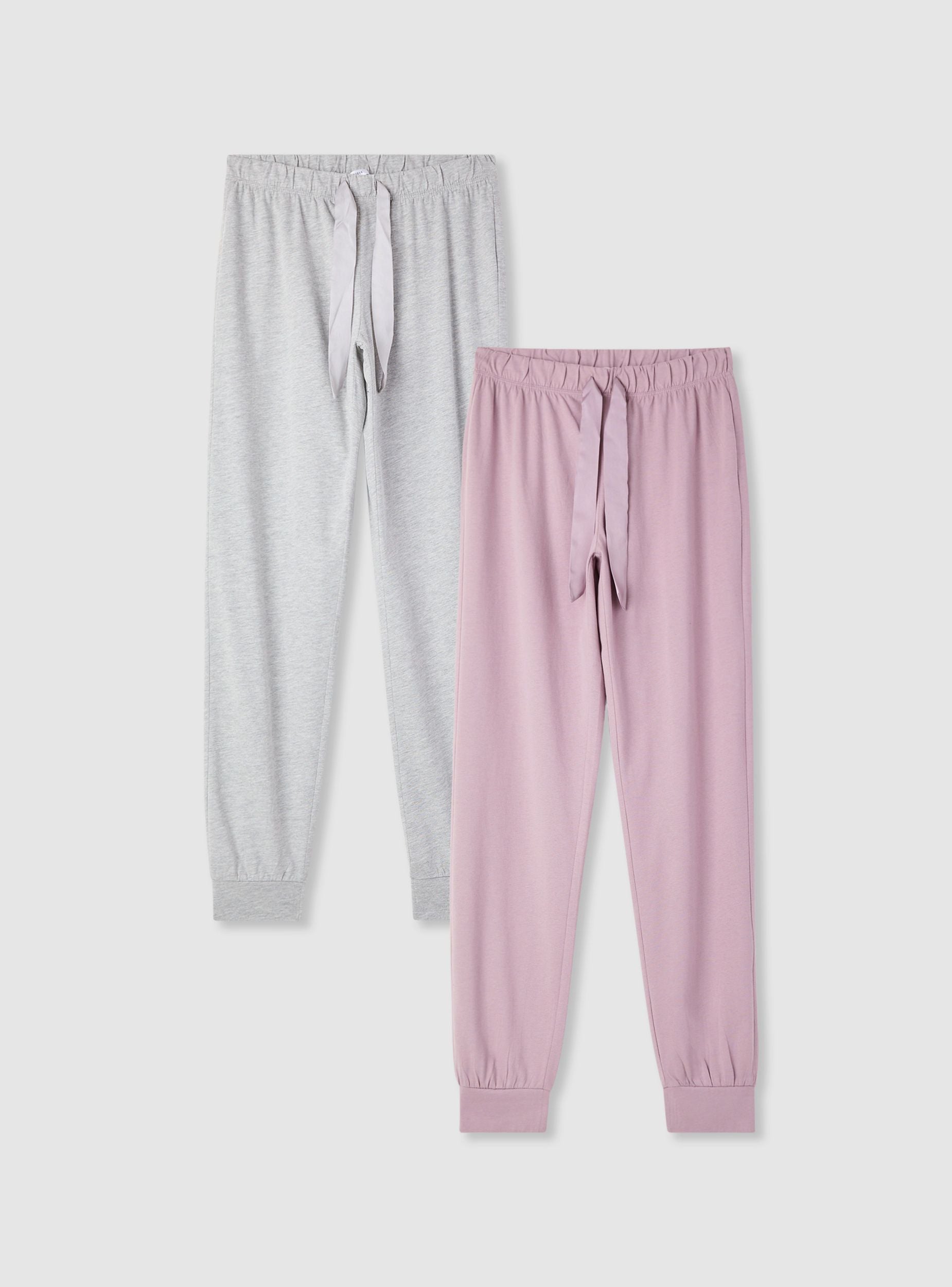 Pantaloni tuta da donna in confezione da 2, perfetti per relax e tempo libero. Modello tinta unita con vita elasticata regolabile tramite coulisse e orlo con polsino che avvolge la caviglia. Vestibilità regular per comfort quotidiano e libertà di movimento. Ideali con felpa con cappuccio o maglietta per outfit casual a casa o per uscite informali. Design essenziale senza tasche visibili, facile da abbinare.