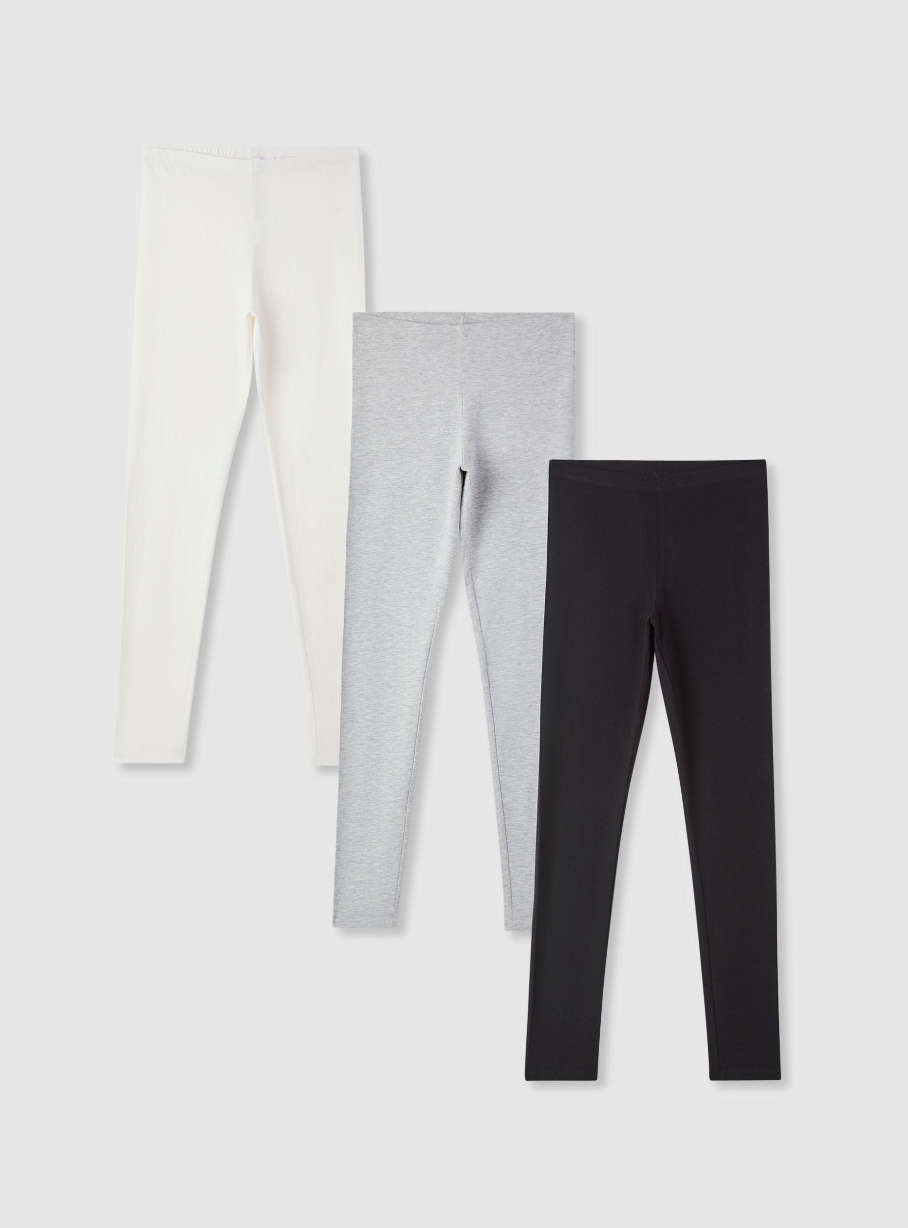 Confezione composta da 3 leggings da bambina a tinta unita, realizzati con tessuto elasticizzato per garantire comfort e libertà di movimento. Ogni leggings è dotato di elastico in vita, offrendo una vestibilità comoda e stabile durante tutta la giornata. Perfetti per essere indossati con t-shirt, maglie, felpe o abiti casual, questi leggings sono ideali per il gioco, le attività scolastiche o il tempo libero.