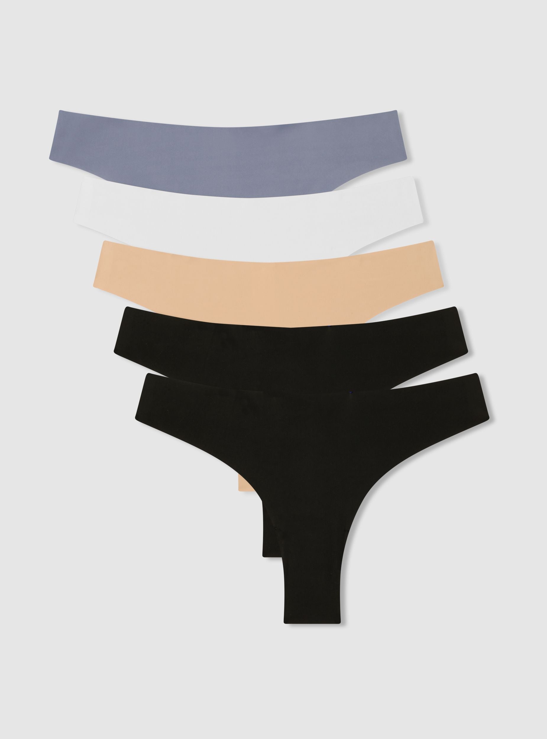 Confezione composta da 5 slip da donna, modello brasiliana in microfibra. Questi slip da donna con design brasiliana sono ideali per un look minimalista e confortevole. Perfetti per essere indossati sotto abiti aderenti grazie alla vestibilità senza cuciture. La tinta unita li rende versatili e adatti a molteplici occasioni. Un capo essenziale per il guardaroba femminile, garantendo comfort e stile in ogni momento.