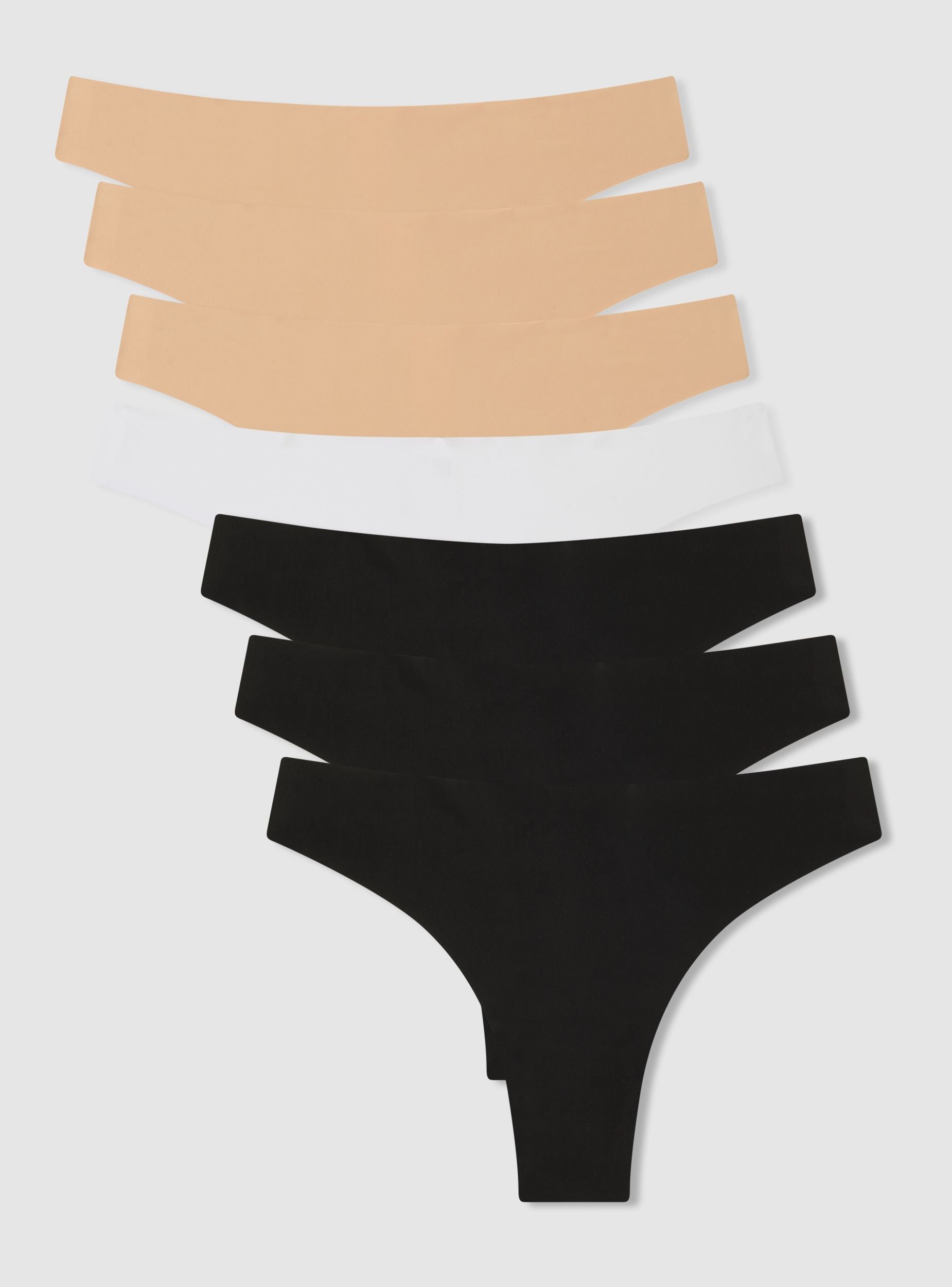 Confezione composta da 7 slip da donna, modello brasiliana in microfibra. Questi slip da donna con design brasiliana sono ideali per un look minimalista e confortevole. Perfetti per essere indossati sotto abiti aderenti grazie alla vestibilità invisibile. La tinta unita li rende versatili e adatti a ogni occasione. Un capo essenziale per il guardaroba femminile, pensato per garantire comfort e stile.