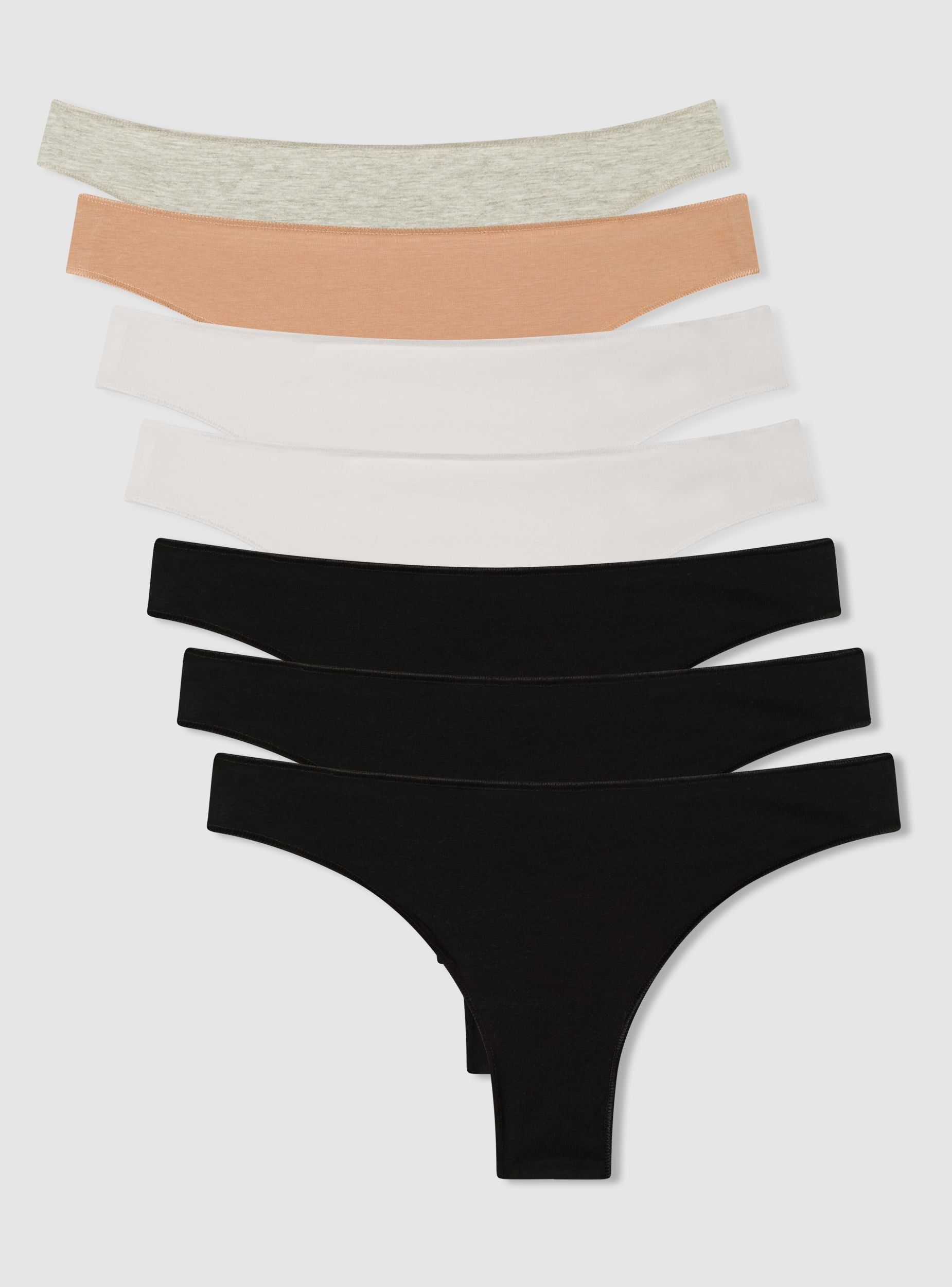 Confezione composta da 7 slip da donna con vestibilità brasiliana. Ideali per un look casual e confortevole. Perfette per essere indossate sotto abiti aderenti grazie alla vestibilità comoda. La tinta unita li rende versatili e adatti a ogni occasione. Un capo essenziale per il guardaroba quotidiano.
