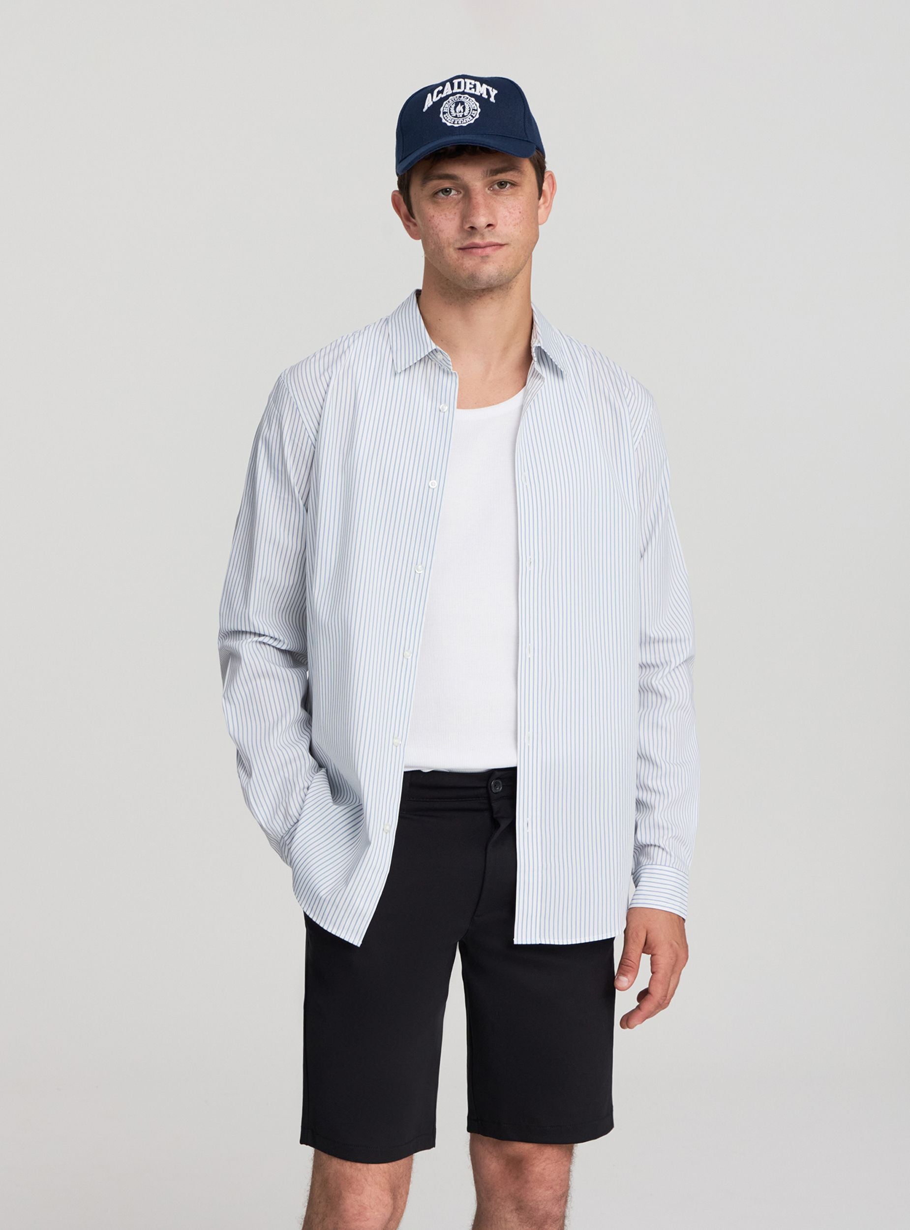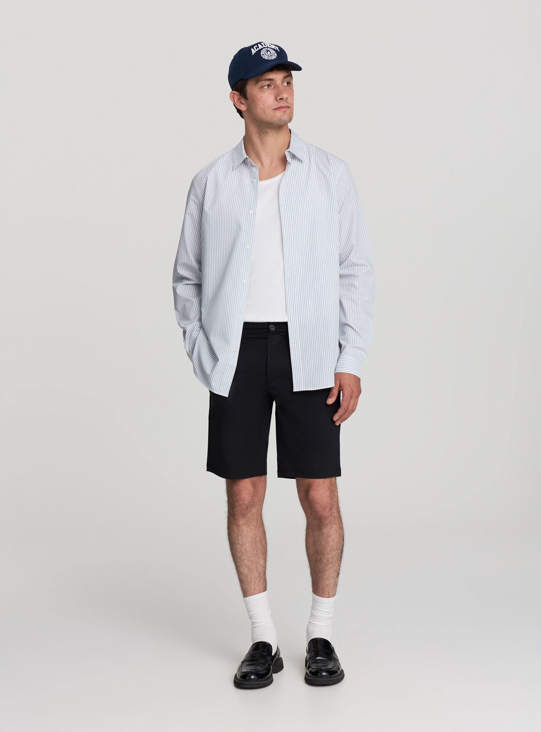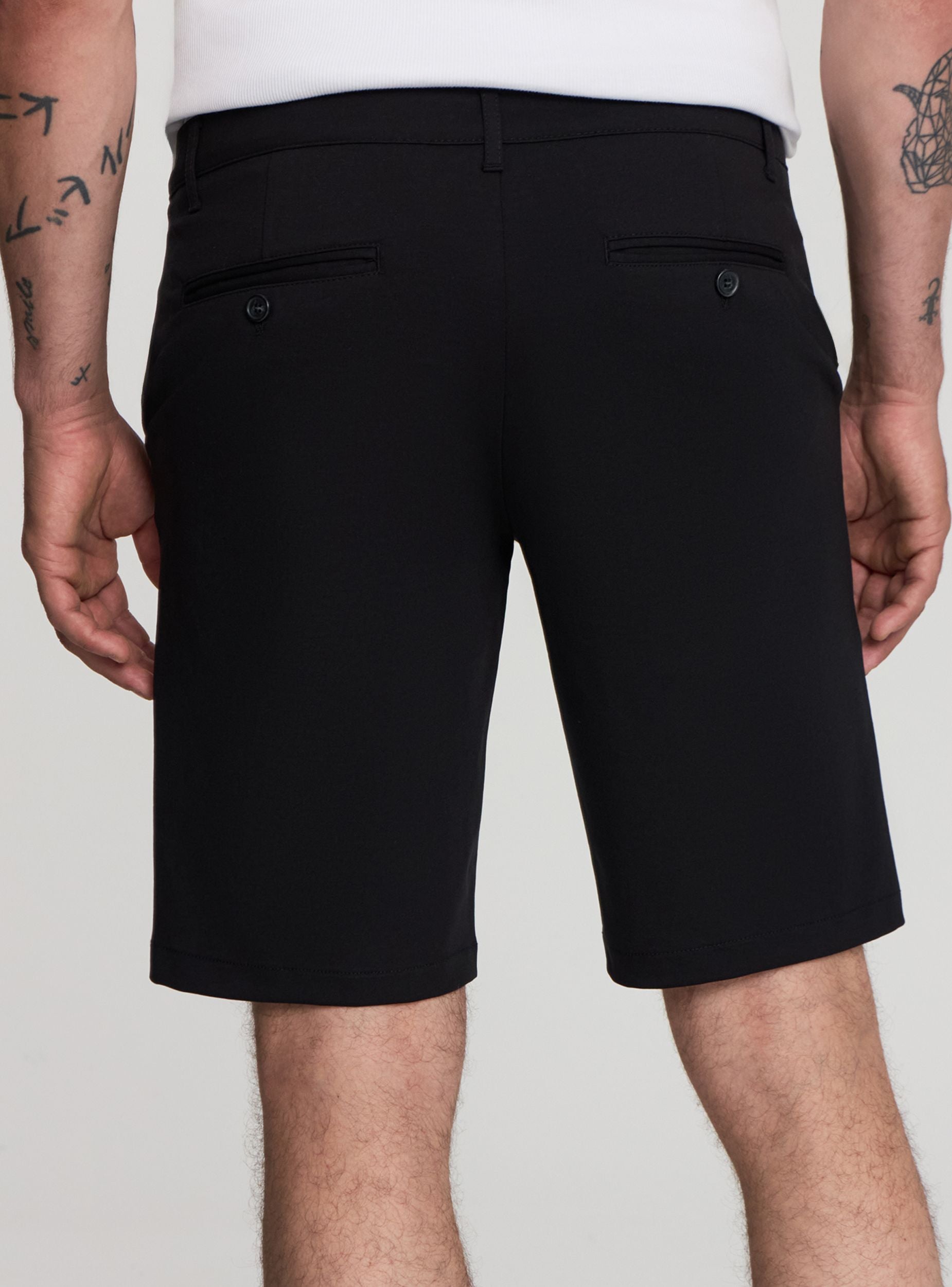 Pantaloncini da uomo, modello chino in cotone tinta unita. Chiusura con bottone e zip. Presentano tasche laterali e passanti per cintura, ideali per look casual o semi-formali. Perfetti per il tempo libero, passeggiate in città o serate estive, si abbinano a camicie o polo.