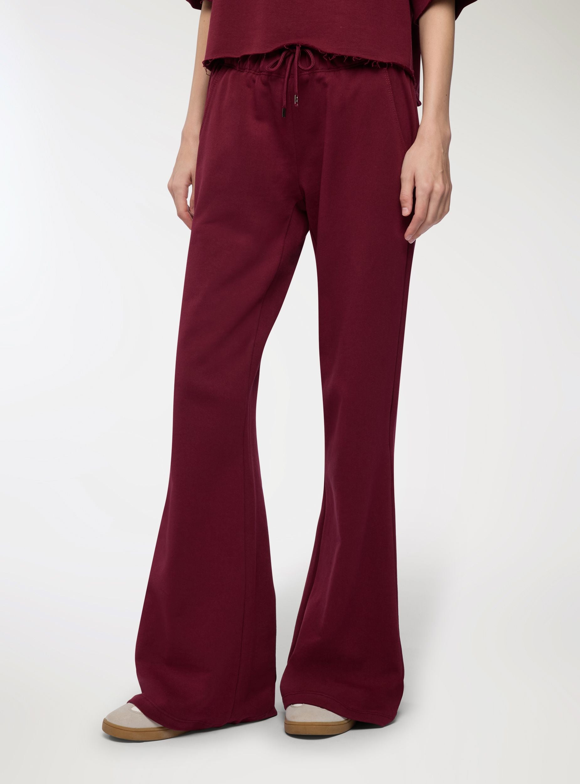 Pantaloni tuta da donna dal design a zampa, ideali per il tempo libero e look casual. Vita con coulisse regolabile e tasche laterali a filetto per praticità. Lunghezza alla caviglia e vestibilità regular che valorizza la linea senza costringere. Perfetti con felpe o magliette e sneakers per outfit comodi, oppure con cardigan e top per un tocco rilassato ma curato. Tessuto leggero a tinta unita.