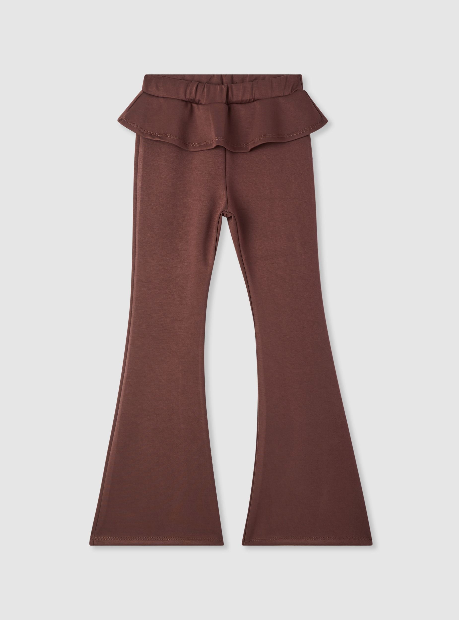 Pantaloni ginnici da bambina dal design a zampa, ideali per il tempo libero e gli outfit di tutti i giorni. Vita con elastico con delicato volant che aggiunge un tocco femminile e confortevole. Vestibilità regolare che segue il movimento e gamba che si allarga verso il fondo per un effetto slanciato. Perfetti con felpe o maglioncini e sneakers.