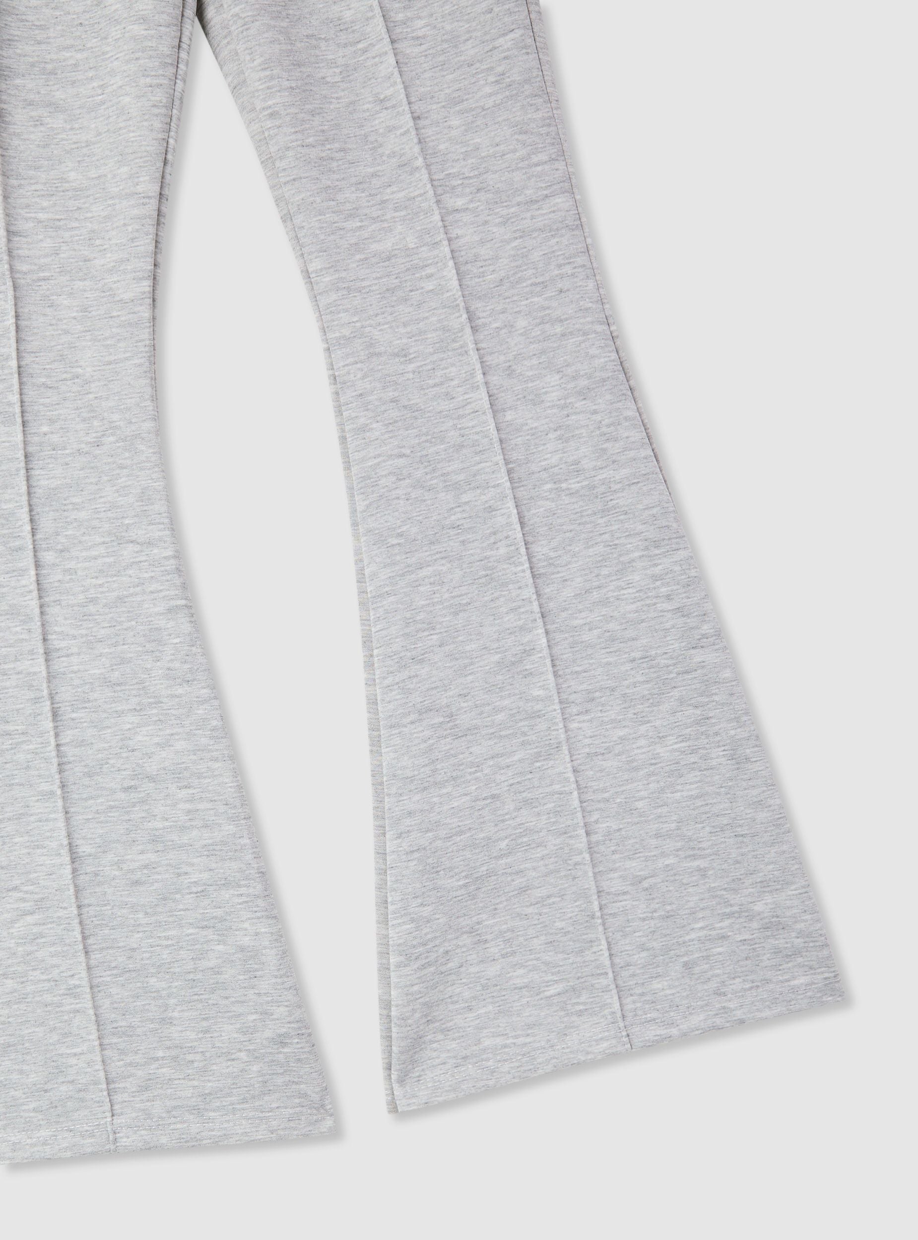 Pantaloni ginnici da bambina in tinta unita con linea svasata a zampa. Vita con elastico per un comfort quotidiano e praticità nei movimenti. Due tasche laterali a filetto. Perfetti per la scuola o il tempo libero, si abbinano a felpe e sneakers per un look sporty, oppure a una maglietta e cardigan per un’uscita informale. Vestibilità regular.
