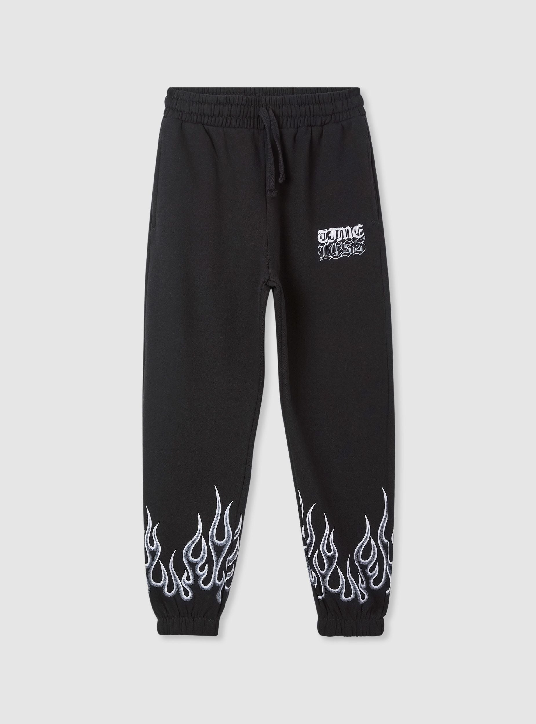 Pantaloni leggeri della tuta da bambino con stampe fiamme. Ideali per un look casual e sportivo, questi pantaloni presentano tasche laterali e vita elasticizzata con coulisse regolabile. Perfetti per il tempo libero o per attività sportive, si distinguono per il design accattivante con stampe grafiche che aggiungono un tocco di stile unico.Dettagli