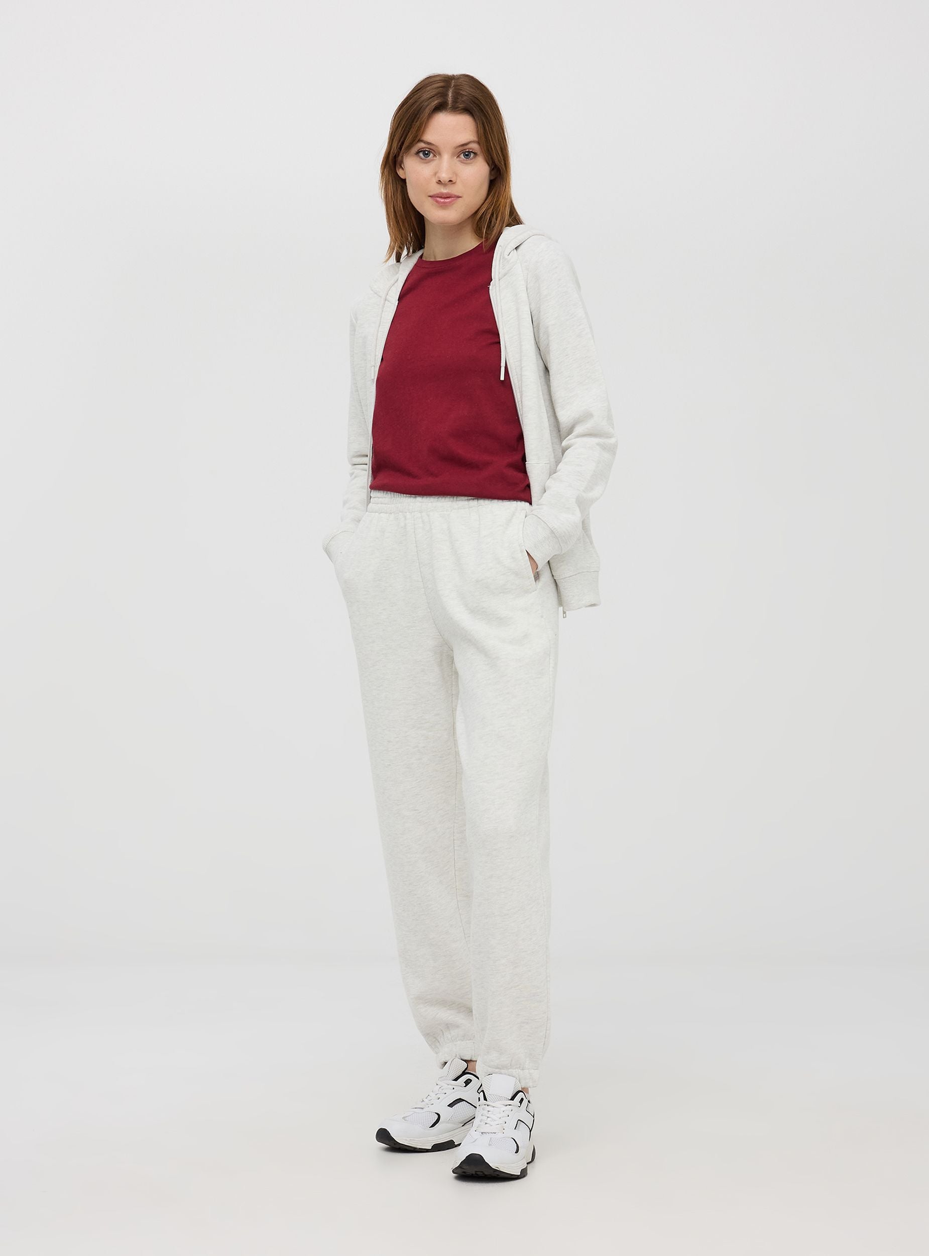 Pantaloni della tuta da donna a vita alta in tessuto pesante a tinta unita, con tasche laterali. Presentano una vestibilità comoda con elastico in vita e alle caviglie, garantendo massimo comfort durante l'uso. La tinta unita rende questi pantaloni versatili e facili da abbinare con diversi outfit. Ideali per attività sportive, giornate casual o momenti di relax in casa, questi pantaloni della tuta sono perfetti per mantenere uno stile comodo e alla moda in ogni occasione.