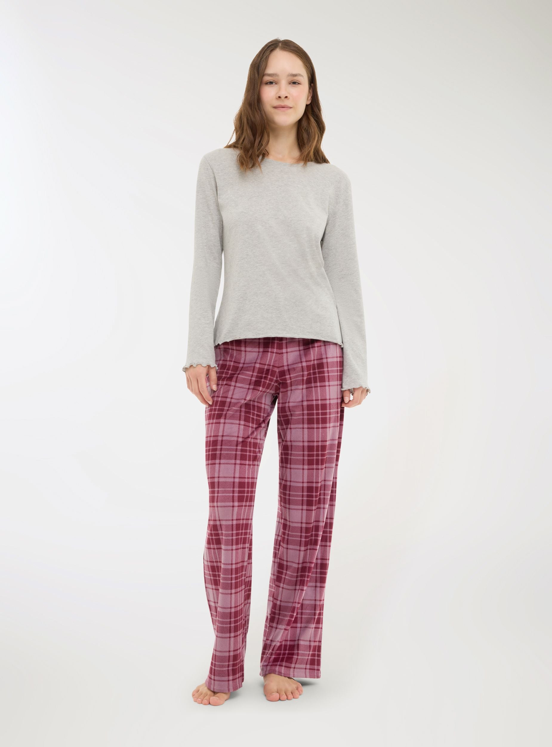Pantaloni lunghi da donna con fantasia a quadri, ideali per un look casual e rilassato. Presentano una vestibilità ampia con gamba larga, perfetti per essere abbinati a magliette o maglioni per un outfit confortevole. La chiusura con elastico in vita garantisce praticità e comodità. Adatti per giornate informali o per momenti di relax.