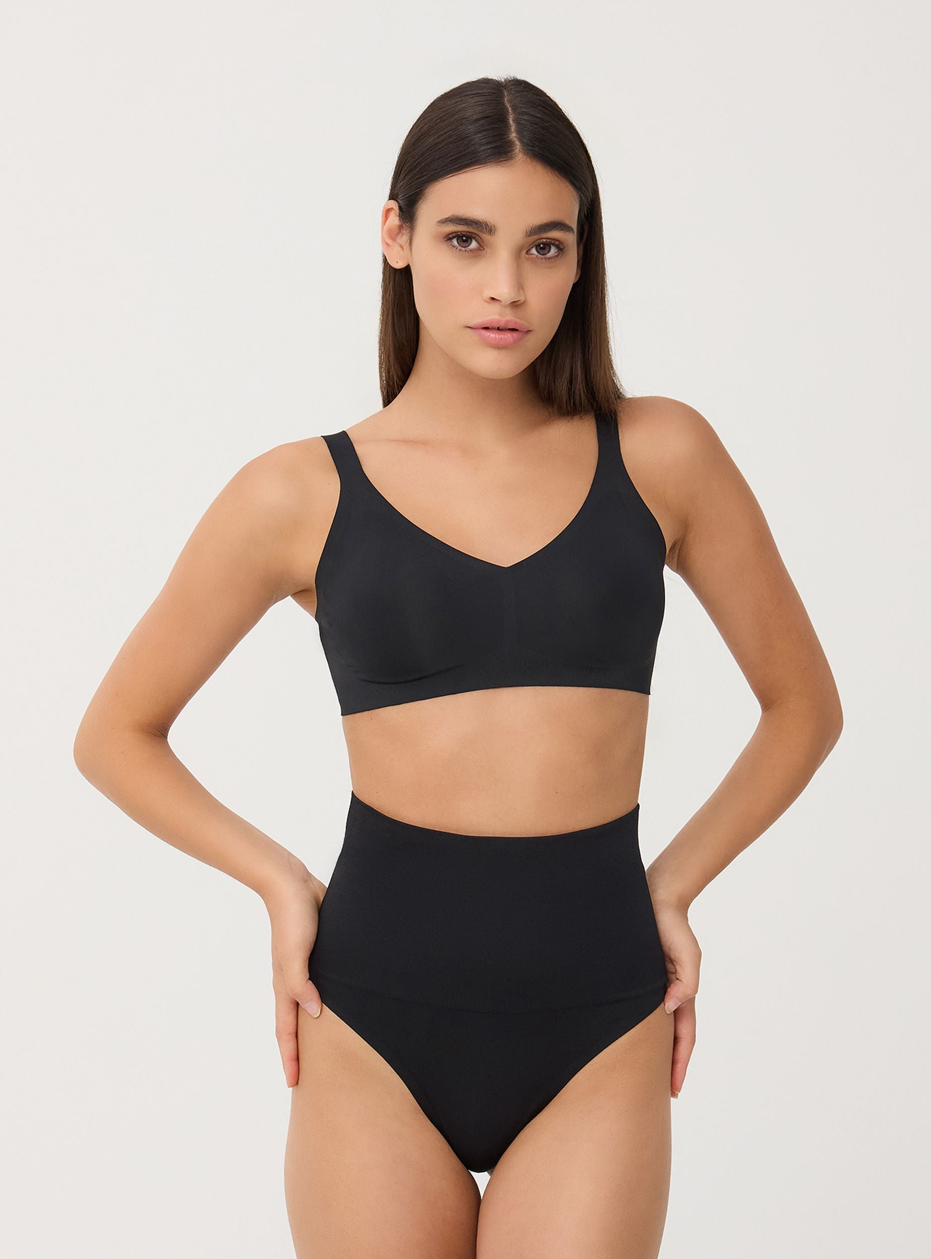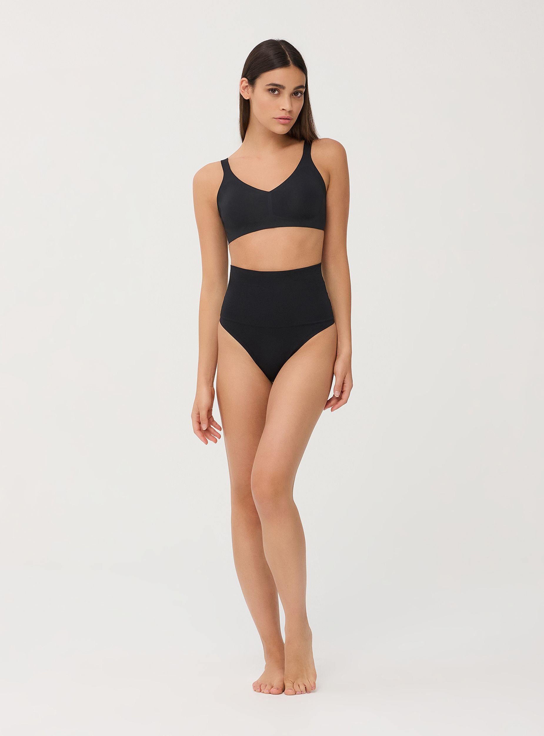 Slip da donna a perizoma dal design seamless, perfetto per garantire un effetto super-modellante. La vita alta avvolge delicatamente la silhouette, offrendo un sostegno confortevole e un look definito. La struttura senza cuciture assicura un'ottima vestibilità e una sensazione di seconda pelle, ideale da indossare sotto qualsiasi abbigliamento. Un capo in tinta unita pensato per chi cerca stile e funzionalità in un unico dettaglio di intimo.