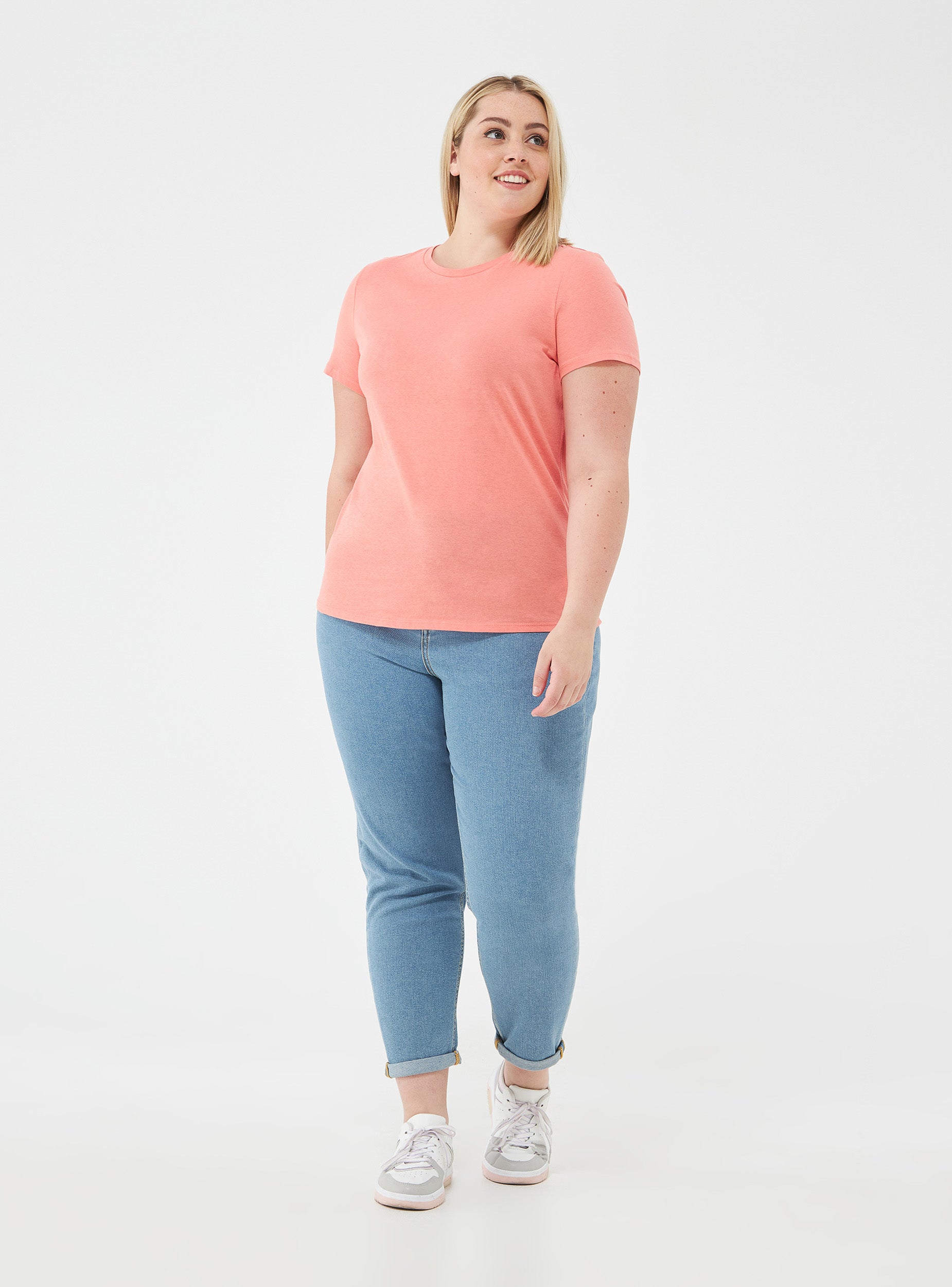 T-shirt da donna, modello girocollo con maniche corte. Realizzata in tessuto jersey. Vestibilità regular. Linea curvy.