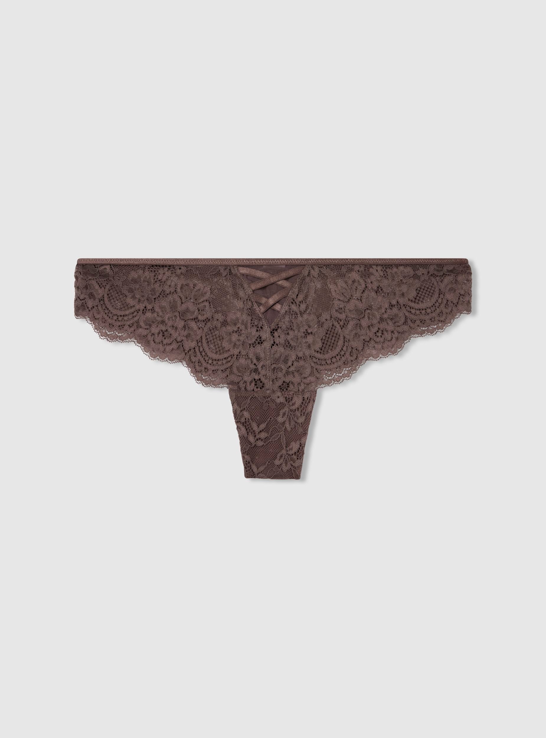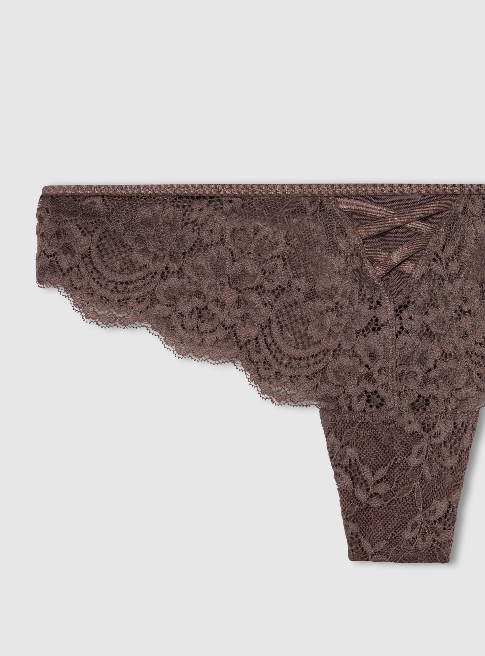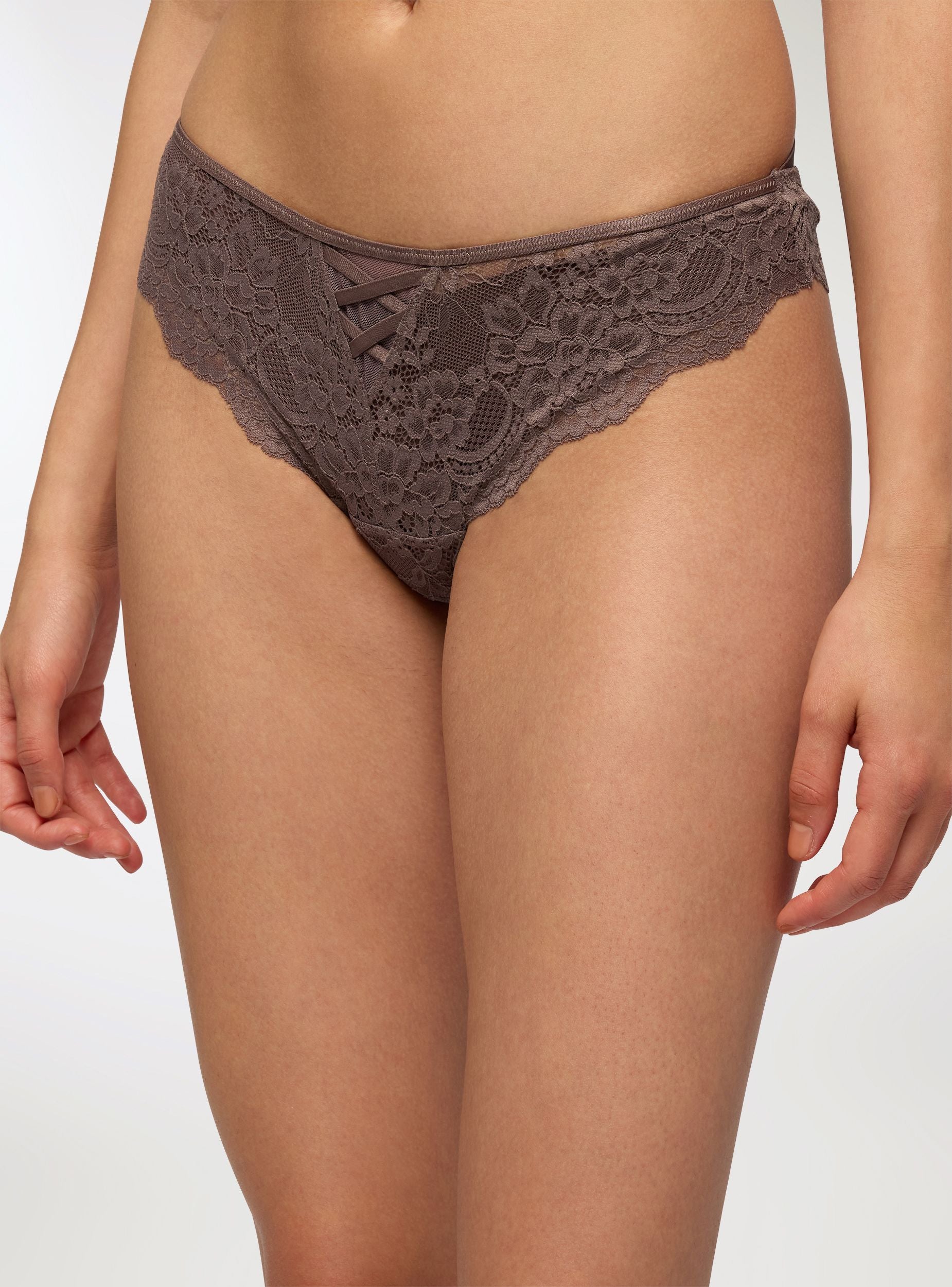 Un capo intimo dal fascino delicato e femminile, perfetto per completare ogni look con un tocco seducente. Questa brasiliana in pizzo unisce sensualità e comfort, grazie al design sgambato che valorizza le forme senza costringere. Il motivo in pizzo aggiunge eleganza e leggerezza. Ideale sotto abiti e pantaloni aderenti. Un must-have per la lingerie di tutti i giorni, con un twist raffinato. Caratterizzata da listini incrociati sul retro.