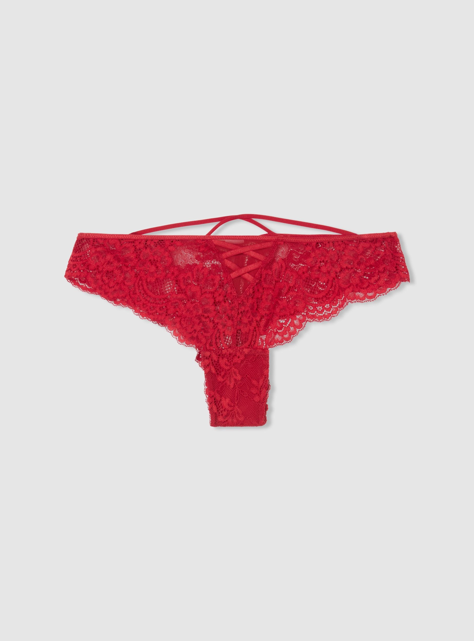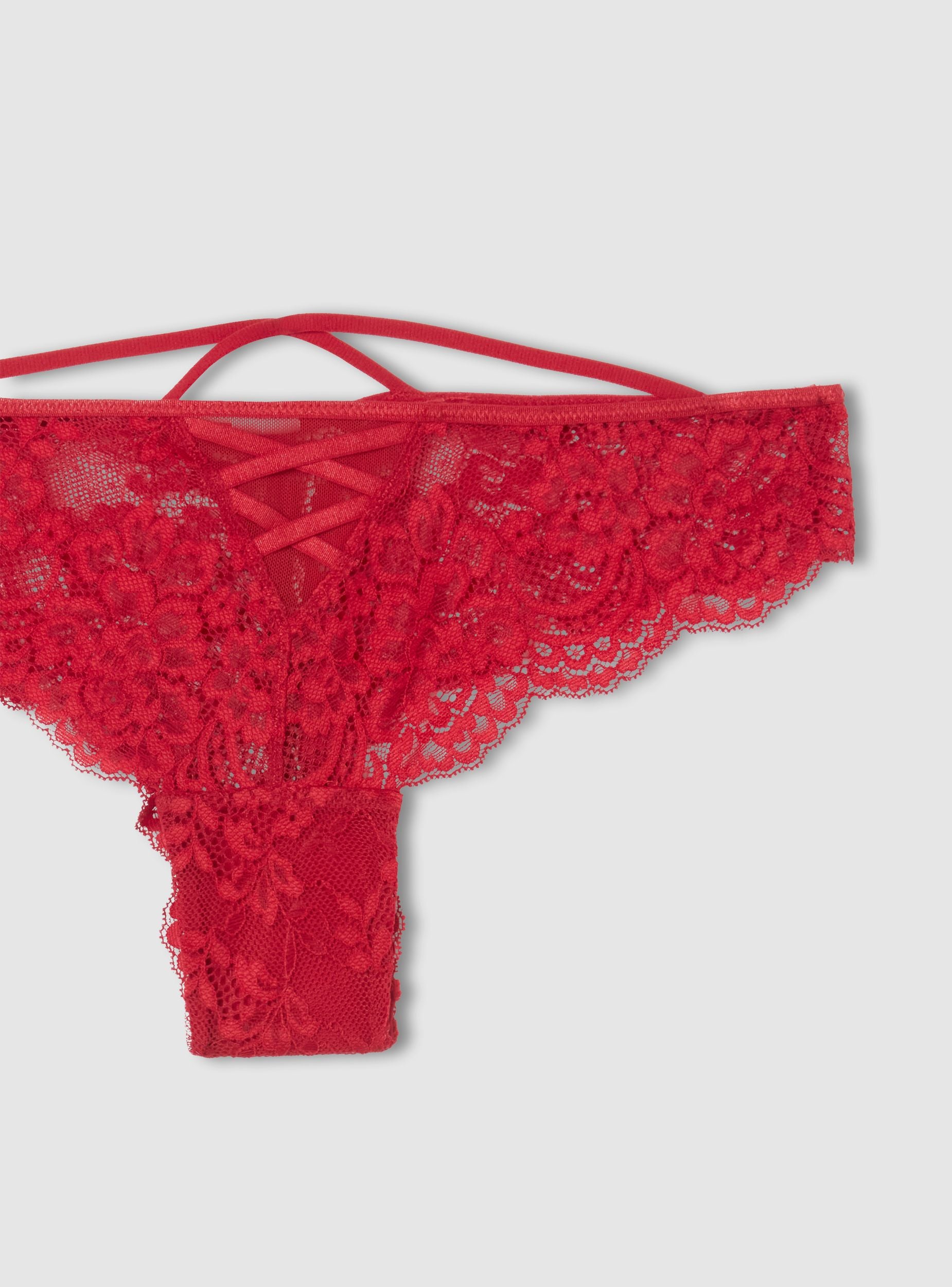 Un capo intimo dal fascino delicato e femminile, perfetto per completare ogni look con un tocco seducente. Questa brasiliana in pizzo unisce sensualità e comfort, grazie al design sgambato che valorizza le forme senza costringere. Il motivo in pizzo aggiunge eleganza e leggerezza. Ideale sotto abiti e pantaloni aderenti. Un must-have per la lingerie di tutti i giorni, con un twist raffinato. Caratterizzata da listini incrociati sul retro.