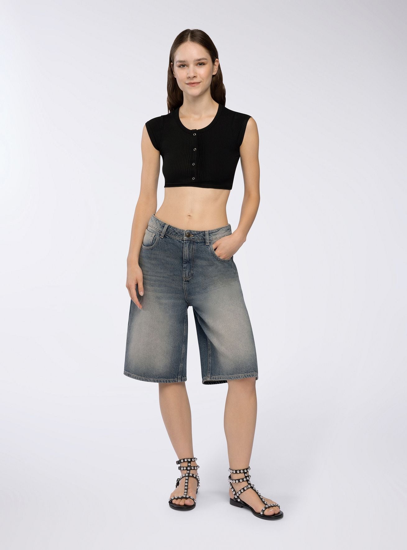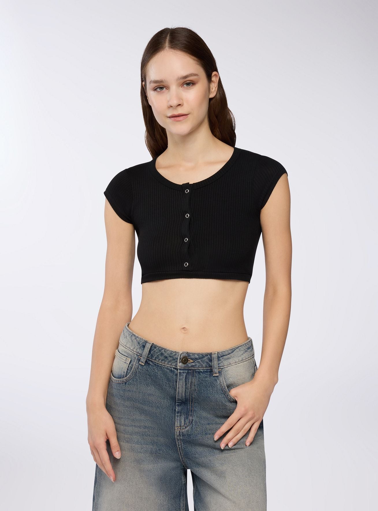 T-shirt crop con bottoni