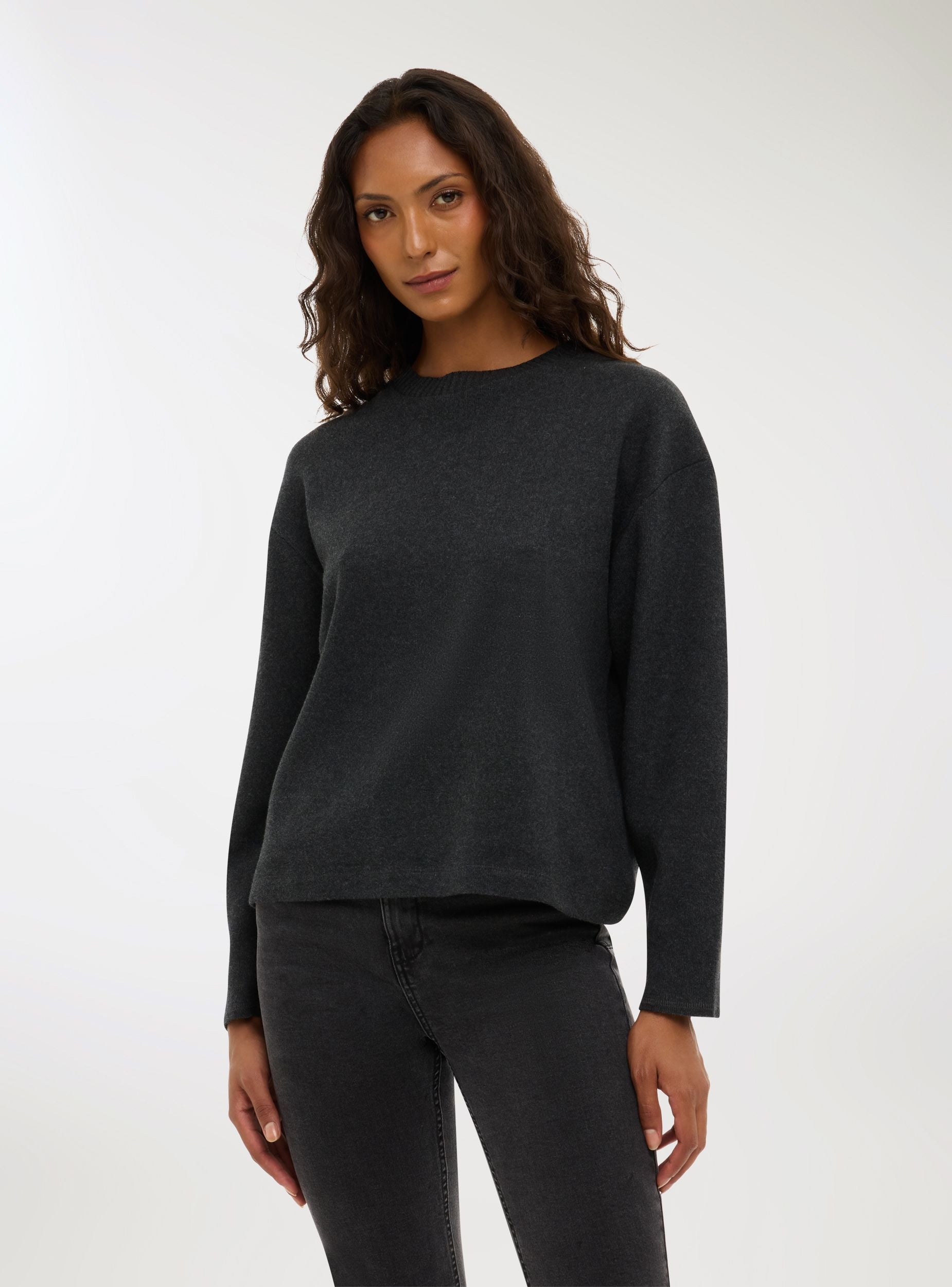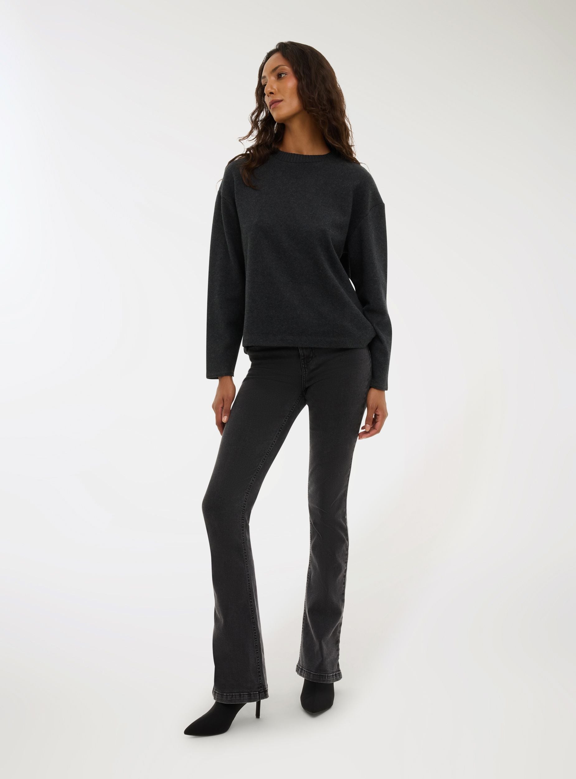 Maglia da donna a maniche lunghe, ideale per un look casual e versatile. Presenta un design a tinta unita con collo rotondo e polsini a coste, perfetta per essere abbinata a jeans o pantaloni per un outfit comodo e moderno. La vestibilità regolare la rende adatta a diverse occasioni, dal tempo libero alle giornate in ufficio.