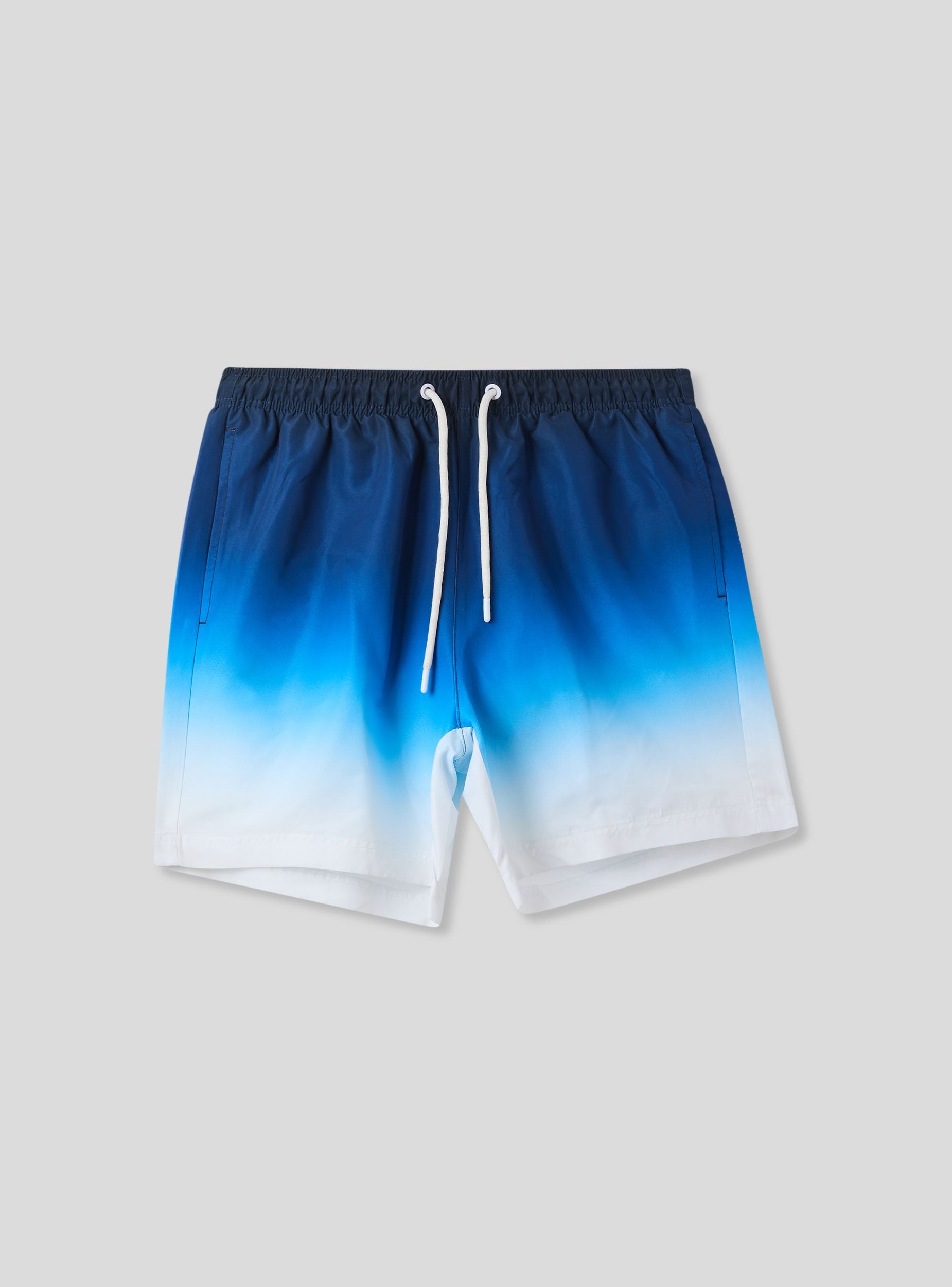 Costume da uomo dal design moderno, questi bermuda con fantasia sfumata degradé sono perfetti per un look fresco e dinamico in spiaggia o in piscina. La coulisse regolabile garantisce il massimo comfort, mentre le tasche laterali e la tasca posteriore con velcro offrono praticità. Ideali da abbinare a una t-shirt leggera e ciabatte per un’estate all’insegna dello stile e del relax.