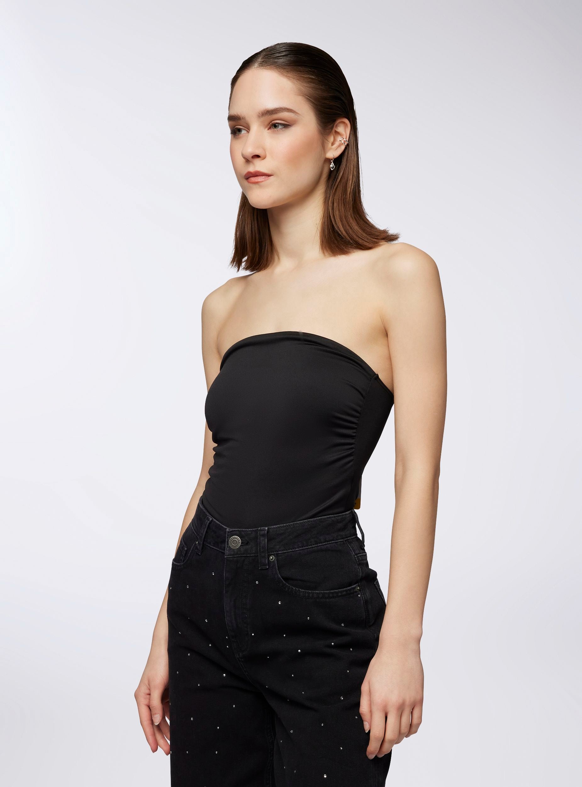 Body a fascia da donna, un capo must-have per un look essenziale e raffinato. Caratterizzato dalla tinta unita, questo body è pensato per chi ama uno stile pulito e versatile, perfetto da abbinare a diversi outfit. La vestibilità aderente e la forma a fascia esaltano la silhouette, rendendolo ideale sia per look casual che per occasioni più eleganti. Comodo e dal design semplice, questo body può essere indossato da solo o sotto giacche e maglie, garantendo sempre un tocco di eleganza discreta. Perfetto per chi cerca un capo versatile e di tendenza.