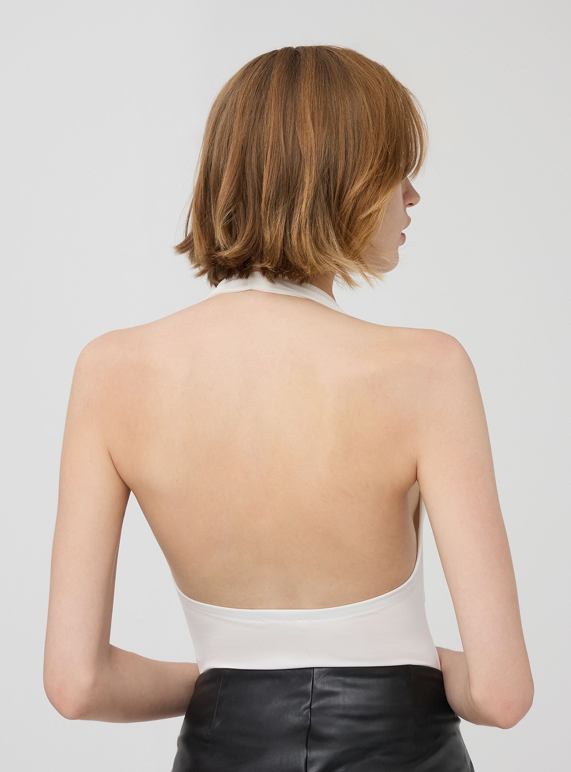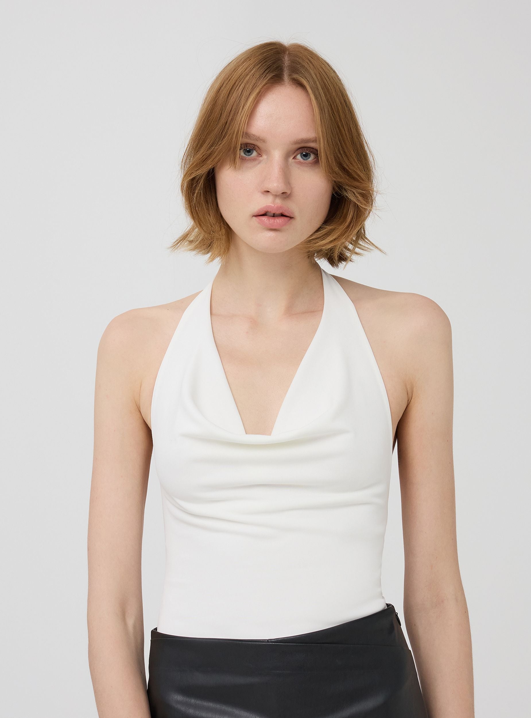 Body da donna con collo sciallato. Realizzato in tessuto a tinta unita elasticizzato. Perfetto per occasioni speciali e party.Dettagli