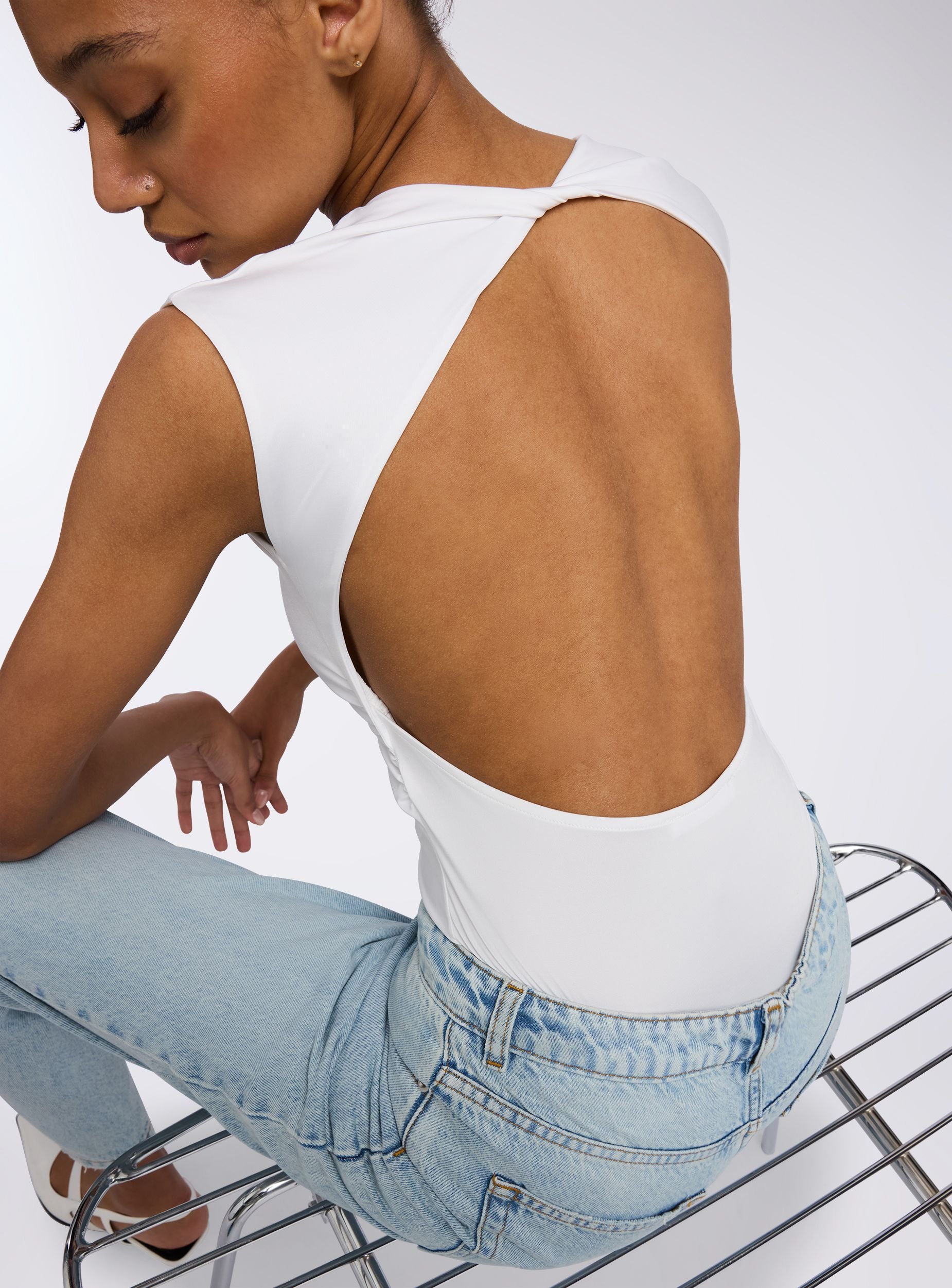 Body da donna a tinta unita con design audace e moderno. Caratterizzato da un accattivante oblò sul retro che crea un effetto cut-out sensuale, questo capo è un must-have per chi desidera uno stile unico e ricercato. La silhouette aderente abbraccia la figura, esaltando le forme con eleganza e femminilità. Le linee pulite e la semplicità del design lo rendono perfetto sia per un look casual che per un outfit più raffinato. Ideale per chi ama combinare comfort e tendenza, questo body è un capo versatile e irrinunciabile per arricchire il guardaroba.