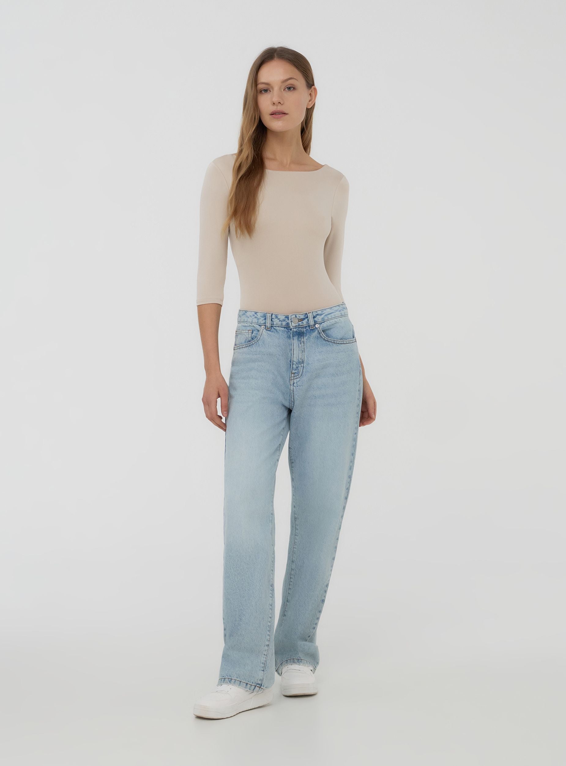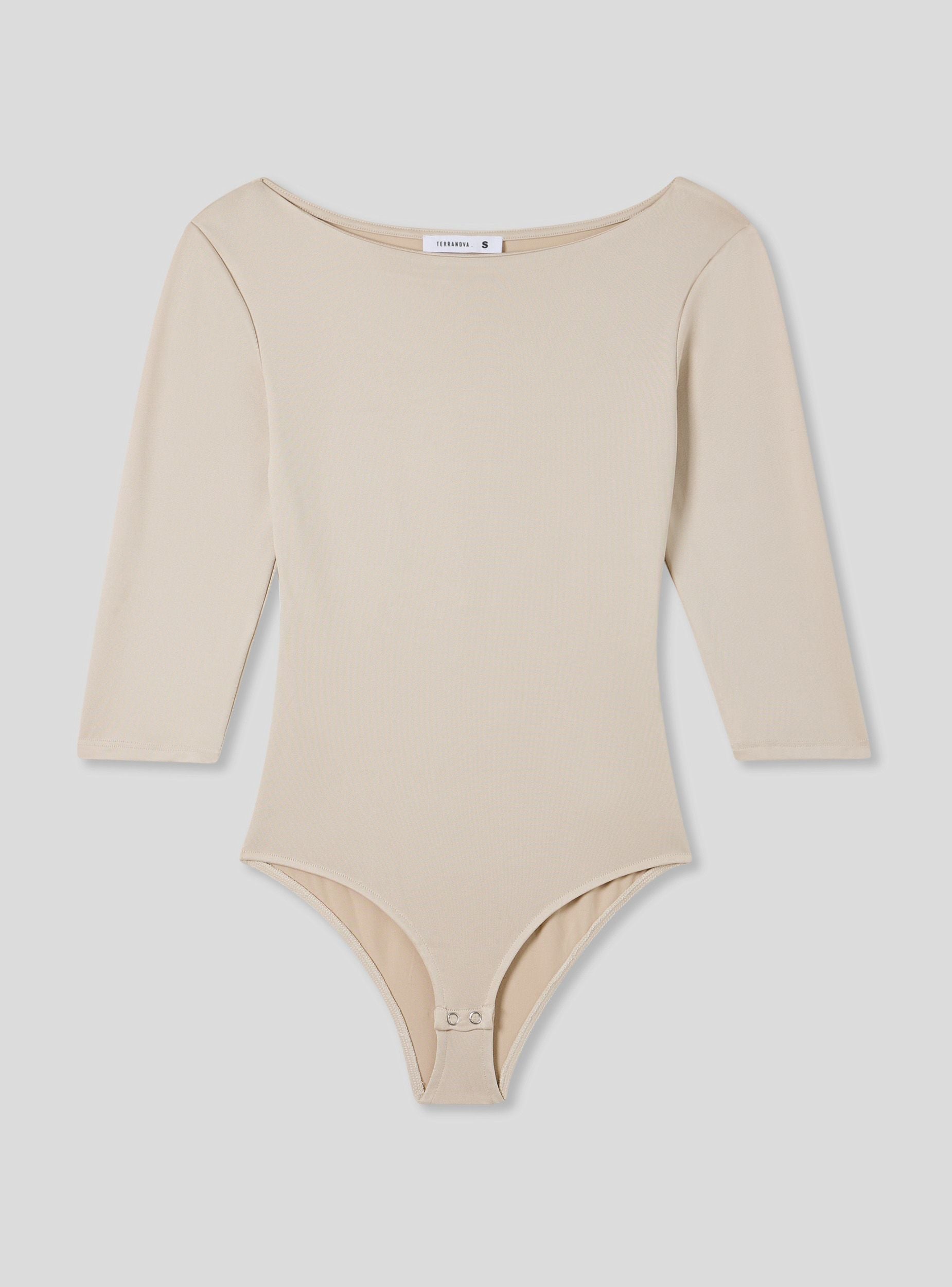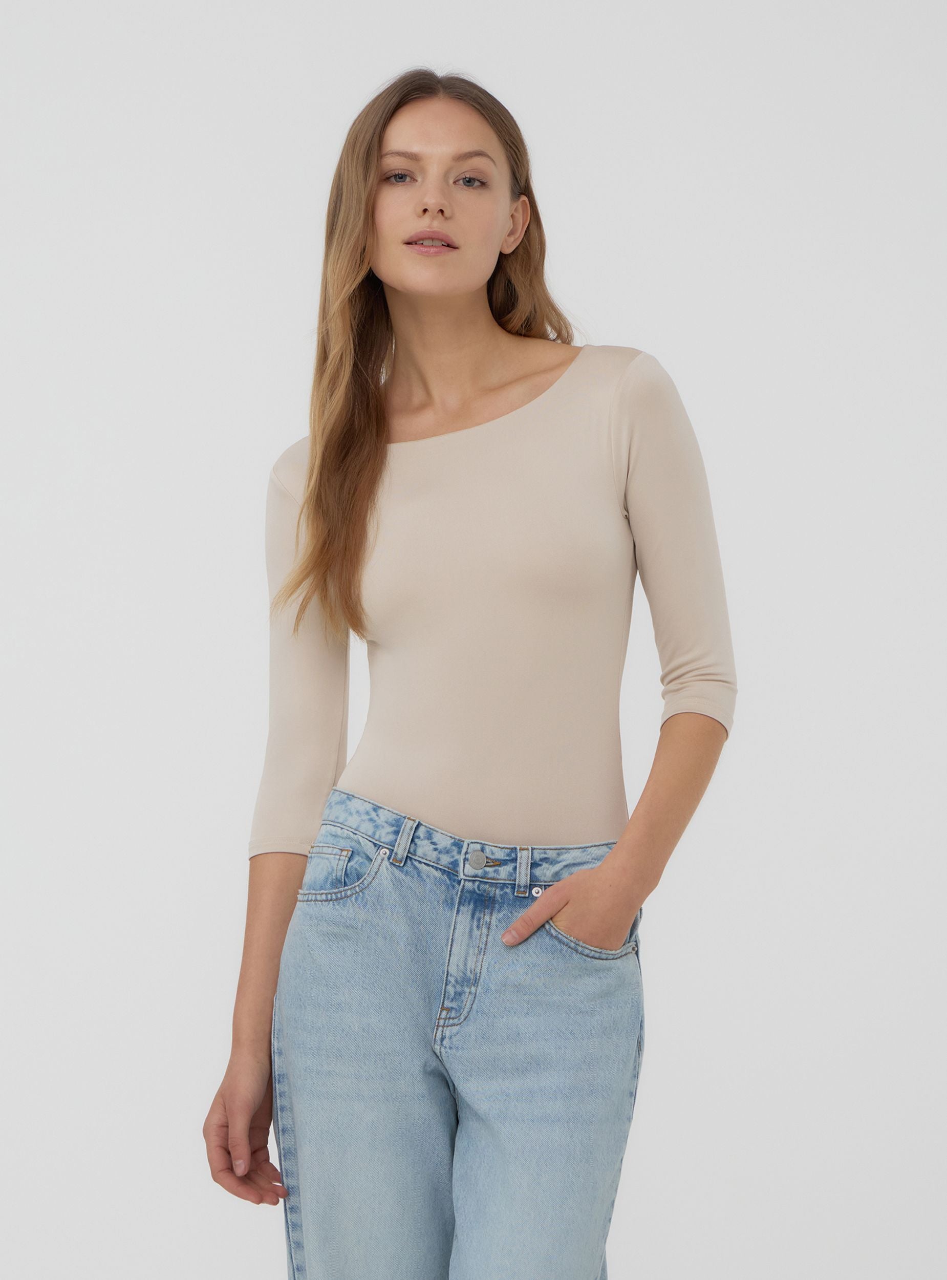 Body da donna dal design elegante e versatile, perfetto per valorizzare look da giorno o da sera. Caratterizzato da una tinta unita, maniche a tre quarti e uno scollo ampio che dona un tocco sofisticato. Dotato di pratici bottoni a pressione, assicura una vestibilità confortevole e facile da indossare, ideale per completare outfit sia casual che più raffinati.