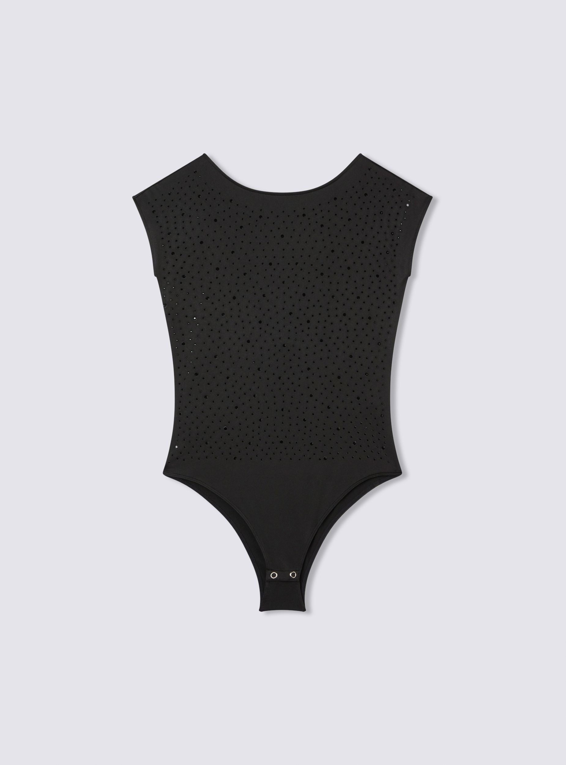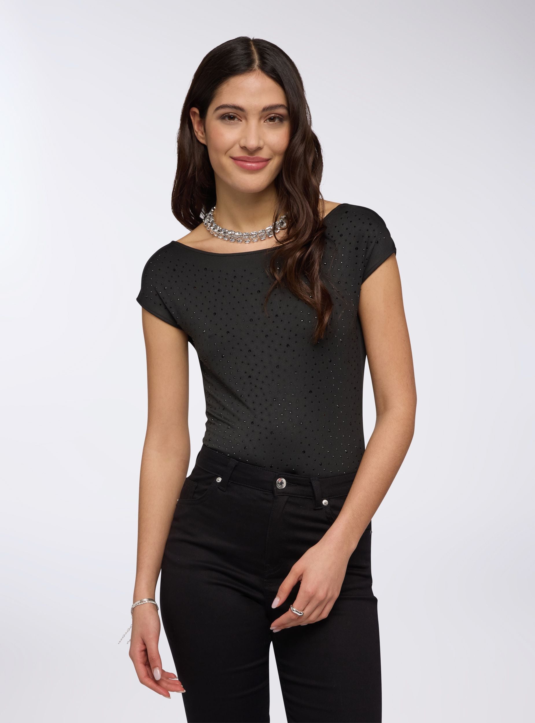 Body da donna con design a tinta unita e dettagli di strass per un tocco brillante e sofisticato. Questo capo must-have è caratterizzato da una scollatura profonda sulla schiena, che aggiunge una nota di sensualità e stile. La vestibilità è avvolgente, ideale per valorizzare la silhouette. Perfetto per essere abbinato a pantaloni a vita alta o gonne, questo body è l'ideale per serate speciali o look glamour. Un capo versatile che può passare da uno stile elegante a uno più audace, a seconda degli abbinamenti.
