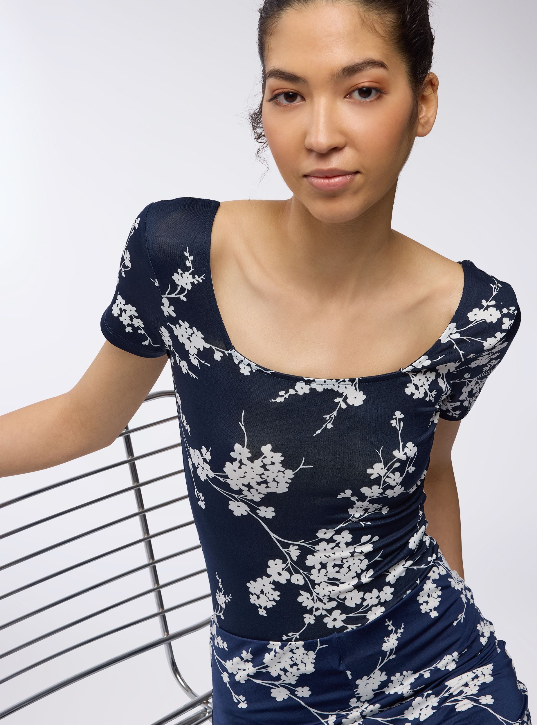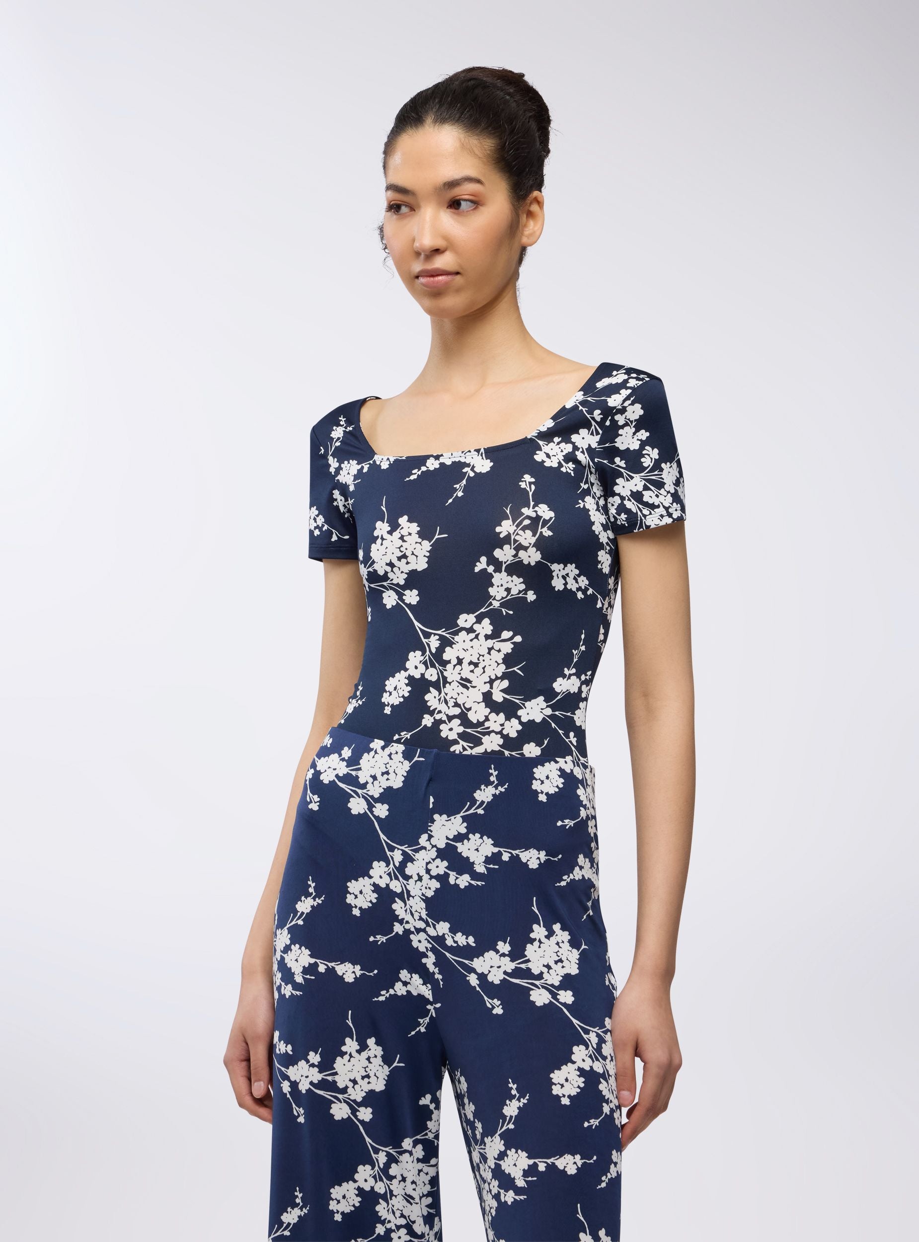 Body da donna con scollo quadrato e maniche corte, ideale per un look moderno e femminile. Perfetto per abbinamenti con jeans o gonne a vita alta, si distingue per la sua vestibilità aderente elasticizzata e la stampa floreale che aggiunge un tocco di eleganza. Adatto per occasioni casual o serate informali, offre comfort e stile in un unico capo.