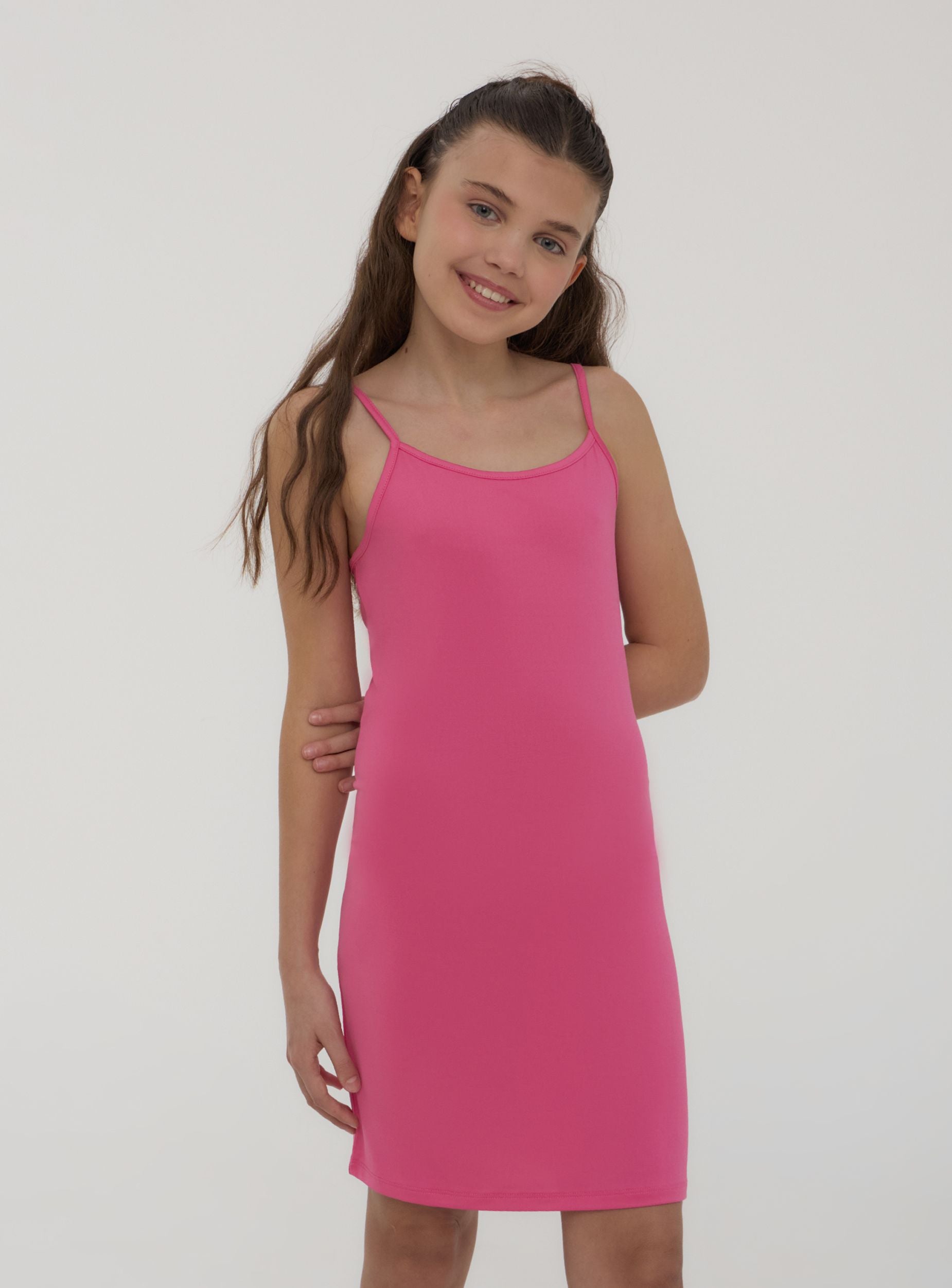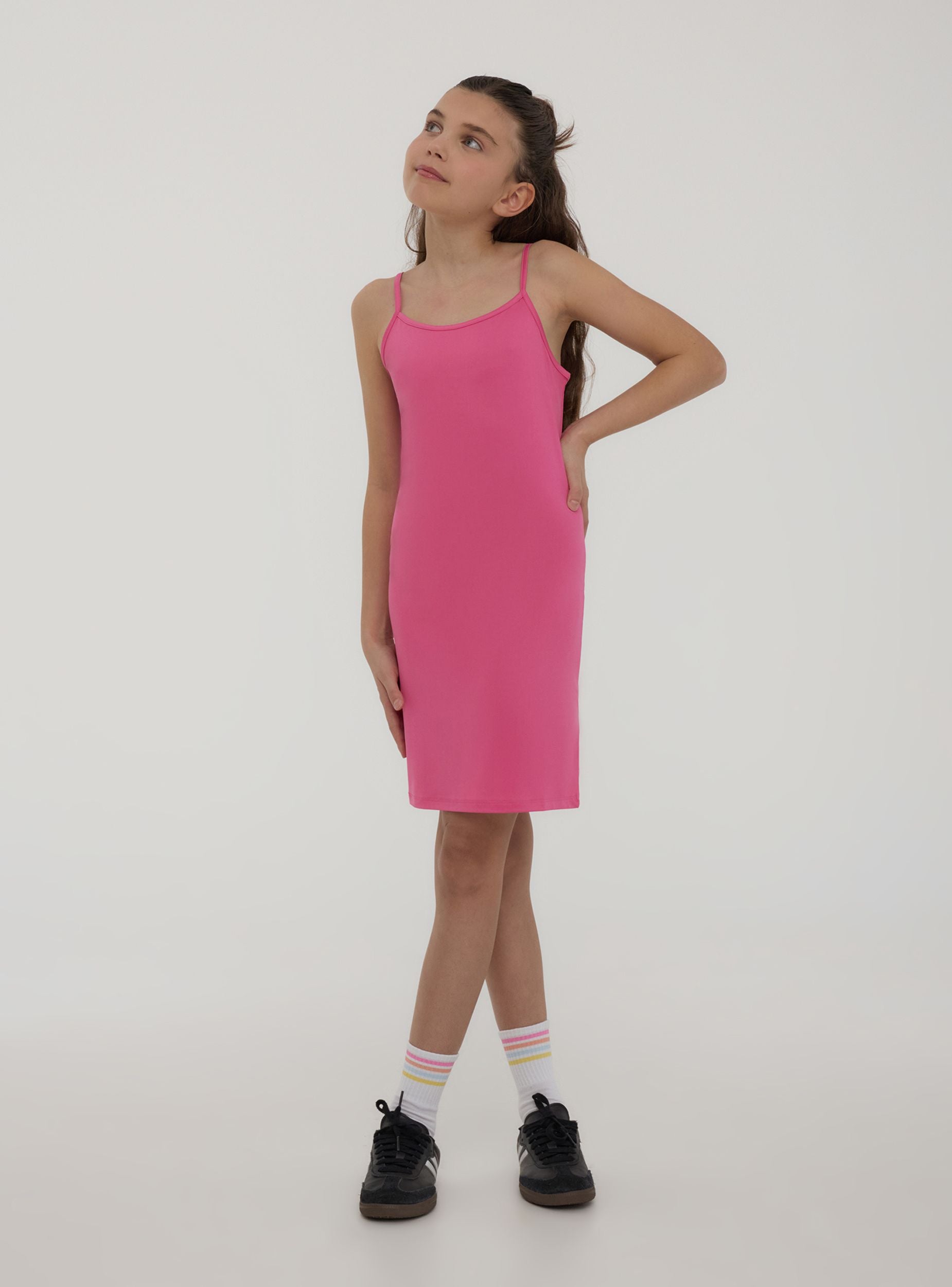 Abito da bambina perfetto per le giornate estive, caratterizzato da una tinta unita che si adatta facilmente a ogni occasione. Dotato di comode spalline sottili, offre una vestibilità elasticizzata che garantisce libertà di movimento e comfort durante tutta la giornata. Linea semplice e versatile, ideale sia per il tempo libero che per un look più curato, abbinabile a sandali o sneakers.