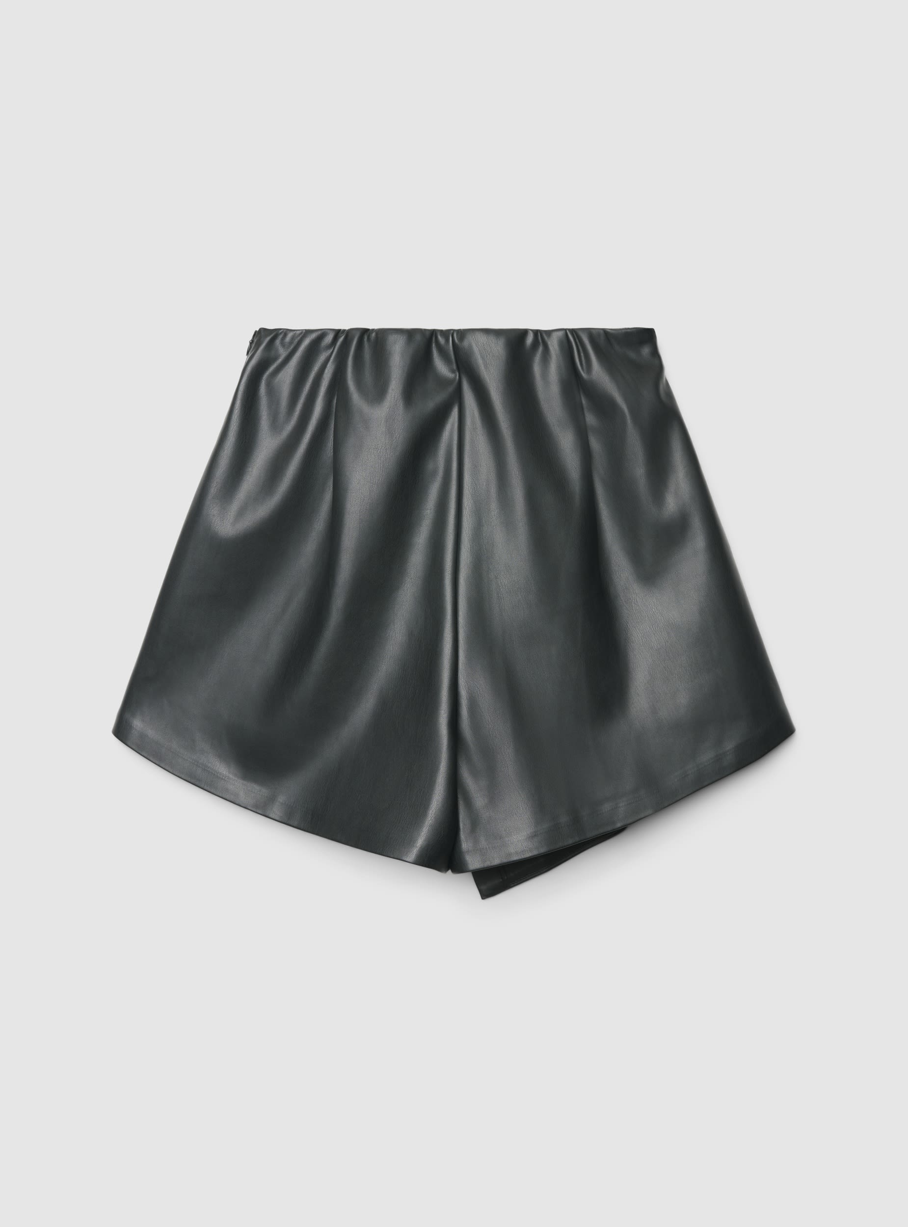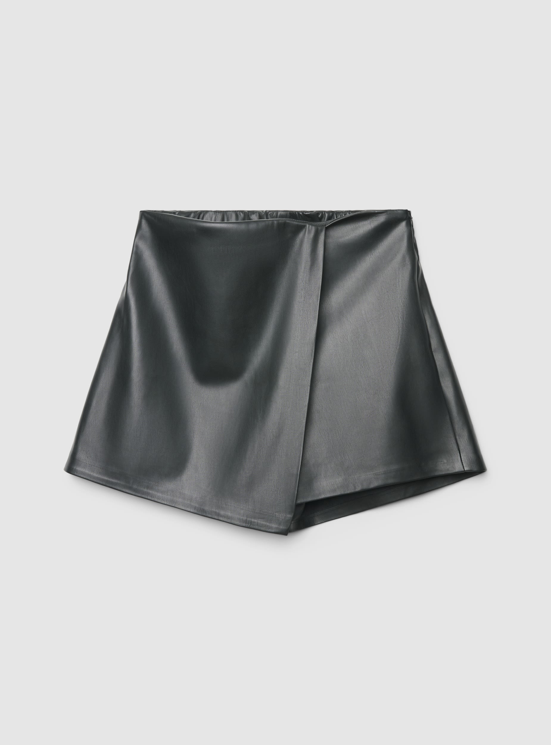 Pantaloncini-gonna da donna a tinta unita con design a portafoglio sul davanti. Modello corto con vita elastica che assicura comfort e chiusura con cerniera laterale nascosta. Perfetti con una camicia morbida e stivaletti per un look urbano, oppure con una maglietta e sneakers per il tempo libero. Vestibilità regular che valorizza outfit casual o serali.