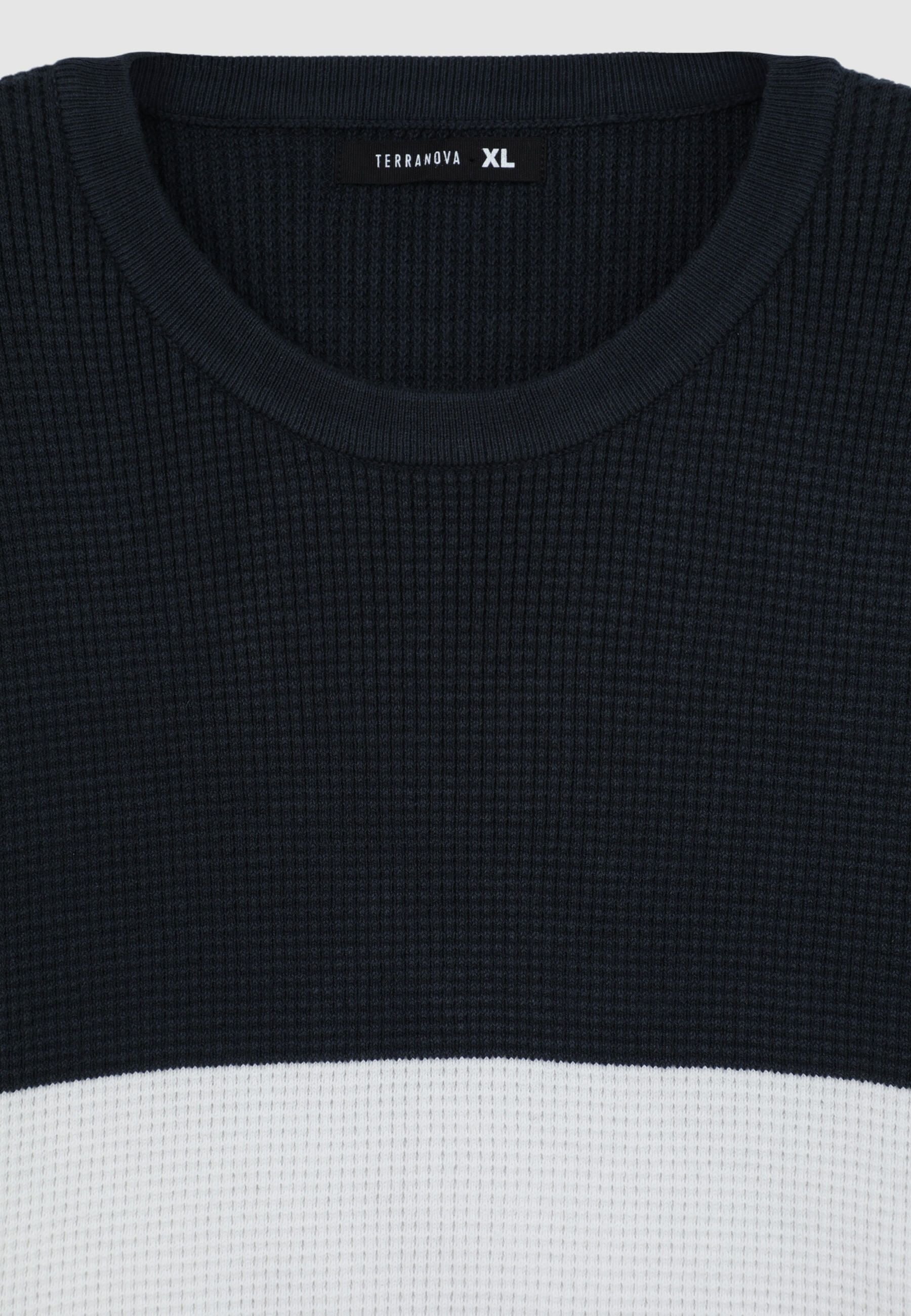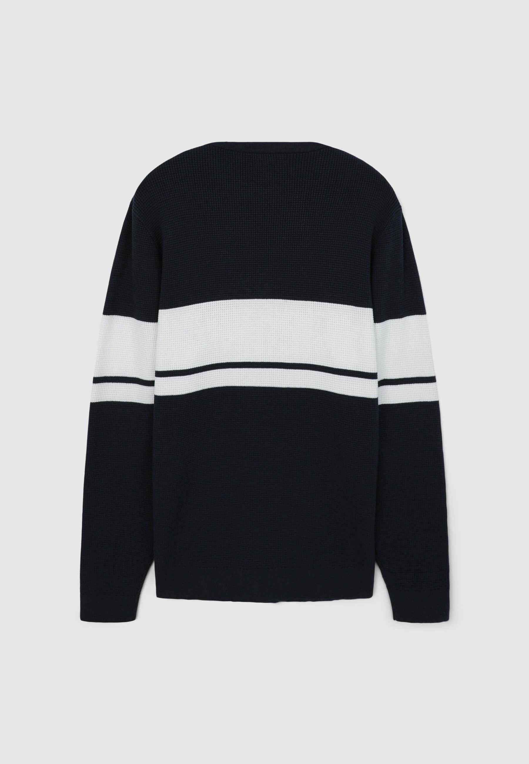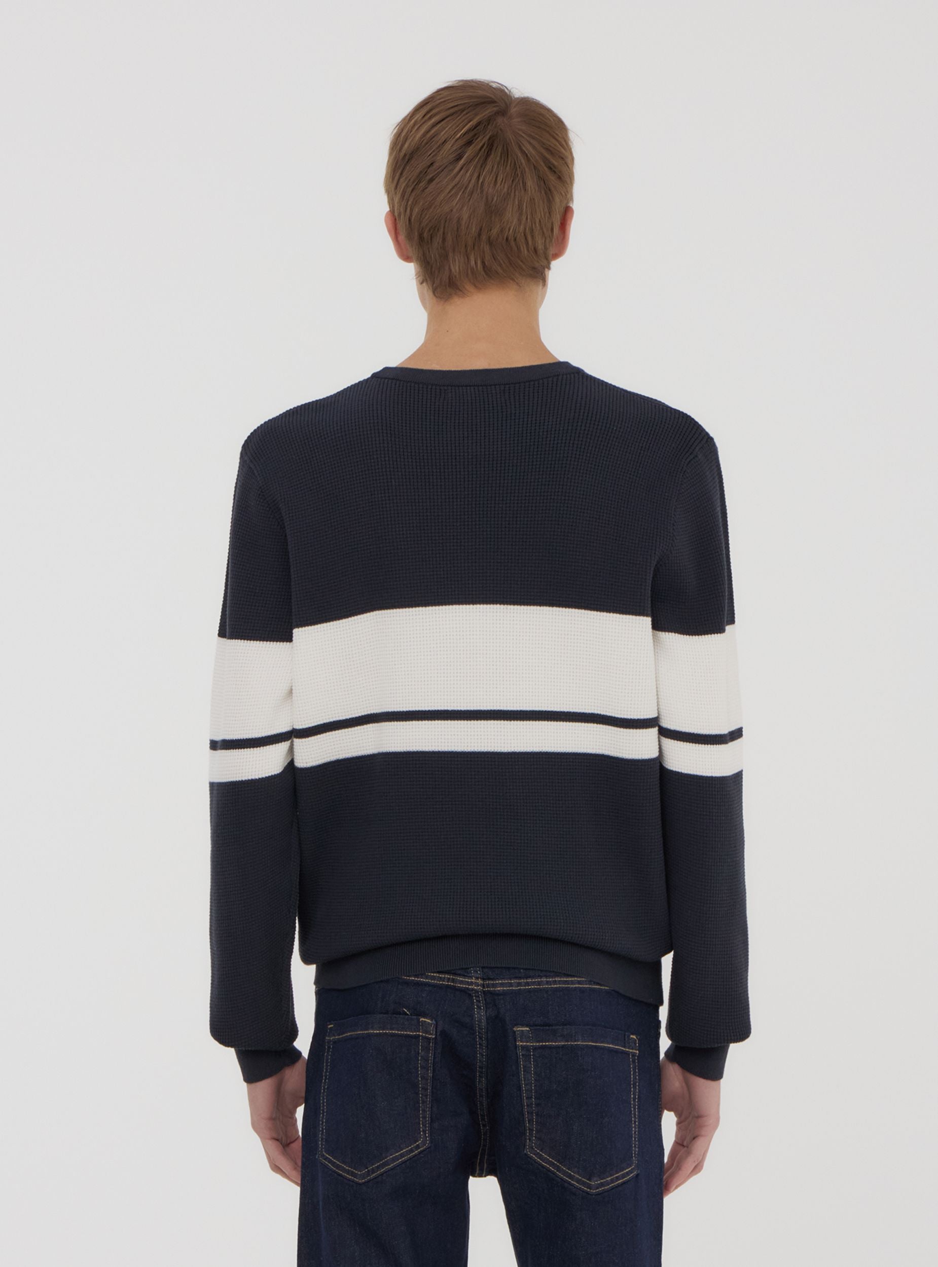 Maglia da uomo a maniche lunghe con girocollo e motivo a righe, perfetta per un look casual e moderno. Ideale da abbinare a jeans o pantaloni chino, dona versatilità a qualsiasi outfit. Adatta per il tempo libero o un'uscita informale, unisce comfort e stile in un design che si distingue per semplicità e carattere.