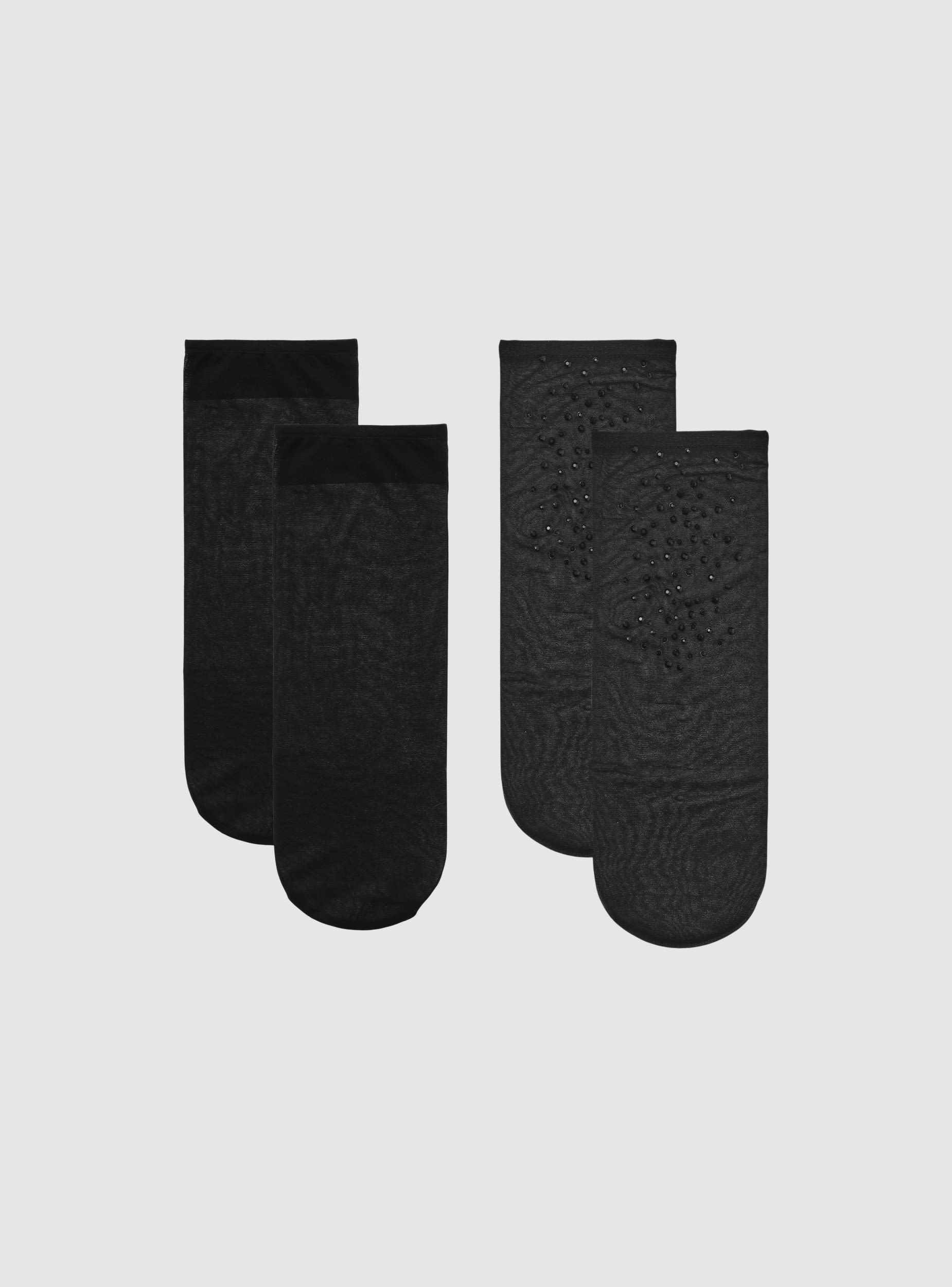 Confezione composta da 2 paia di calze da donna, ideali per occasioni speciali. Queste calze presentano un design elegante a 20 denari a tinta unita, un paio con dettagli di strass che aggiungono un tocco di raffinatezza. Perfette per completare outfit formali o per aggiungere un elemento di stile a look casual. La vestibilità è comoda e il design versatile le rende adatte a diverse combinazioni di abbigliamento.