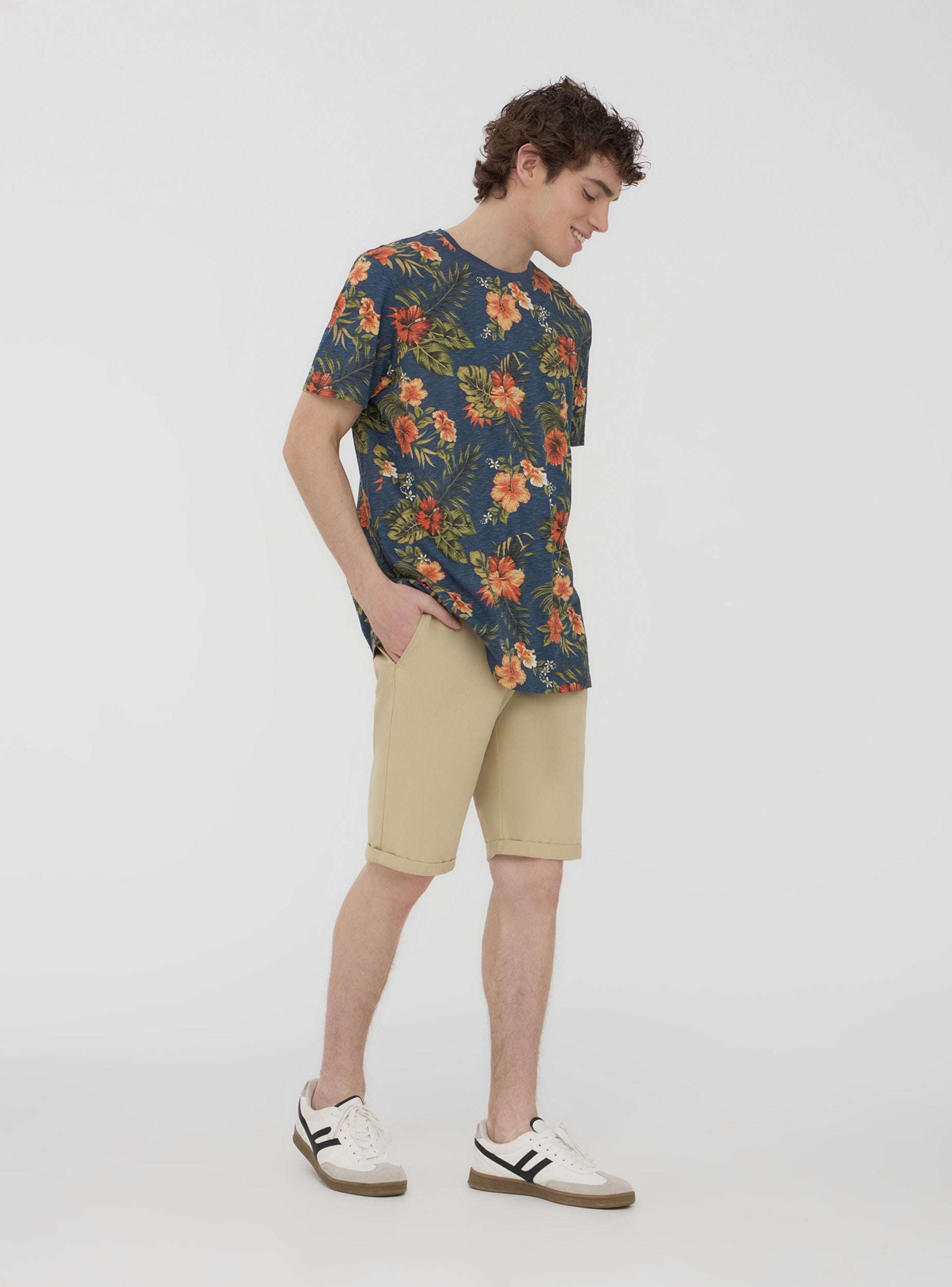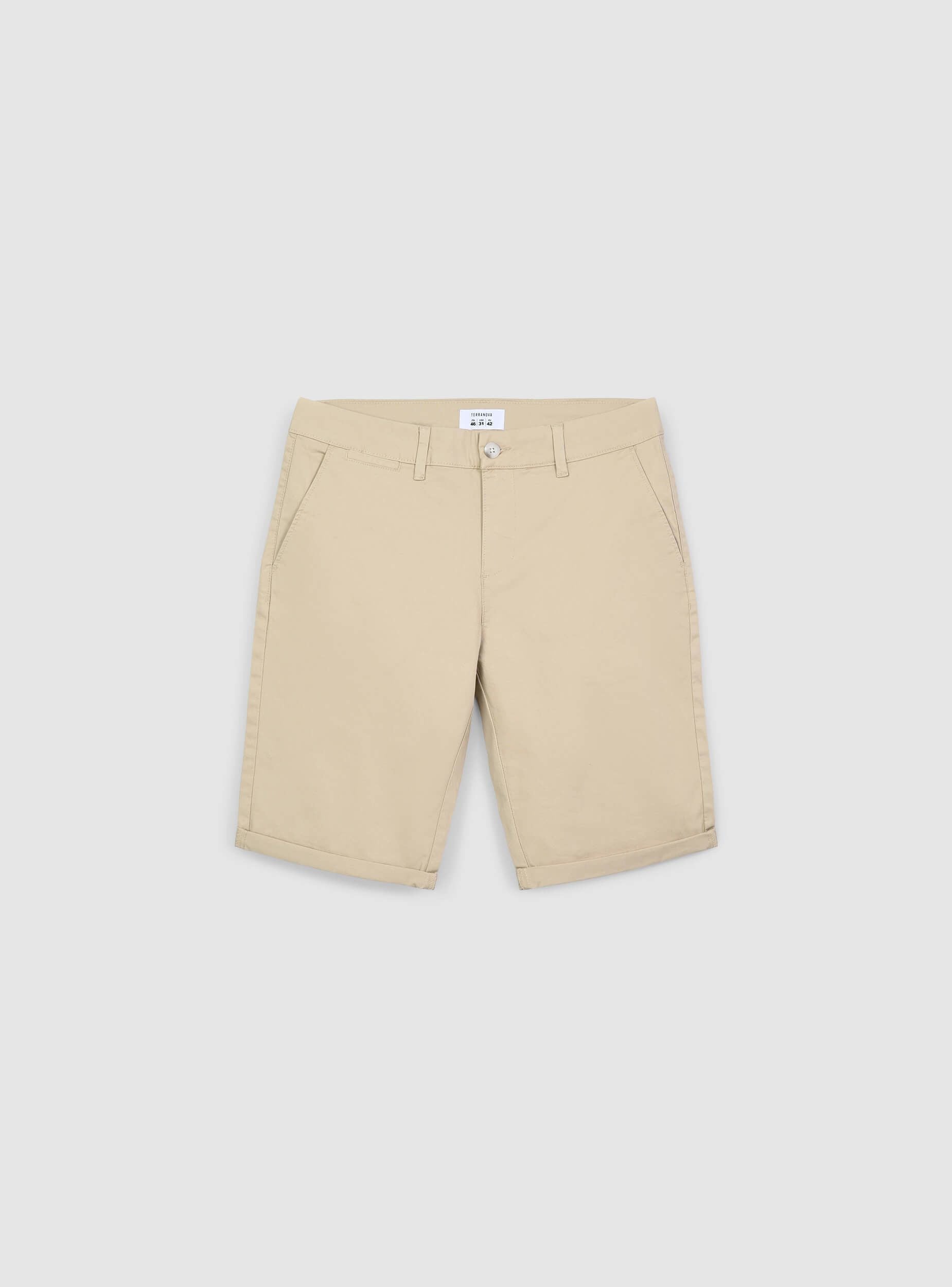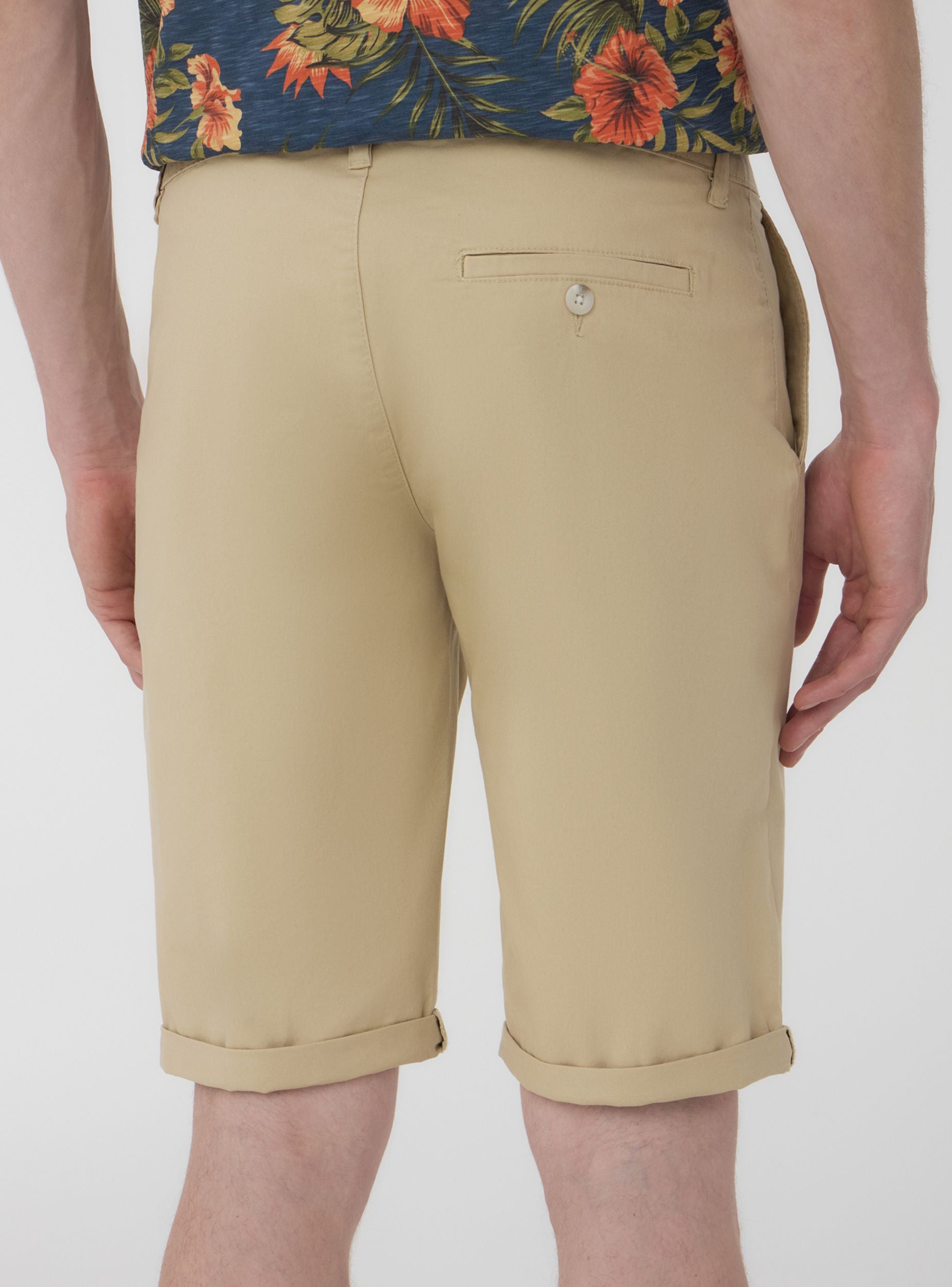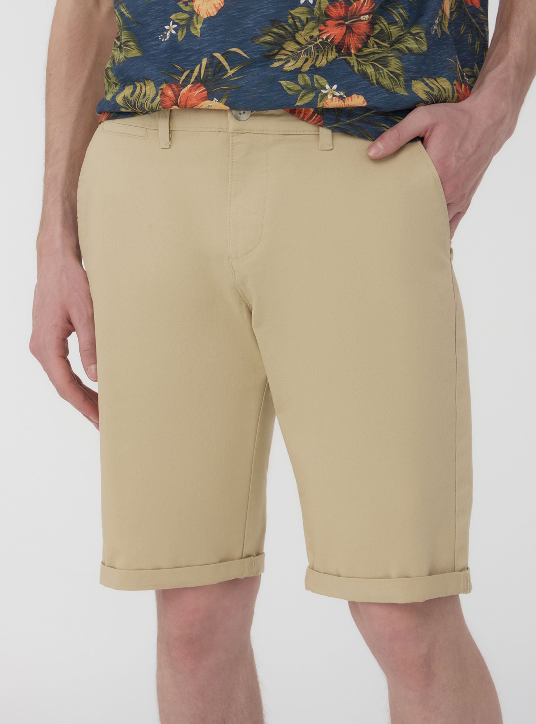 Pantaloncini da uomo a tinta unita, dal design chino, perfetti per un look casual ma curato. Dotati di pratiche tasche laterali, offrono spazio sufficiente per riporre piccoli oggetti. La chiusura frontale è con bottone e zip. Ideali per essere indossati durante le giornate calde, questi pantaloncini uniscono praticità e stile, adattandosi a diverse occasioni informali. Il design minimalista li rende versatili per diversi abbinamenti.Dettagli